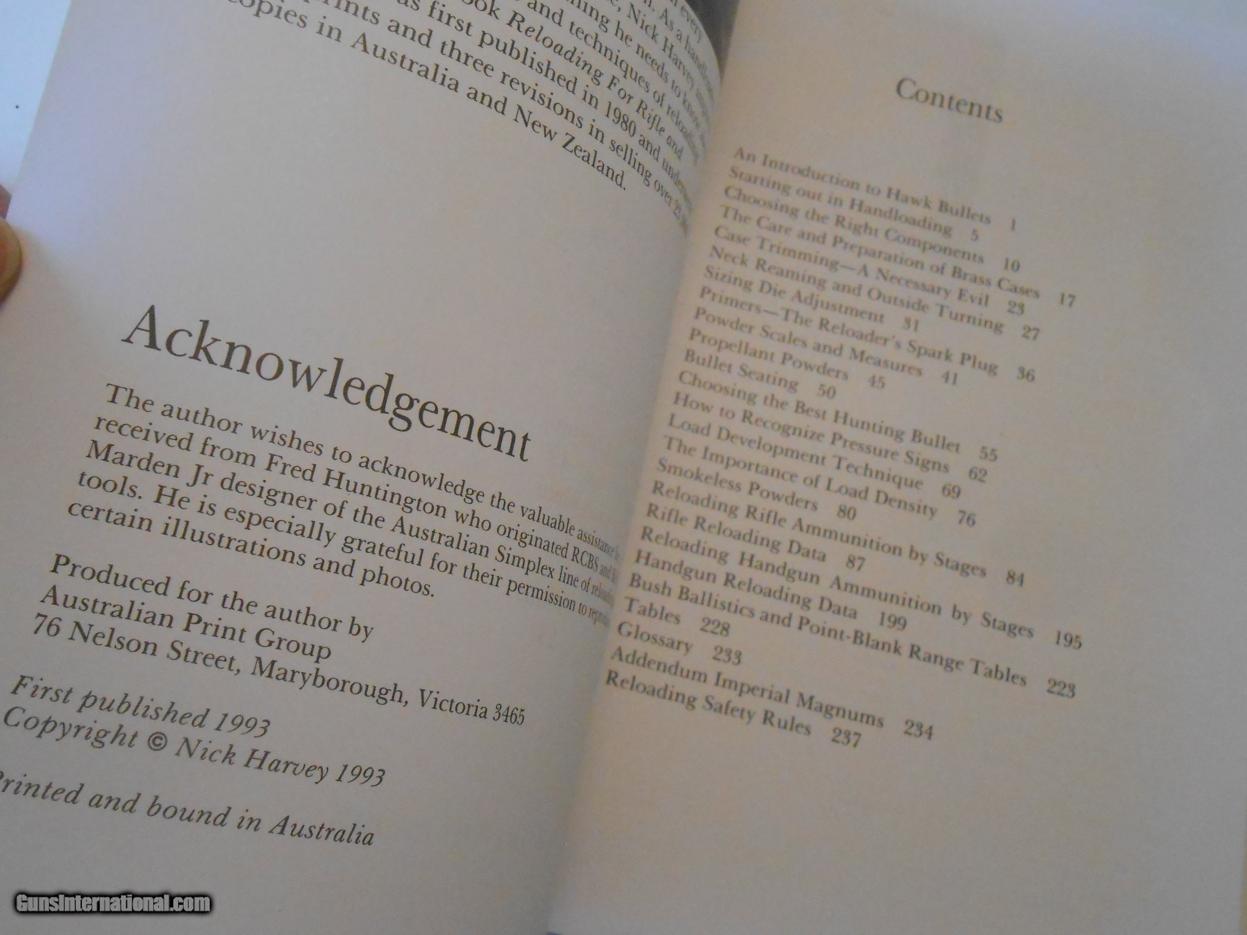 Nick Harvey's Practical Reloading Manual: Tools, Powders, Components and Techniques for North America, First Edition 1993 by Nick Harvey