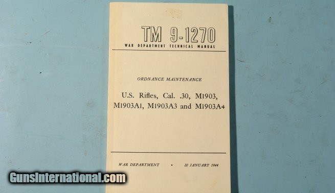 Description: PAMPHLET FOR U.S. RIFLES, CAL. .30, M1903, M1903A1, M1903A3, AND M1903A34. Reprint of the War Department Technical Manual. Soft cover, 116 pages, black and white pictures. SOLD |