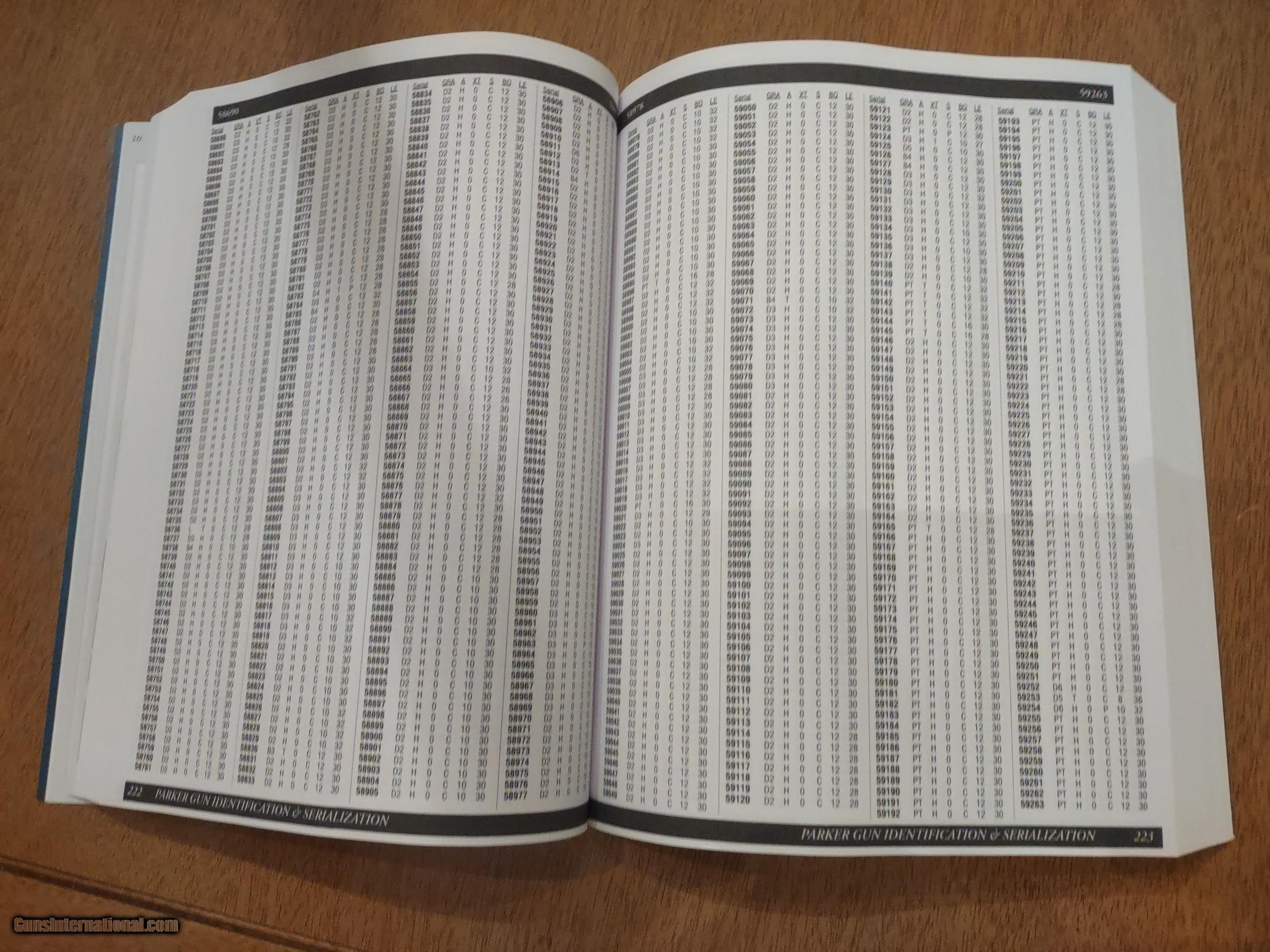Description: PARKER GUN IDENTIFICATION & SERIALIZATION is a 608 page reference for any Parker shotgun made between 1866 and 1942 with 155,000 Parker serial numbers are listed with grade, gauge, stock configuration, barrel length, action type, barrel identification, over 100 pictures detailing Parker history, stamps, identification codes, stock checkering, butt plates, barrel steel, grip caps, engraving, patent dates, frame sizes and special orders. A must for any Parker aficionado or gun dealer. This book is flawless: no writing, no highlighting, no hand prints, no bent pages, no folded corners...just like brand new! The price is $60 including shipping to your home or workplace. Call or text me at 318-780-4242 if you are interested. SOLD |