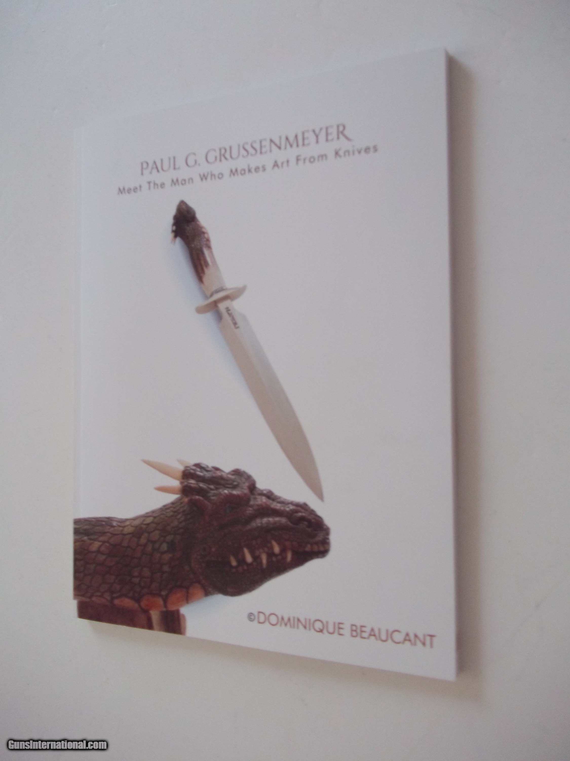 Description: Author Dominique Beaucant, has just released the most comprehensive work on Paul G. Grussenmeyer, master carver. Jam-packed with over 170 never-before-seen photographs in full color, and inside information on the life and times of Grussenmeyer, in a 8.5"x 11" soft cover format catalog. New 118-page limited numbered luxury "Collector's Edition" of only 24 units. Price of $250.00 plus USPS shipping with tracking number and signature required. There will be no reprint. The following US knifemalers have their work heavily profiled at times: Ed Fowler, Gil Hibben, James Porter, David Boye, Chuck Patrick, Randall Made Knives, Daniel Winkler, Hank Knickmeyer, Joseph Price, Steven Jernigan, James l. Batson, Jr., Steve Licata, Joe Szilaski, Hugh Bartrug, Gary Root, Callahan, Slayer & Michael Stafford, Bill Johnson, Chris English, Wendell Fox, Frank Centofante, Raven Armory, Jim Siska, Dan Reyes, There are 20 different Randall Made Knives shown in the catalog out of 25 which were ordered by the Randall shop over a period of four years. Thank you for looking. SOLD |