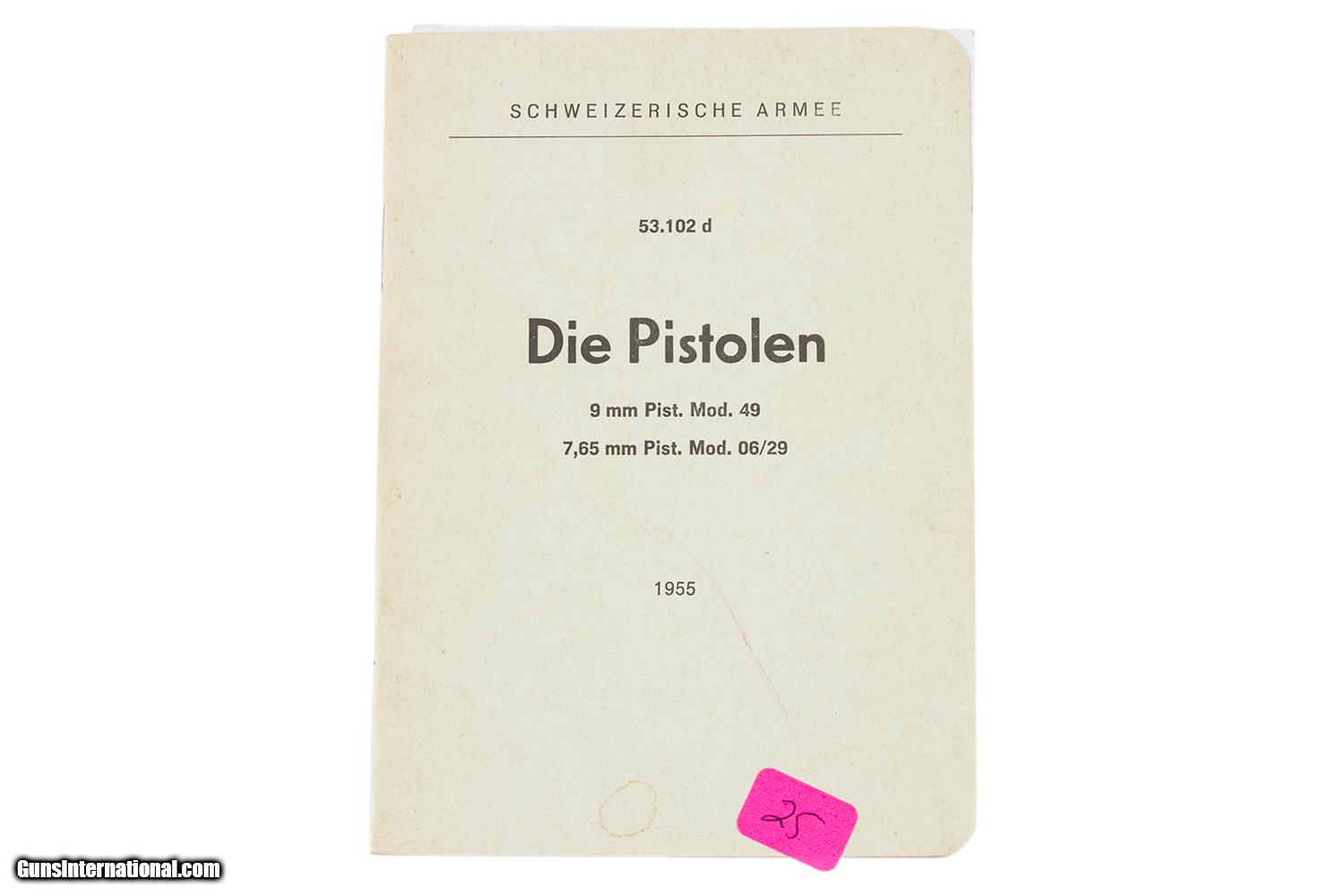 Schweizerische Armee - Die Pistolen - 9 mm Pist. Mod. 49 - 7,65 mm Pist. Mod. 06/29 - 1955