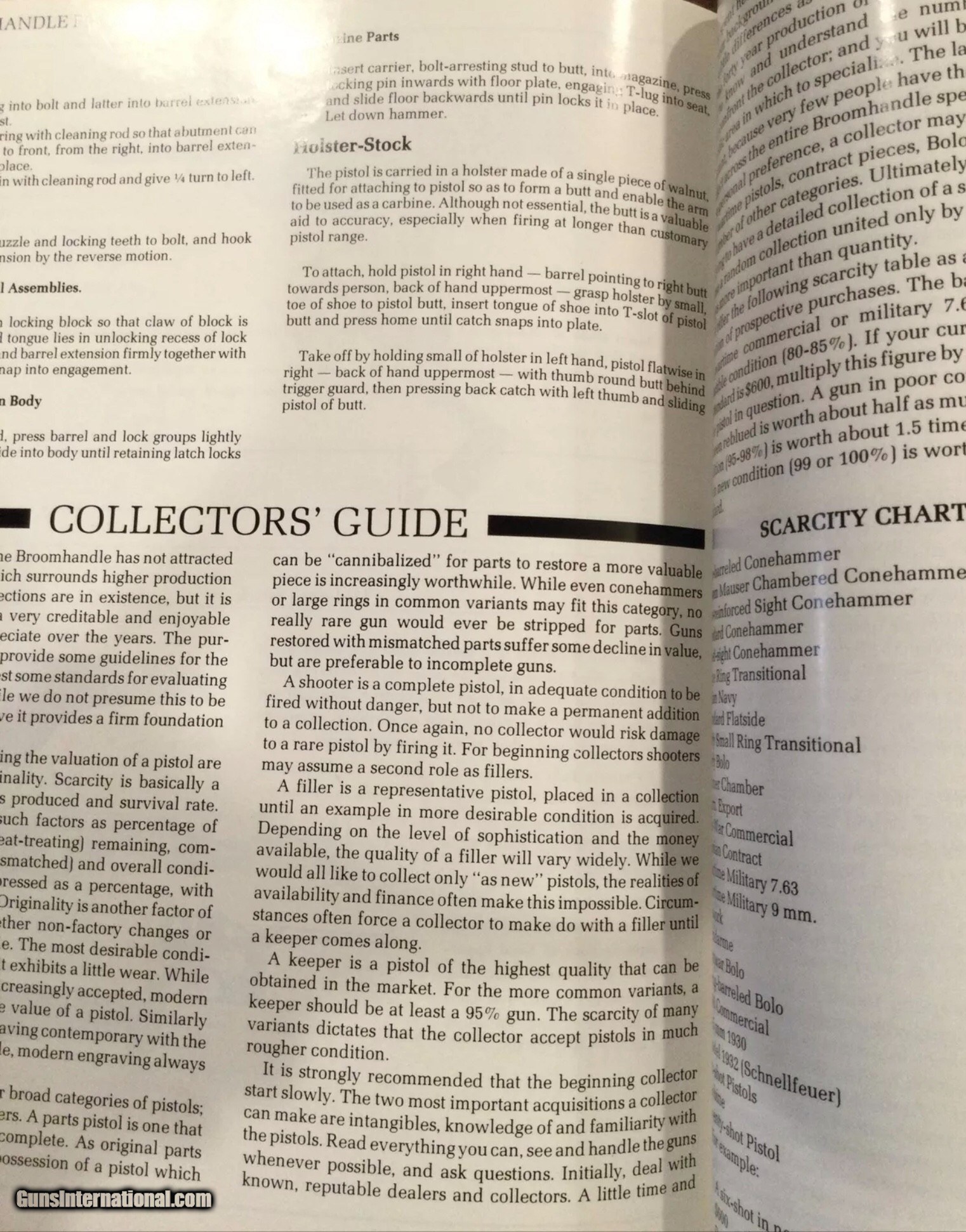 Description: THE BROOMHANDLE PISTOL 1896-1936 ERICKSON+PATE SIGNED BY PATE. 298 pages of history, production data, variations, tons of color and black & white photos, etc. A must for Broomhandled collectors. Condition is "Like New". Shipped with USPS Priority Mail. SOLD |