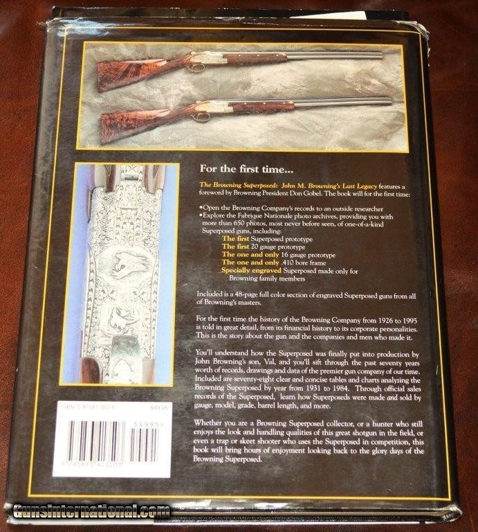 Description: Get the most complete information on one of the most iconic shotguns ever made by the genius gun inventor John Moses Browning. Author Ned Schwing gives you the most accurate and complete book on the Browning Superposed ever written with serial numbers, sales figures, and total number sold by gauge and rare photos with official company records. The book is full of charts, graphs, drawings and actual photographs of all aspects of these wonderful over & under shotguns. 496 pages of knowledge packed information to learn about. Two books available, one 95% ($250) and the other is the leather bound edition in a white linen rigid dust jacket ($350). Chapters include: The Pre-War Years: 1926-1940, The Aftermath of War and the Decade of the 1950s, The Beginnings of Change: The 1960s, The Beginning of the End: 1970-1977, The Presentation Superposed Era: 1977-1984, Epilogue; The Legacy Lives on: 1985-1995 and Appendices. And lastly an Annotated Bibliography. Prices include book rate shipping to the lower 48. Alaska and Hawaii additional. SOLD |