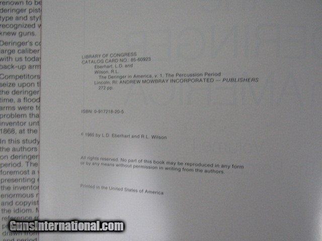 The Deringer in America Volume 1 R. L. Wilson & L. D. Eberhart