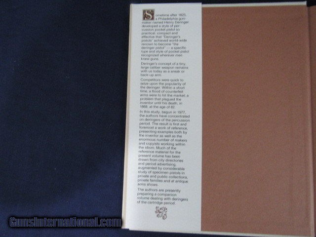 Description: Excellent, gently used condition from a smoke-free home. This is Volume 1 of The Deringer in America, which covers all American-made Deringers of percussion style. Published in 1985. 265 pages of information and pictures, including a nice section of full color photos. Covers the major makers, including Henry Deringer, Slotter, Butterfield, Folsom, and many more. Dust jacket intact. Tight binding. No damaged pages. Several volumes are available on Amazon starting at $45 so I am below that price. TERMS: Shipping to the Continental US States will be free by USPS Media Mail. No international sales, and no sales to Alaska or Hawaii. 3 day inspection period; buyer pays return shipping. Payment by bank check, money order or personal check; all major credit cards are accepted with a 4% convenience fee added. Always interested in Civil War items, as well as used long guns and used antique handguns so please contact me if you have anything for sale or trade. 315.251.4799 with questions or concerns. Please keep in mind that I work a full-time job during the week and may not be able to immediately respond to your text, phone, or email message. Thanks for looking! Please check back for more reference book listings as I am "thinning the herd" so to speak. SOLD |