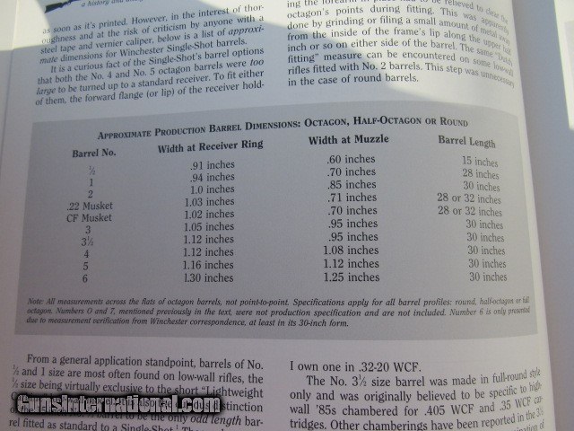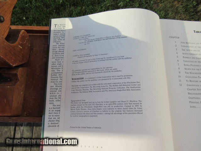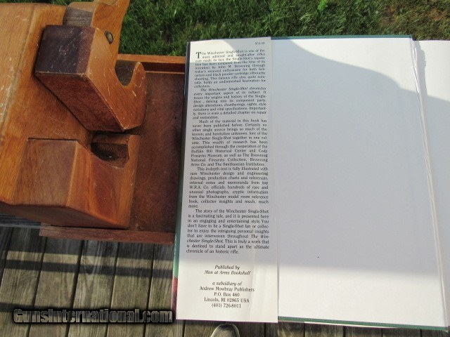 Description: DESCRIPTION: The Winchester Single Shot, Volume 1, by John Campbell, published in 1995 and highly sought by Winchester & antique firearms collectors, containing 270 pages of pictures, information, calibers, drawings and more about the world's most famous Single Shot rifle. CONDITION: Excellent, showing only minor wear to the pages and dust jacket, with some light creases to jacket, 1" tear to inner cover/first page binding, and very light staining from use/age on page edges. A must-have for the collector. TERMS: No international sales. Payment by bank check, money order, personal check, or all major credit cards with 3% surcharge. Free shipping through USPS Media Mail. Buyer pays return shipping if not completely satisfied - 3 day inspection allowed. Thanks for looking. Interested in buying single pieces and collections of old firearms, especially Winchester, Colt, S&W, Marlin, Savage and Remington. 315.251.4799 with questions or concerns. SOLD |