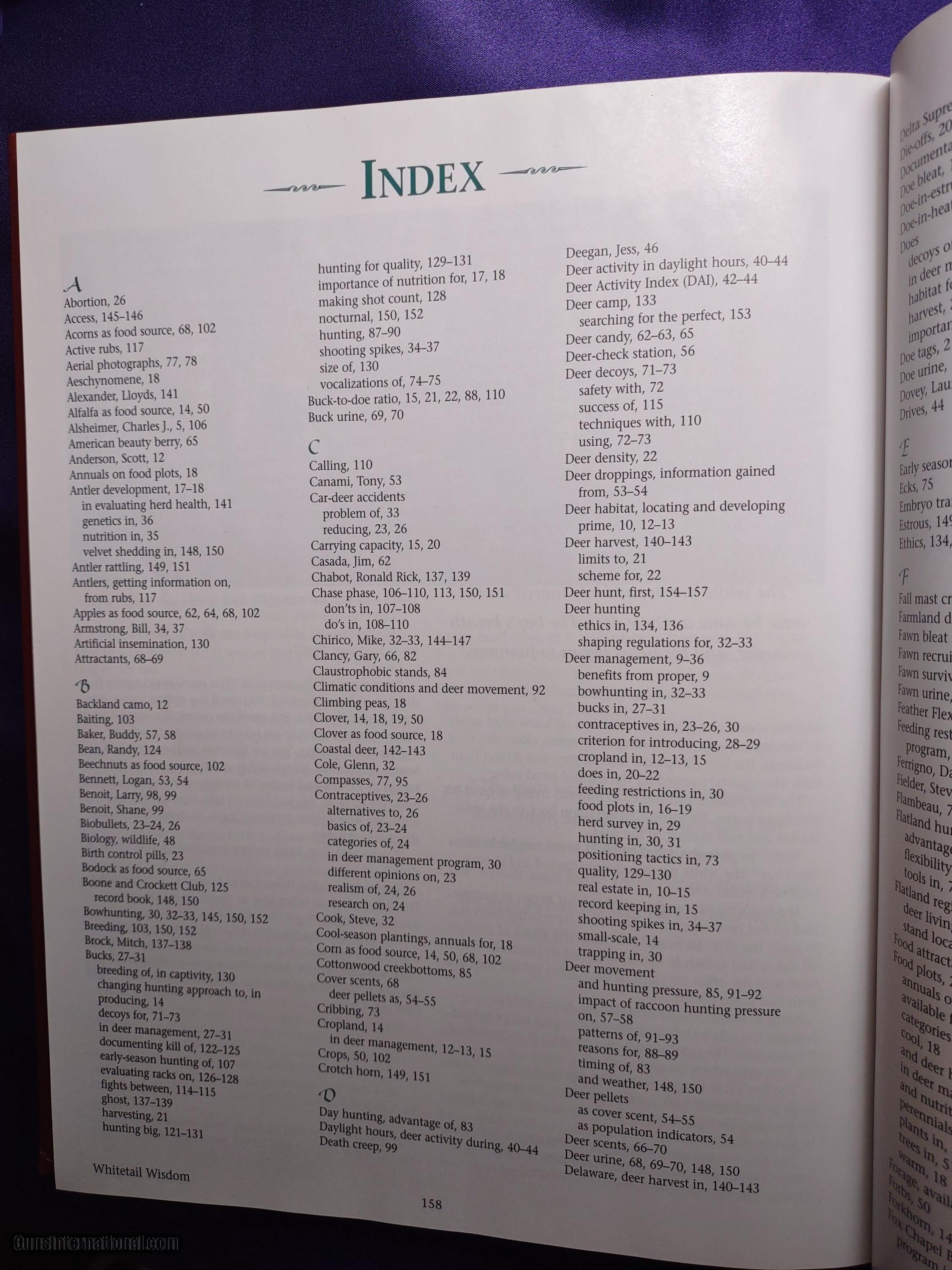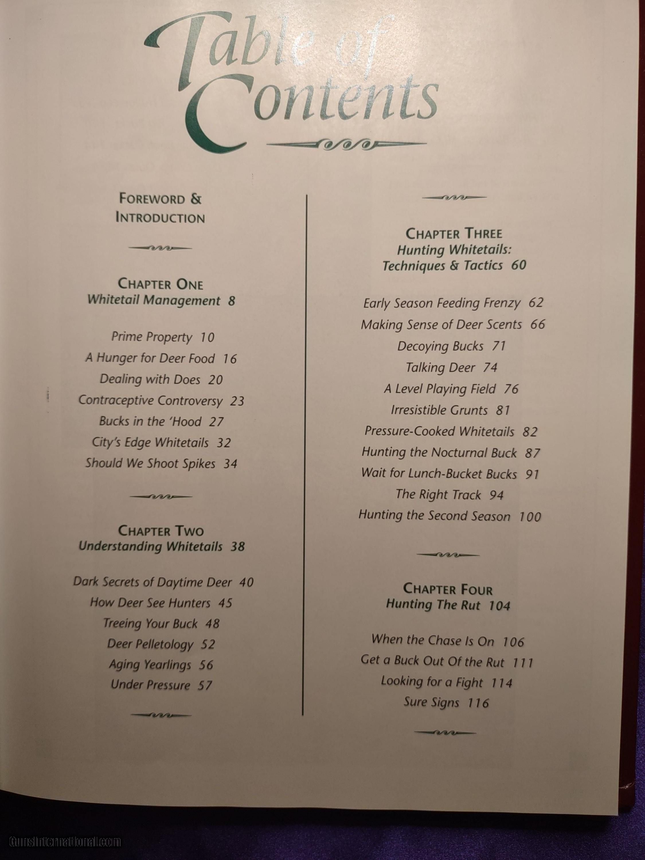 Description: WHITETAIL WISDOM, researched, written and published by the NORTH AMERICAN HUNTING CLUB and edited by Gregg Gutschow the managing editor of NORTH AMERICAN HUNTER MAGAZINE. This pristine, hard cover, 160 page book has hundreds of color pictures, hunting facts, whitetail insights and proven facts about whitetail deer that has taken over 100 years to collect. The TABLE OF CONTENTS AND INDEX, pictured herein, shows the depth of this incredible masterpiece. This book is 100% in flawless, brand new condition: no stains, no hand prints, no underlining, no highlighting, no coffee stains and no folded pages... perfect...11 1/4" X 9". This would make a great gift for any outdoor enthusiast and Christmas is just around the corner. The price is $40 with free mailing. Call or text me at 318-780-4242 if you are interested. SOLD |