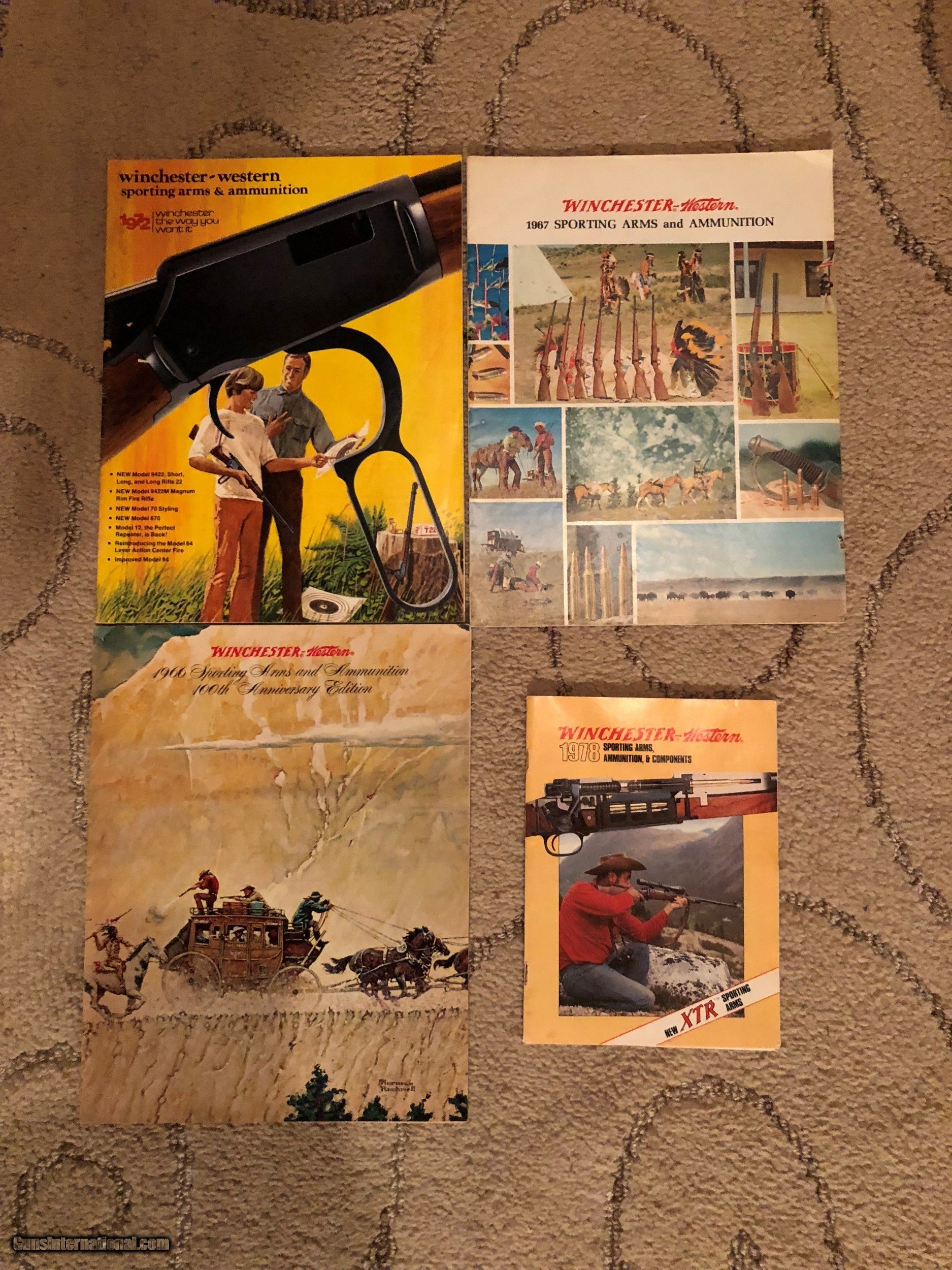 Description: Here we have 4 Winchester Catalogs. They are from 1966, 1967, 1972, and 1978. All four catalogs are in great shape. The 1978 catalog is one of the smaller ones and it measures 51/2"X71/2" all of the others are full size at 81/2"X11". Ask any questions or if you need more pictures. No sales outside of the U.S.. Shipping is $3.50 USPS Priority Mail. Thanks SOLD |