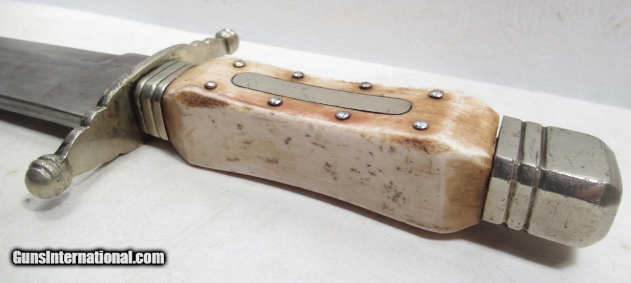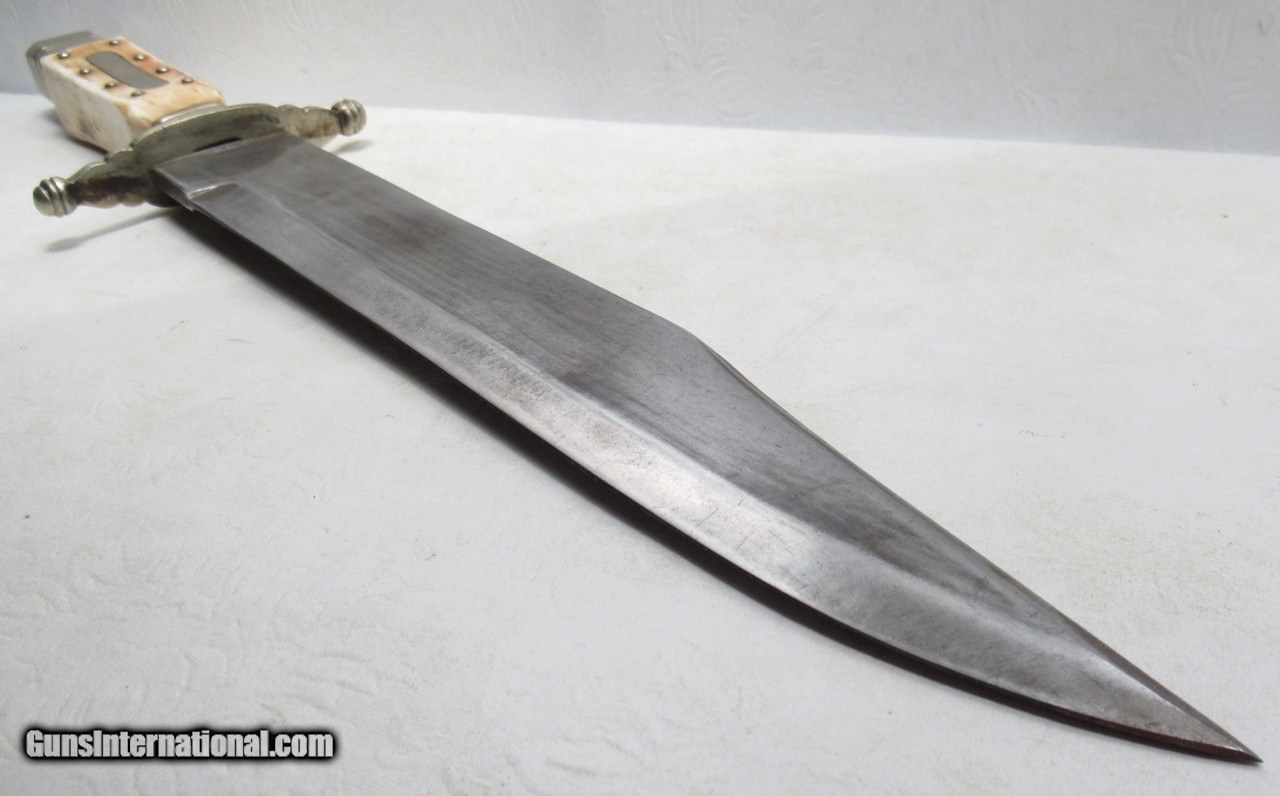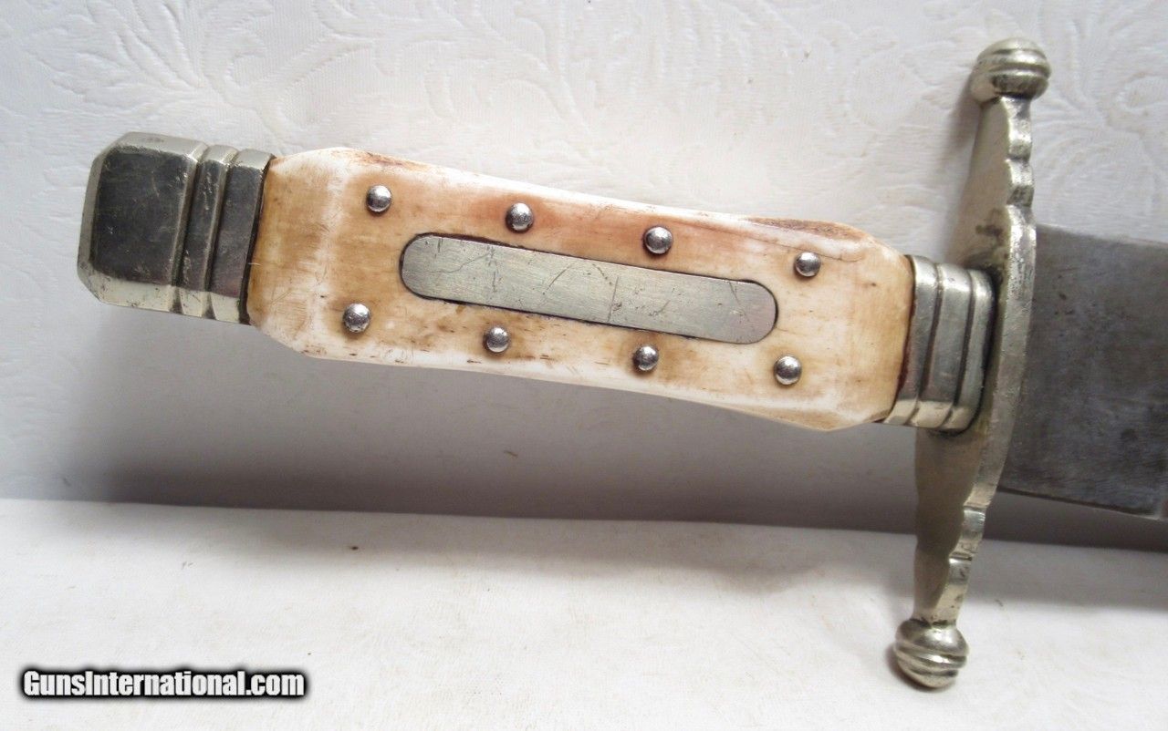 Description: Bowie Knife with Sheath; 10 ½” Clip-Point Blade Marked “Southern & Richardson – Sheffield”; 15 ½” L.O.A.; Age Unknown; See All Photos for Condition; No Texts; Call (254)541-5765 or Email Only; PERSONAL PROPERTY of Harold Wieser; NOTICE: We Do Not Do Any Consignments - All Items Listed are Owned by Us - NO SALES to New Jersey or New York City - Antiques Only to Massachusetts and California; Price: $875 + $45 S&H Sold as is - No Returns; Payment Address: Harold Wieser - 1466 U.S. Hwy 77 - Rosebud, TX 76570; SEND PAYMENTS VIA USPS PRIORITY MAIL; BEWARE of SCAMS!!! – DO NOT SEND MONEY or CORRESPONDENTS ELECTRONICALLY UNLESS YOU HAVE SPOKEN to HAROLD WIESER FIRST! 254-541-5765 SOLD |