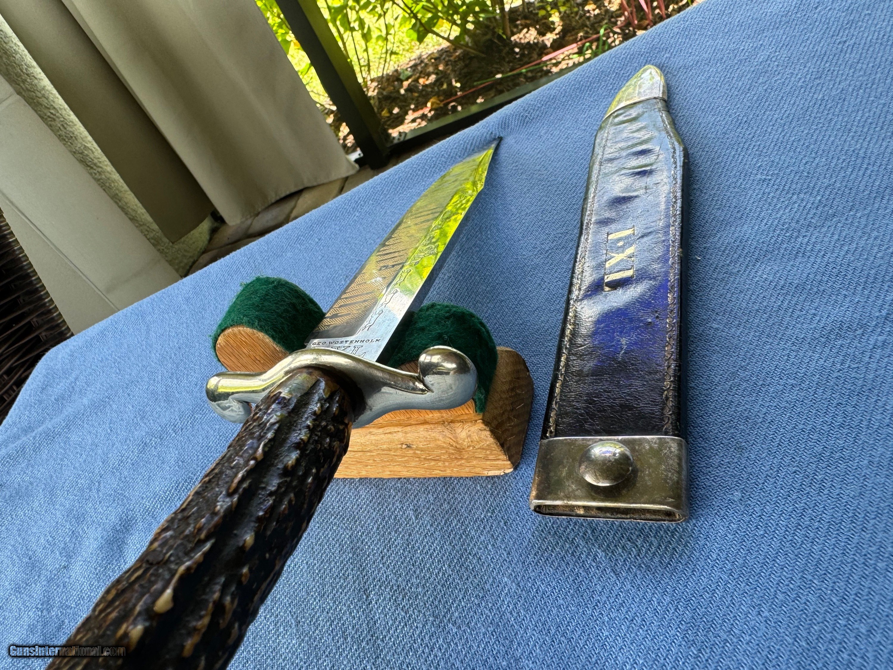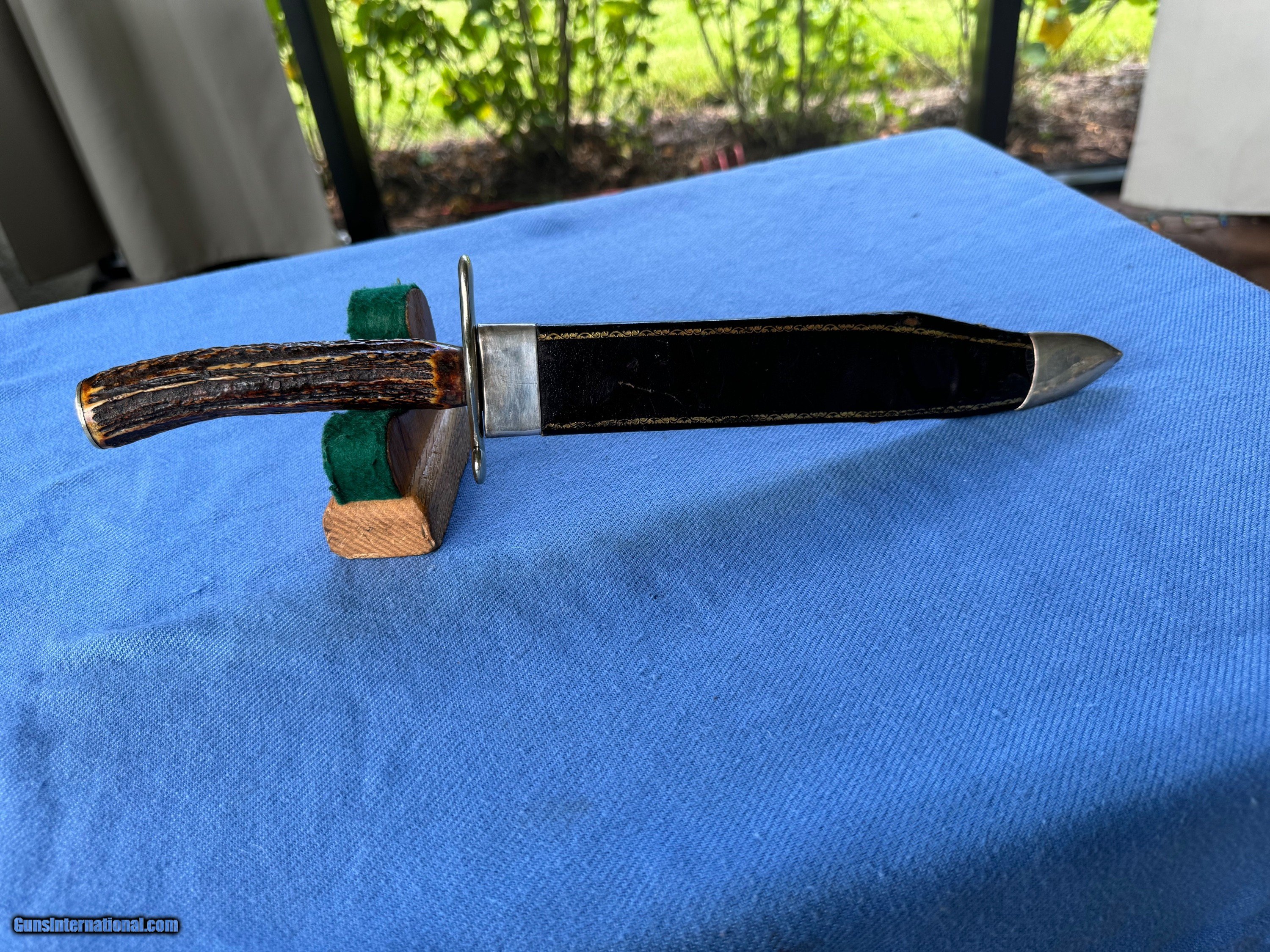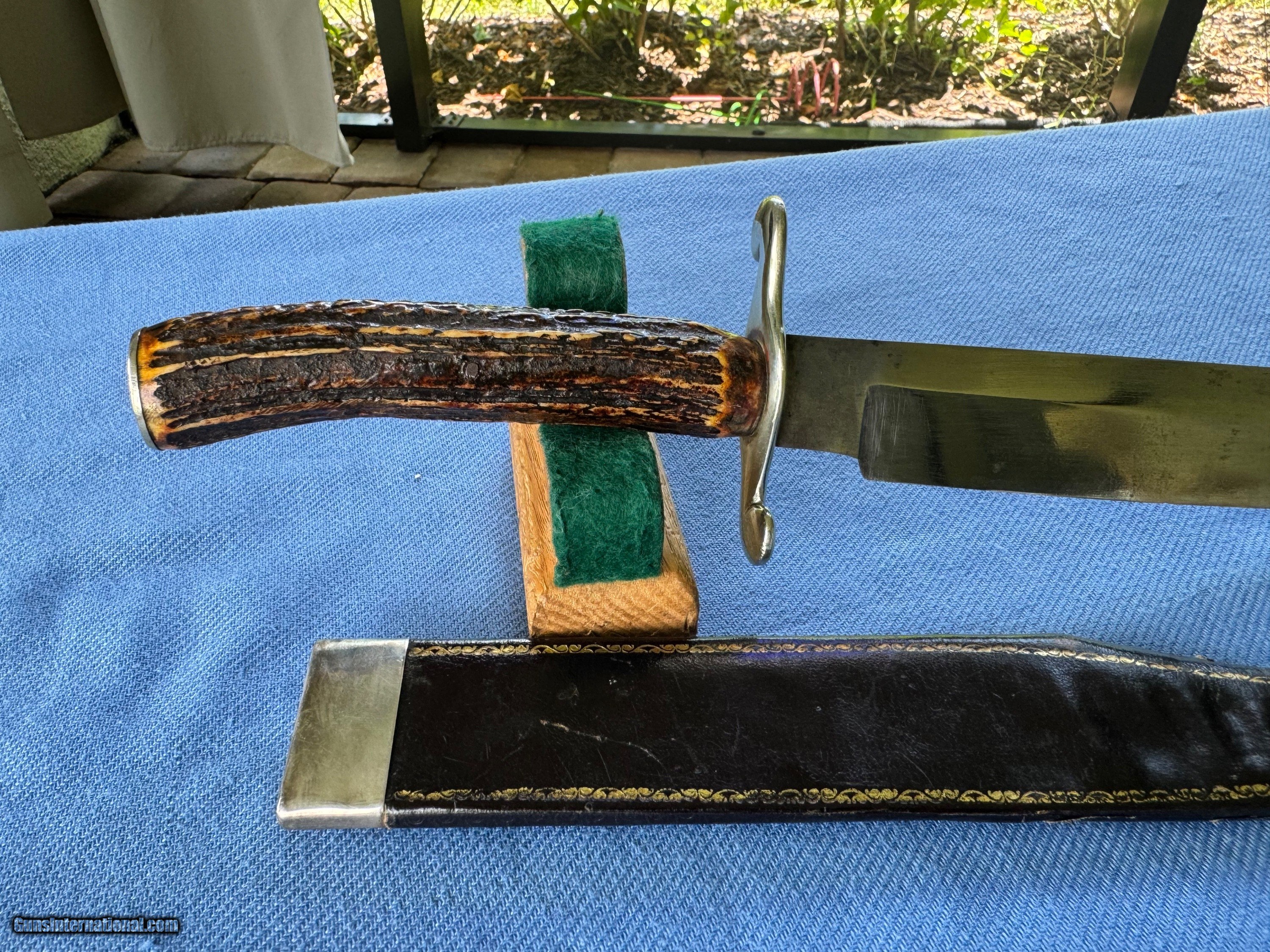 Here's a Awsome Example of a Super Rare AMERICAN 1850's Gold Rush Bowie knife ! In Un touched Original Condition !!Theres some Blood stain on front of blade . The rest of the 10 1/2" clippoint blade is in excellent condition! Blade has a Glod Rush lettering on Blade and rare hunting scene engraved on blade . Never sharpened has original edge . Handle is made of horn and is in excellent condition! Gaurd and pommel are silver . Original IXL Leather Sheathe is in excellent condition . Silver mounted . Overall a Excellent Example of a Historical American Gold Rush Bowie Knife ! Please review my photos and email me with any questions? 3 day inspection as allways ! Thank you for looking, Little Jo