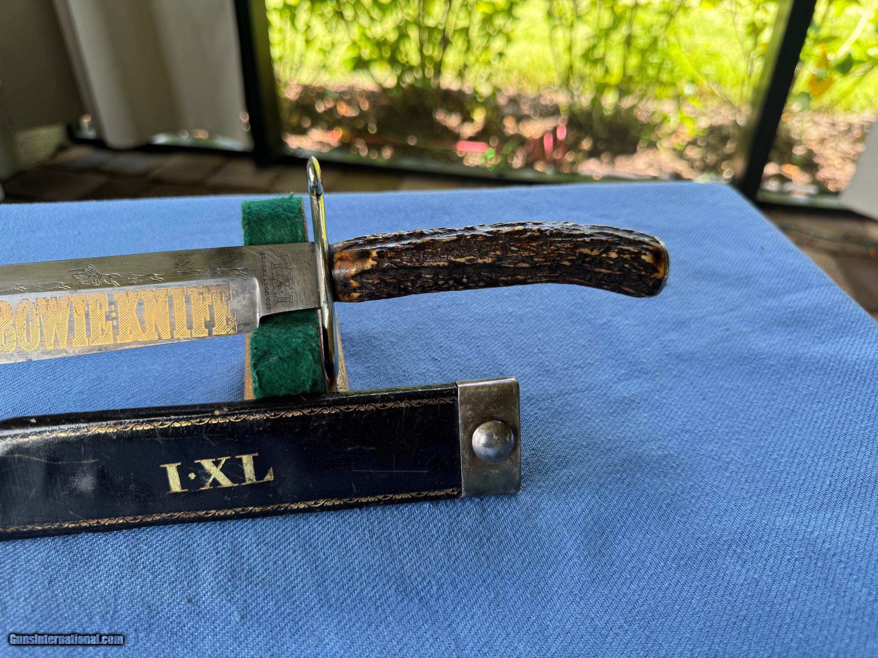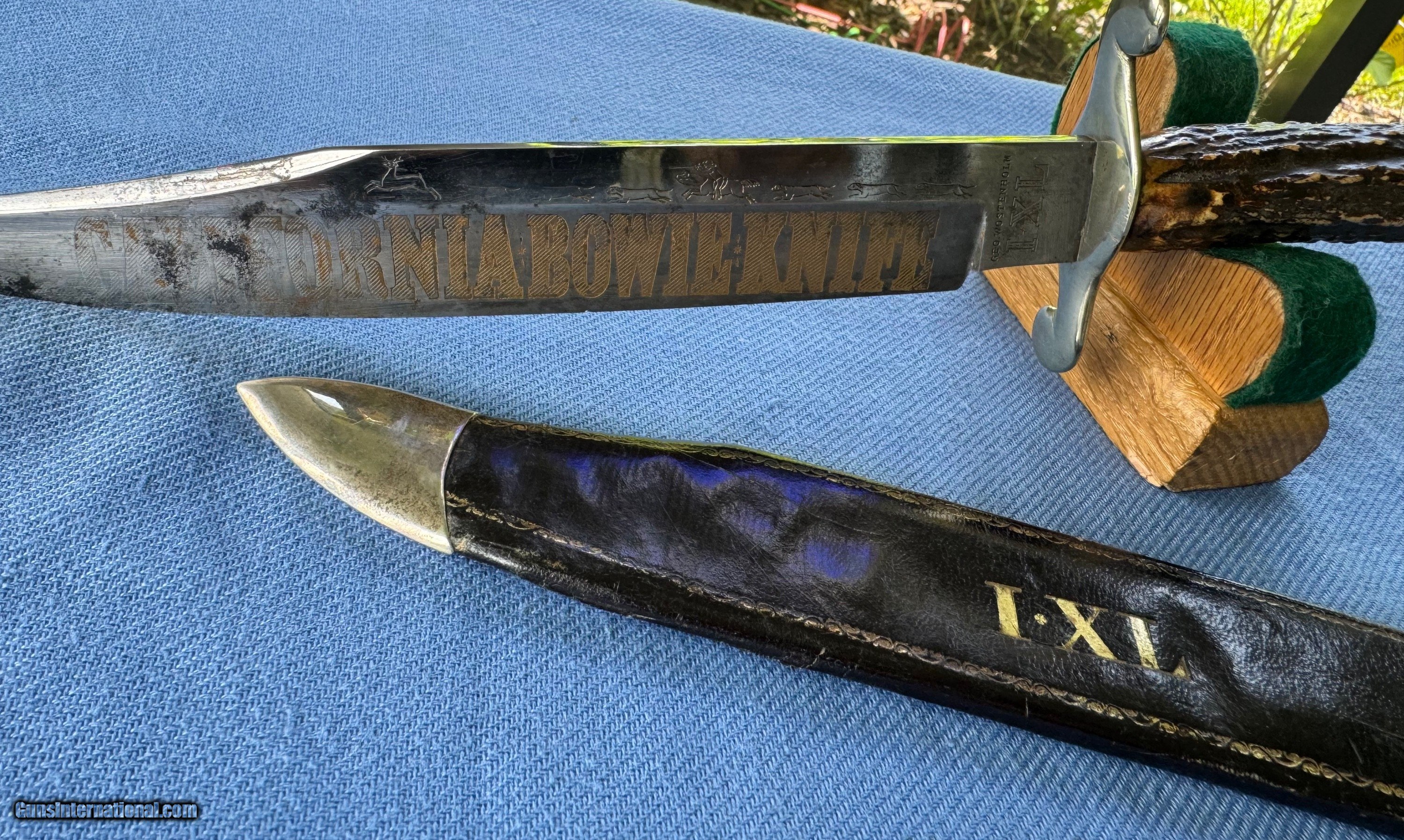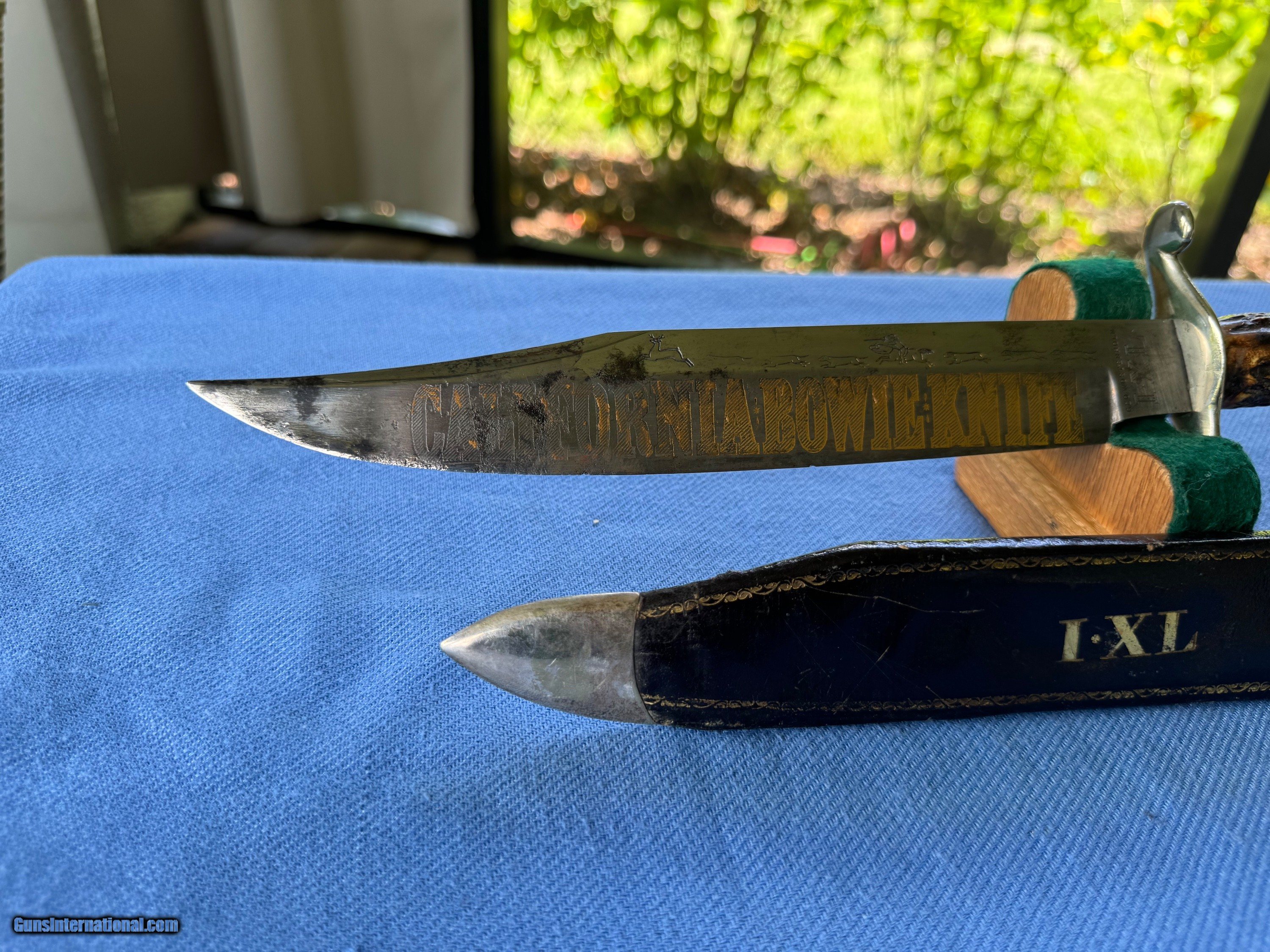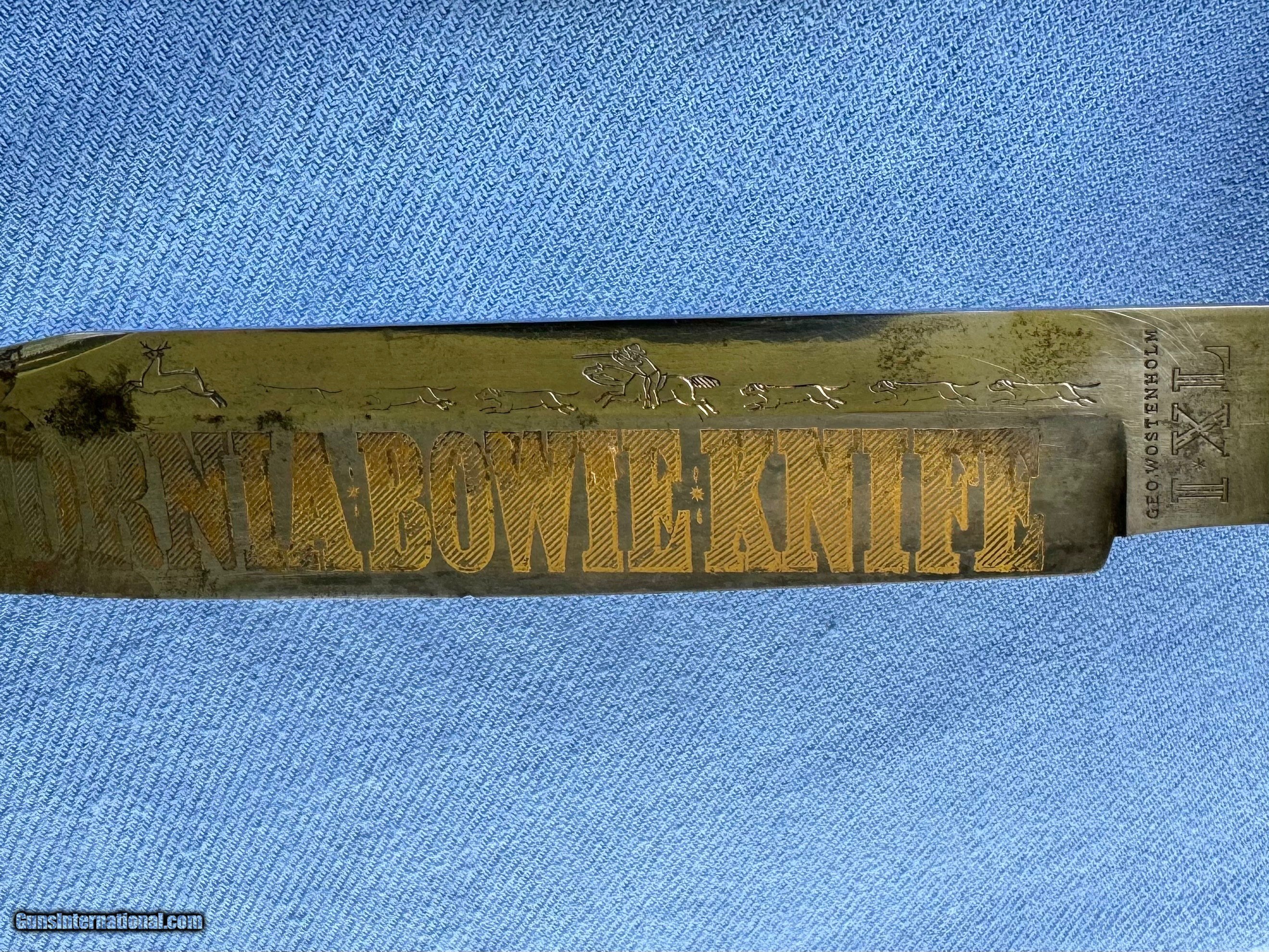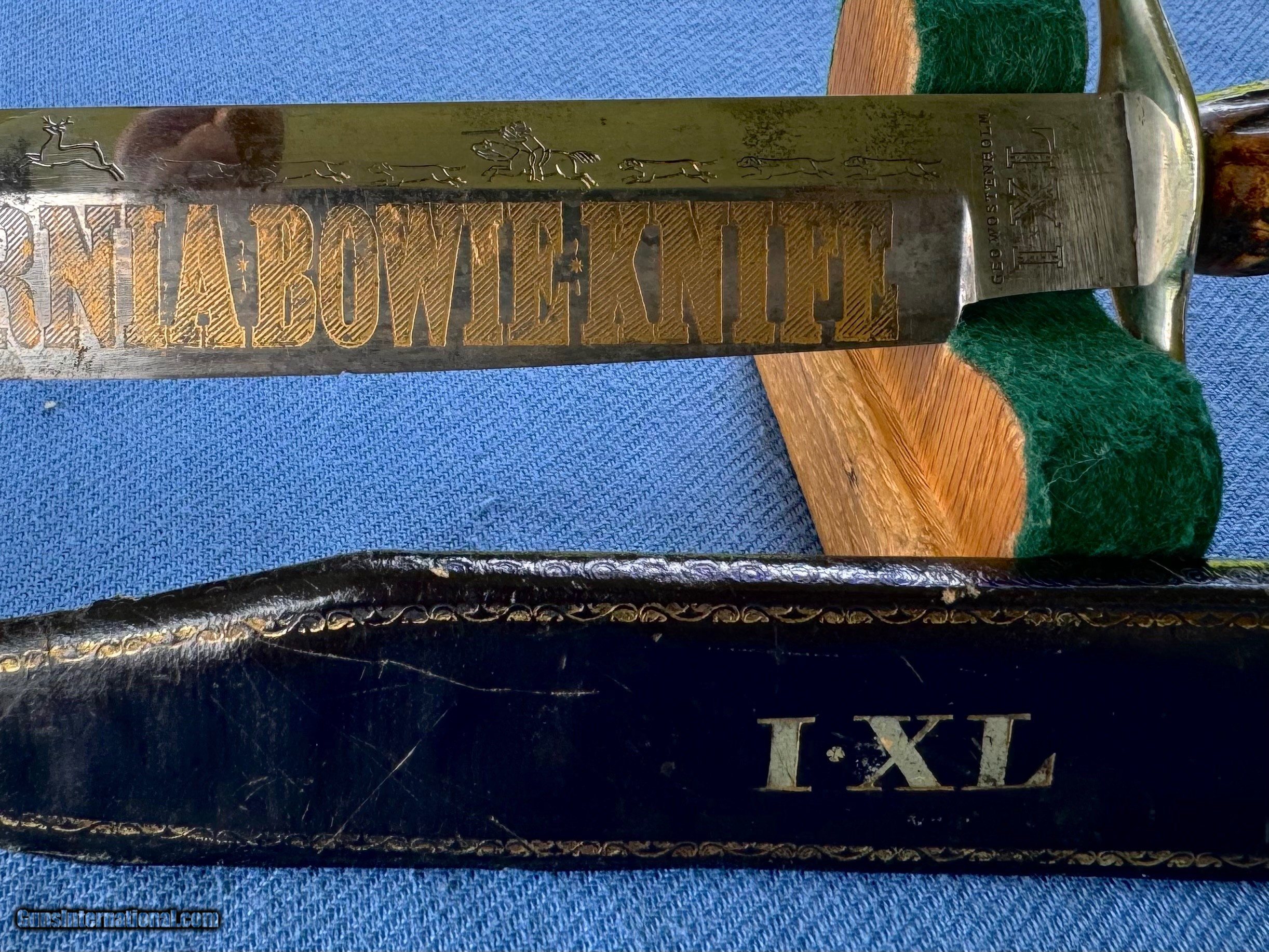 1850’s IXL GOLD RUSH CLIPOINT BOWIE W HUNTING SCENE
