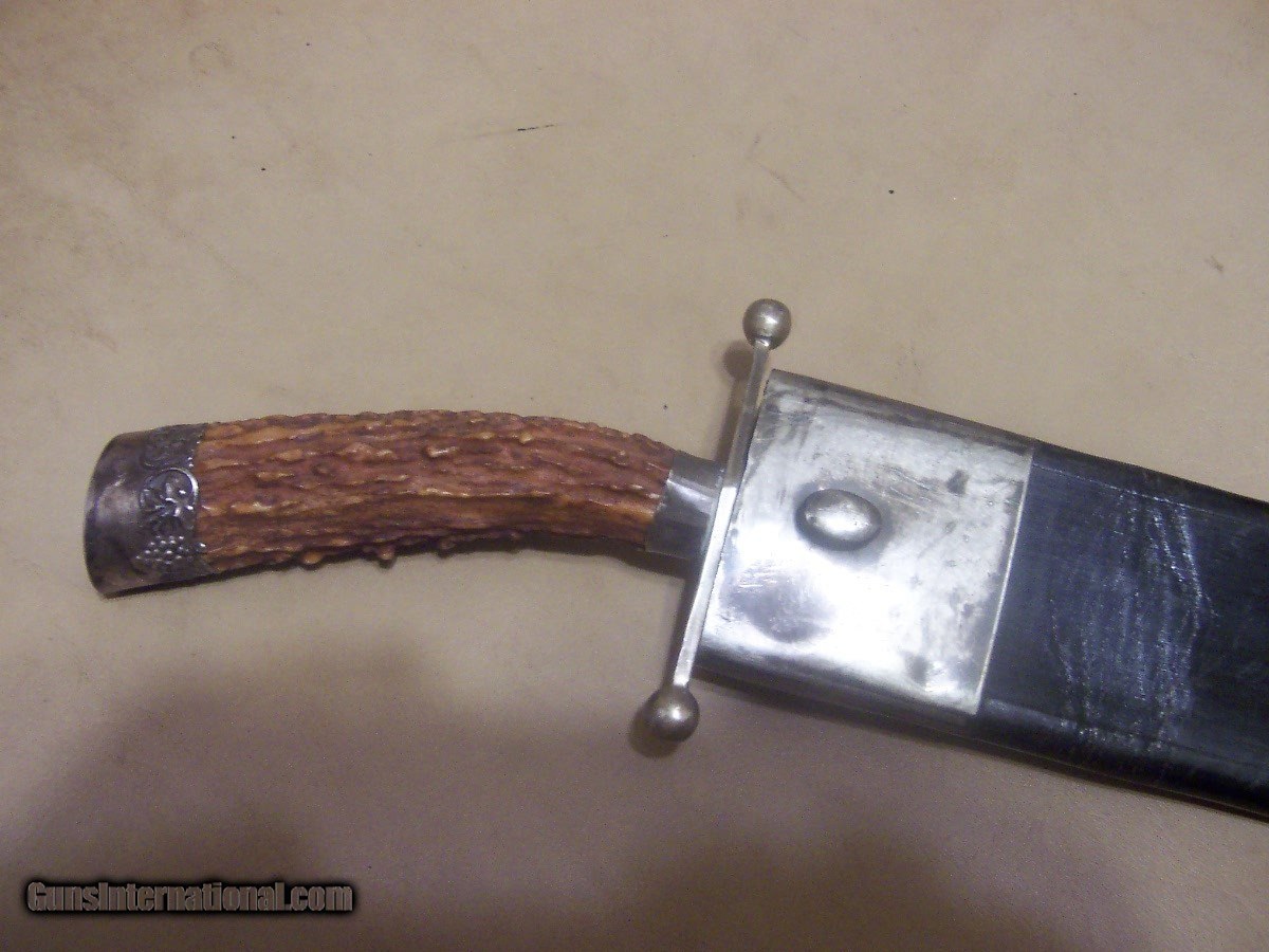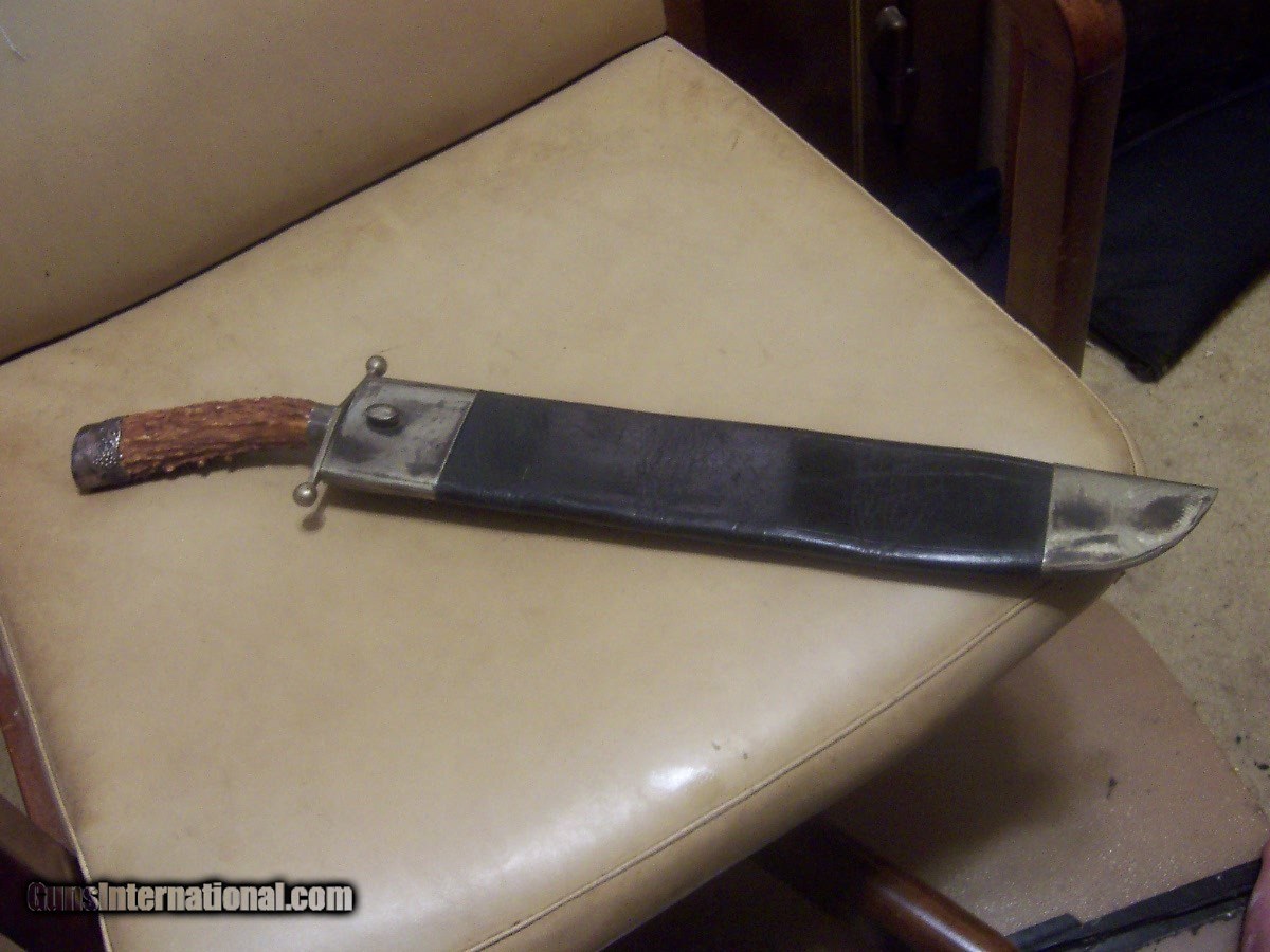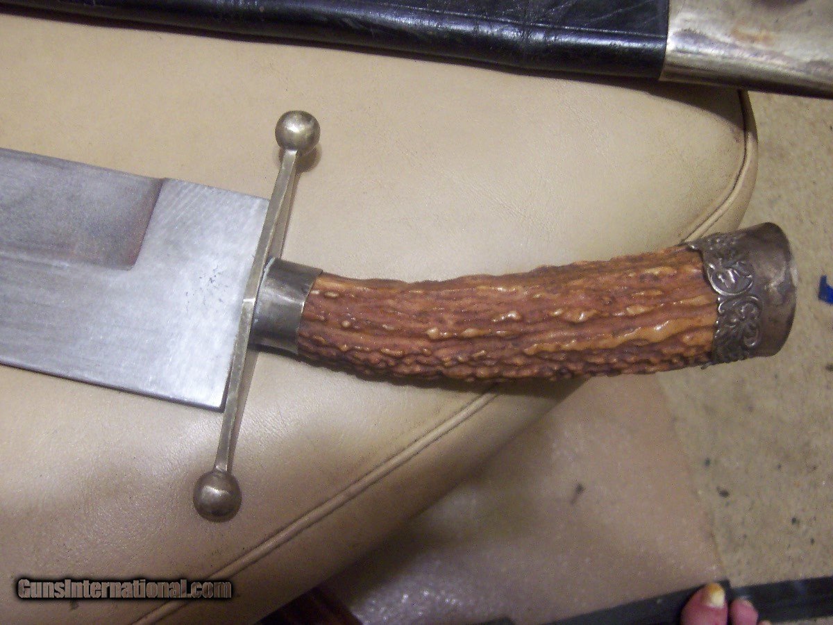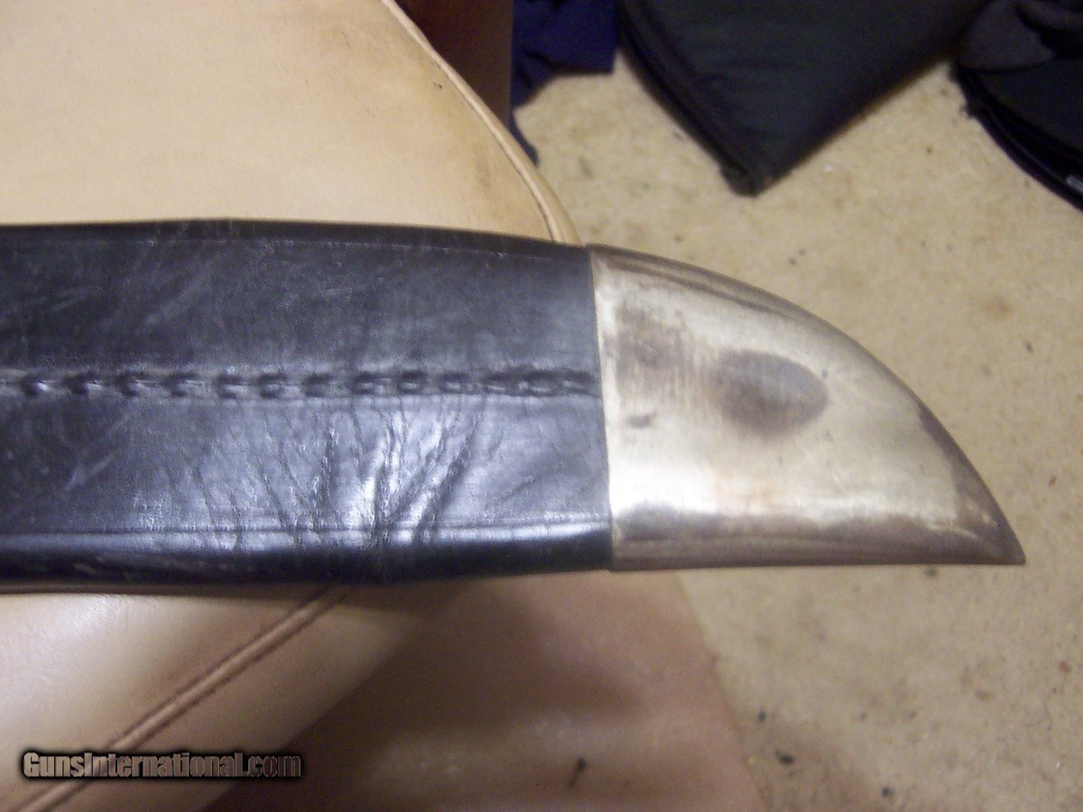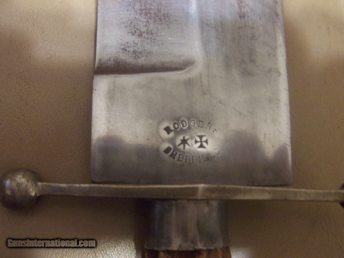 Description: 15 inch blade 21 inches oa leather scabbard brass guard with traces of silver pklate marked rogers sheffield may be 1800s made $29 sh SOLD |