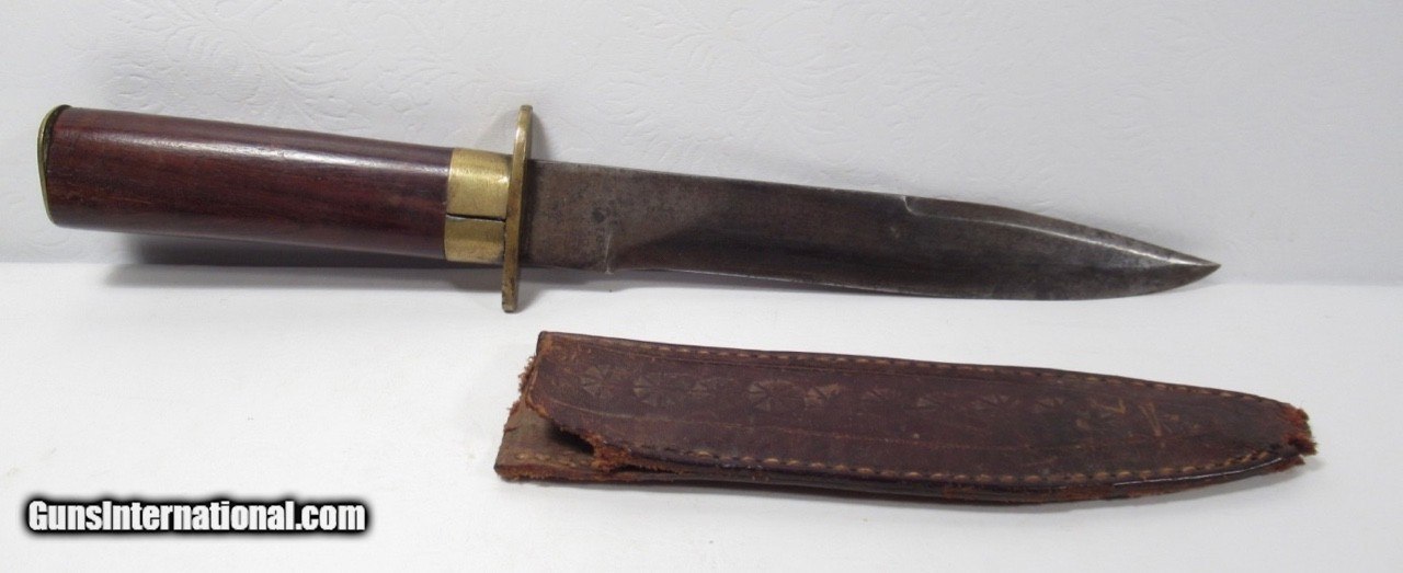 Description: LIQUIDATING PERSONAL COLLECTION!!! Very RARE Civil War Bowie/Side Knife made by ROCHUS HEINISCH in Newark, N.J.; 12 ¼” L.O.A with 7 3/8” Clip Point Blade; ORIGINAL Sheath Wood Handle with initials J.R.M. on left side; Blade marked “R. HEINISCH”; ALL of Known examples were Used by Union Soldiers in the Civil War; EXTREMELY RARE in ORIGINAL Condition; Included is March 1972 Gun Report with 3 page Article on HEINISCH; Price: $975 Shipped; Price includes insured shipping SOLD |