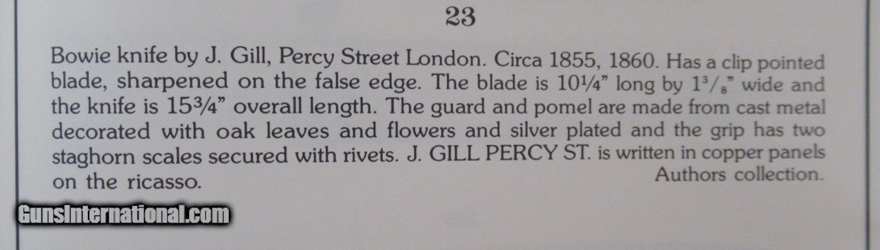 J. GILL, PERCY STREET LONDON MADE BOWIE KNIFE from COLLECTING TEXAS – CIRCA 1855-1860