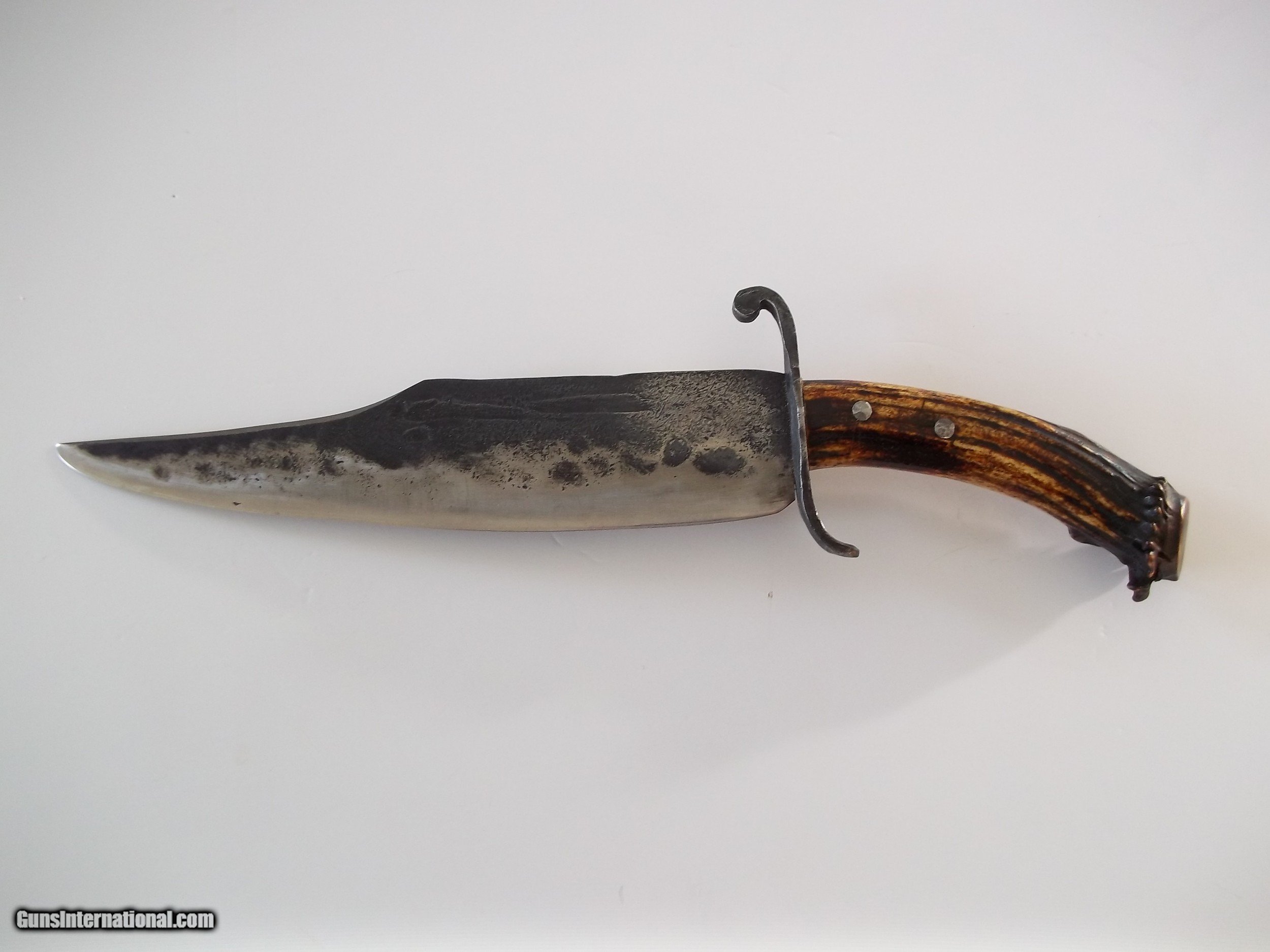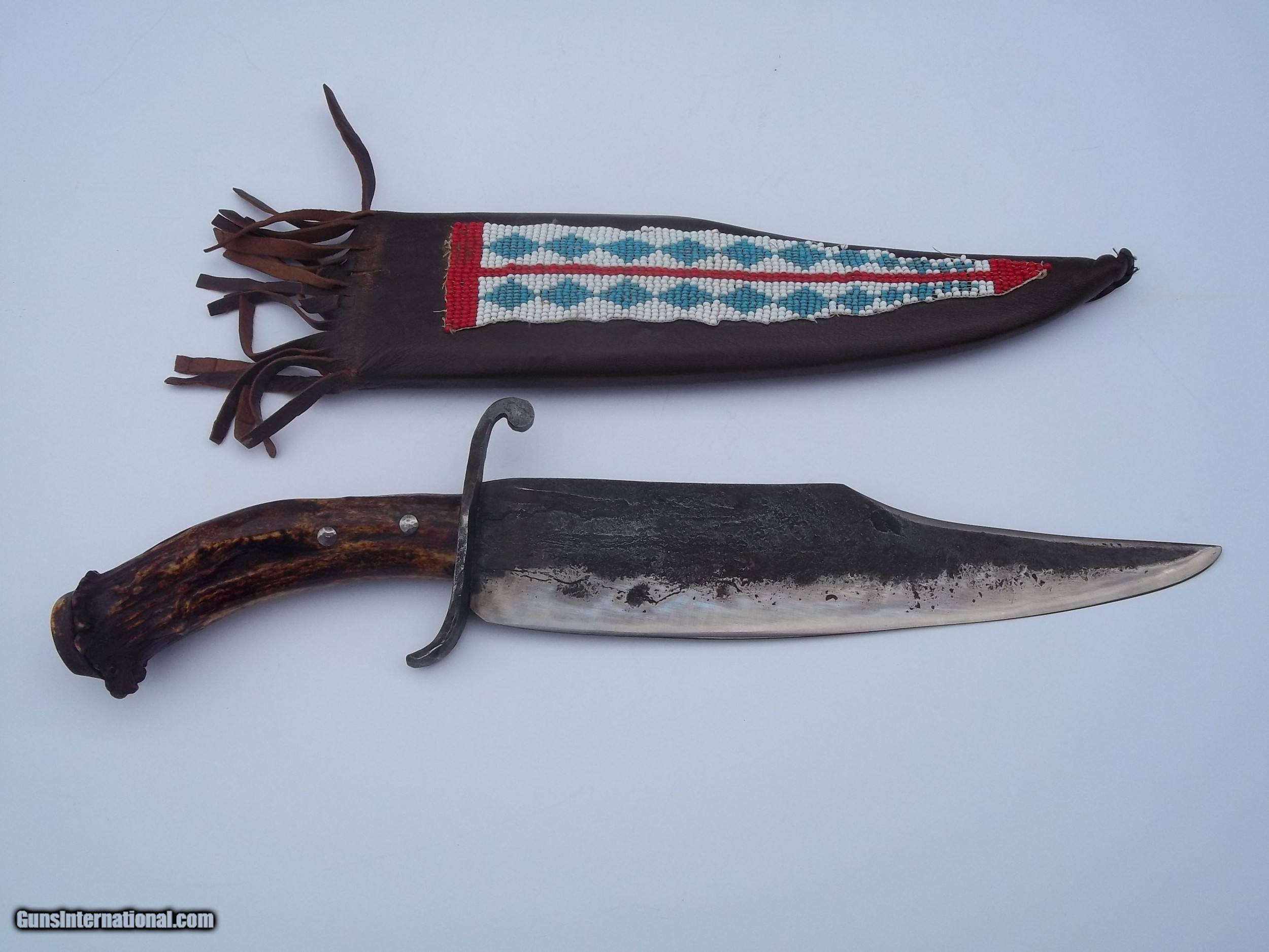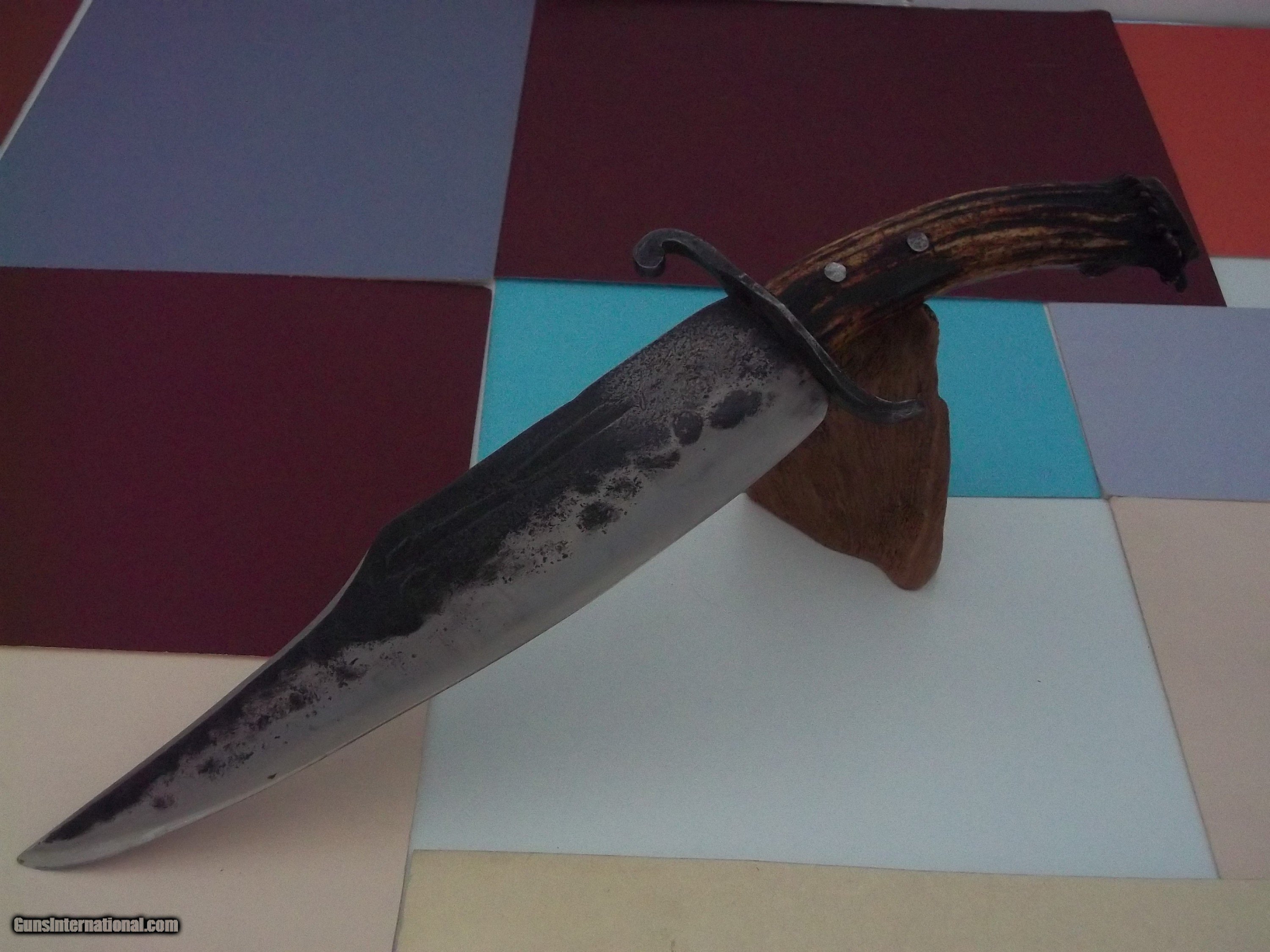 Description: James L. Batson,Jr. The "ALAMO" Bowie, Southwest style , iron guard with half penny finial and flat balls terminal, red cedar wooden handle, beaded scabbard. Blade is 10-5/8" by 2-1/4" wide This is the very first knife of the series that was made back in 1985 when the maker produce 30 exquisite knives modeled from 18th century. It is the one shown on the cover of his scarce 1989 catalog, a true rarity today. Provenance letter, Grussenmeyer Collector's Edition catalog are included in the sale, see photos # 14 .. Free shipping USPS with tracking # and signature required. I do not engage in any type of trade. Thank you for looking. Sold "AS IS" and as a final sale. SOLD |