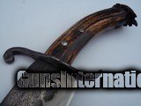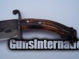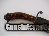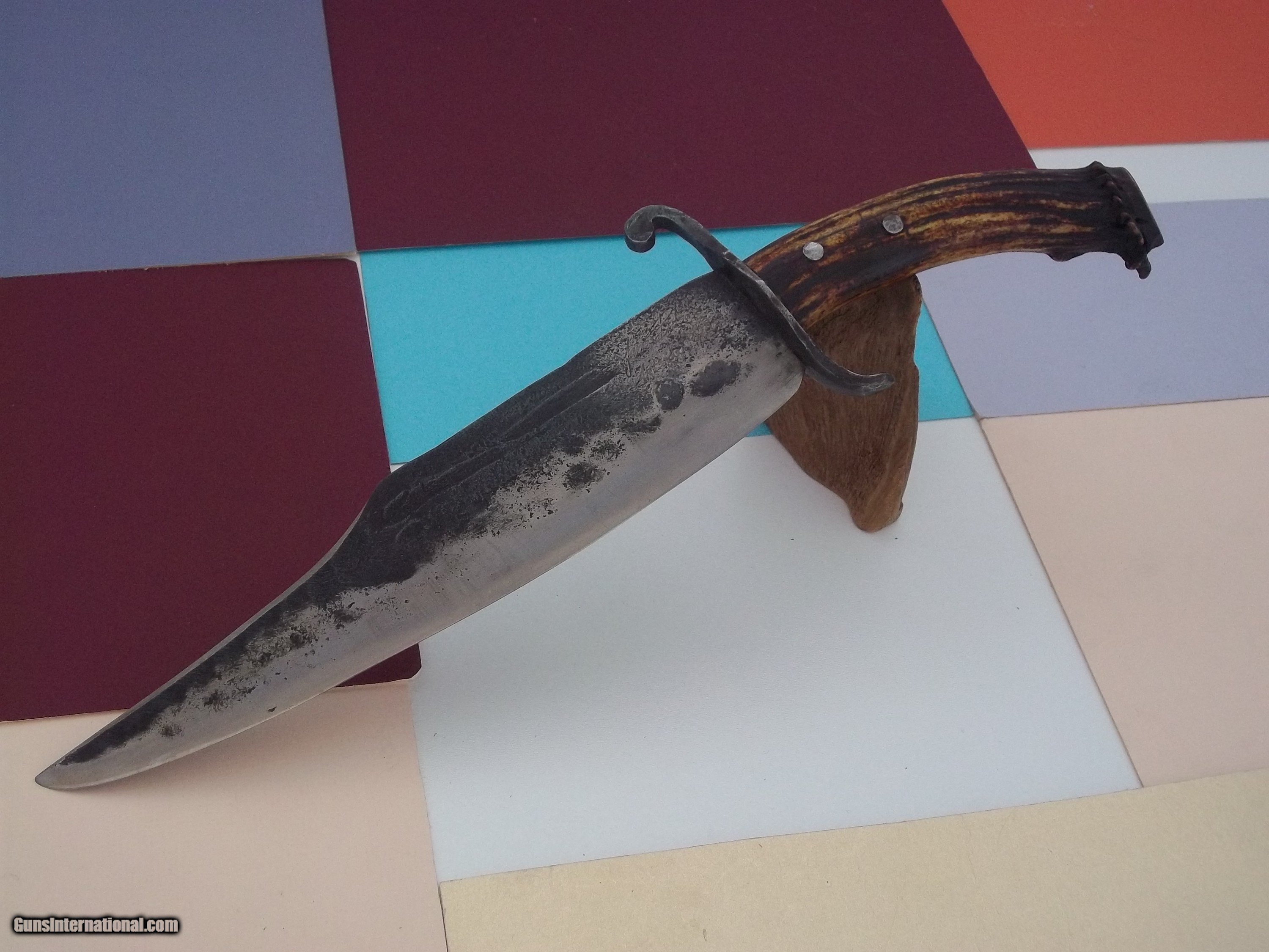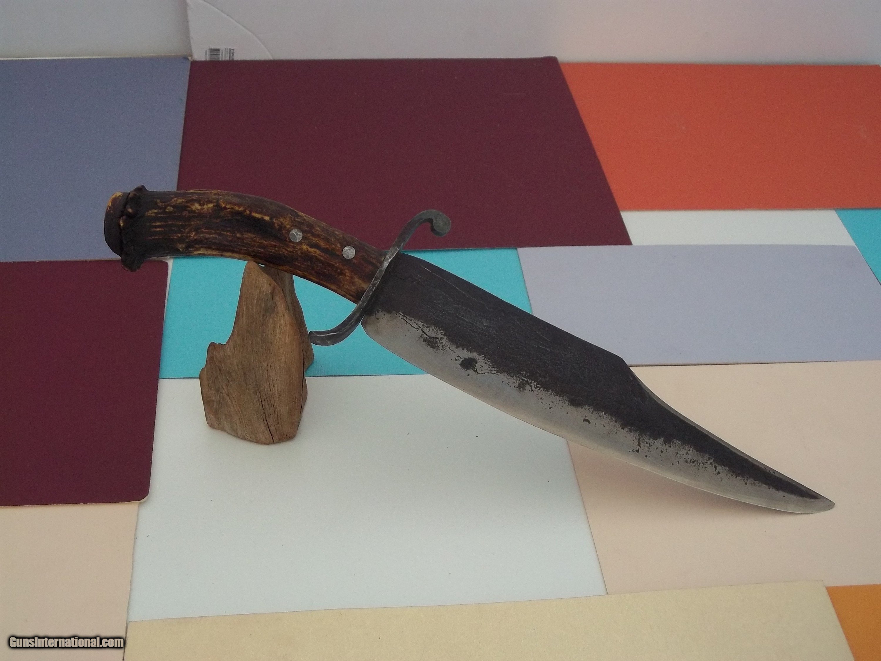 Description: James L. Batson,Jr. The "ALAMO" Bowie, Southwest style , iron guard with half penny finial and flat balls terminal, red cedar wooden handle, beaded scabbard. Blade is 10-5/8" by 2-1/4" wide This is the very first knife of the series that was made back in 1985 when the maker produce 30 exquisite knives modeled from 18th century. It is the one shown on the cover of his scarce 1989 catalog, a true rarity today. Provenance letter. Free shipping USPS with tracking # and signature required. I do not engage in any type of trade. Thank you for looking. Sold "AS IS" and as a final sale. SOLD |