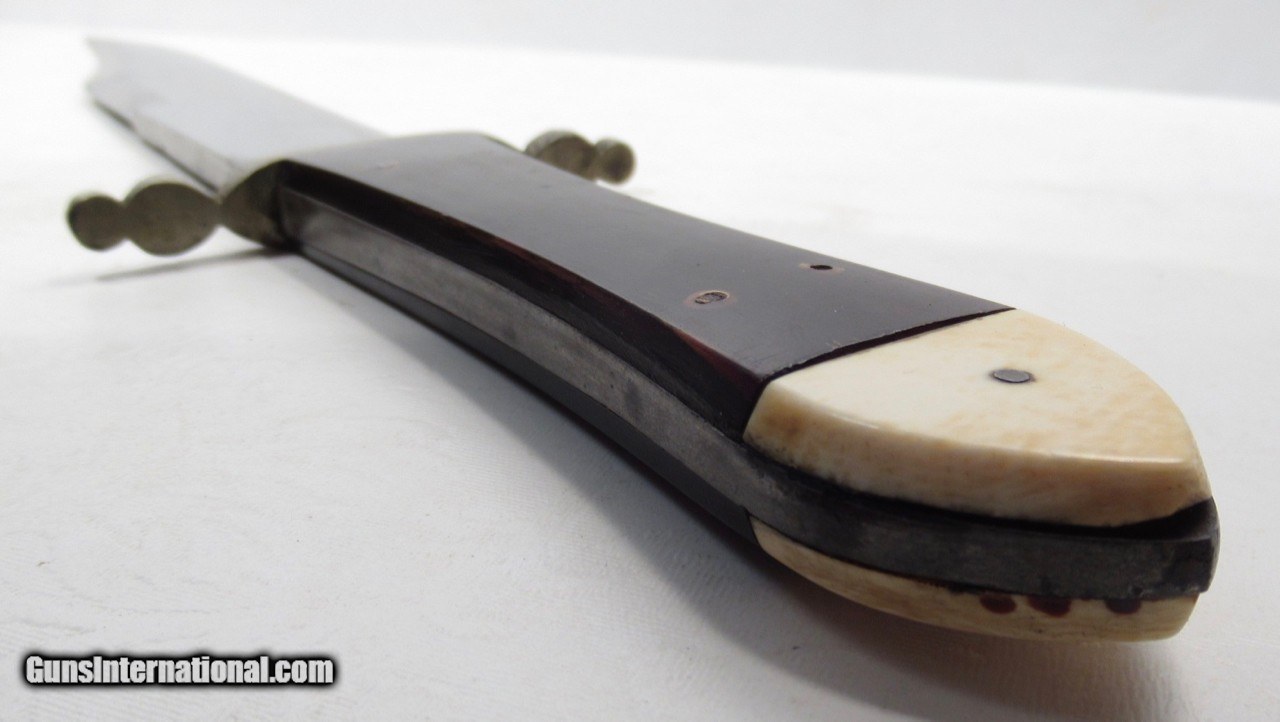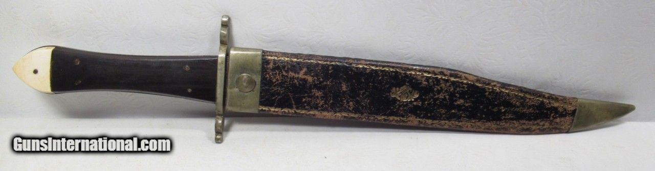 Description: George Woodhead Bowie Knife; Unmarked with Original Sheath; Circa 1850; Horn and Ivory Handles; 9” Clip Point Blade; Blade 3/16” Thick; 14” L.O.A.; 170 Year-Old Sheffield Bowie Knife from the Dr. H.H. Miller Collection; See All Photos for Condition; No Texts; Call (254)541-5765 or Email Only; PERSONAL PROPERTY of Harold Wieser; Price: $1,975 + $45 S&H Via USPS PRIORITY MAIL; Payment Address: Harold Wieser - 1466 U.S. Hwy 77 - Rosebud, TX 76570; SEND PAYMENTS VIA USPS PRIORITY MAIL; BEWARE of SCAMS!!! – DO NOT SEND MONEY or CORRESPONDENTS ELECTRONICALLY UNLESS YOU HAVE SPOKEN to HAROLD WIESER FIRST! 254-541-5765 SOLD |