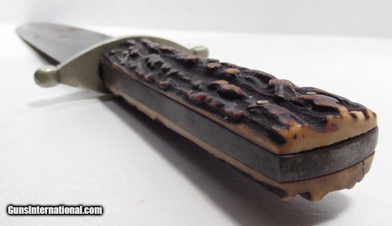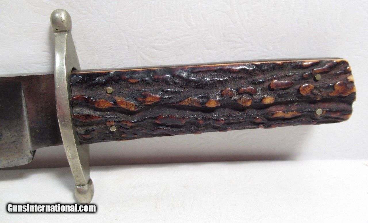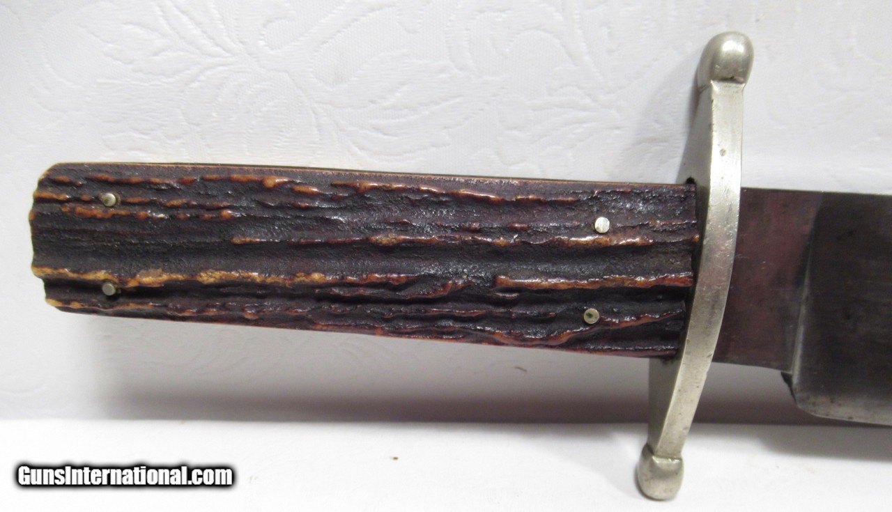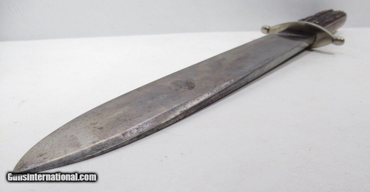 Description: Early Harrison Bros. & Howson Bowie Knife; 10” Heavy Spear-Point Blade; ¼” Thick; Marked with Maker’s Name and Stamped “Cutlers to Her Majesty”; 14 ½” L.O.A.; Nice Original Sheath with German Silver Mounts; Circa 1850’s; From the Dr. H.H. Miller Collection; See All Photos for Condition; No Texts; Call (254)541-5765 or Email Only; PERSONAL PROPERTY of Harold Wieser; Price: $4,475 + $45 S&H Via USPS PRIORITY MAIL; Payment Address: Harold Wieser - 1466 U.S. Hwy 77 - Rosebud, TX 76570; SEND PAYMENTS VIA USPS PRIORITY MAIL; SOLD |