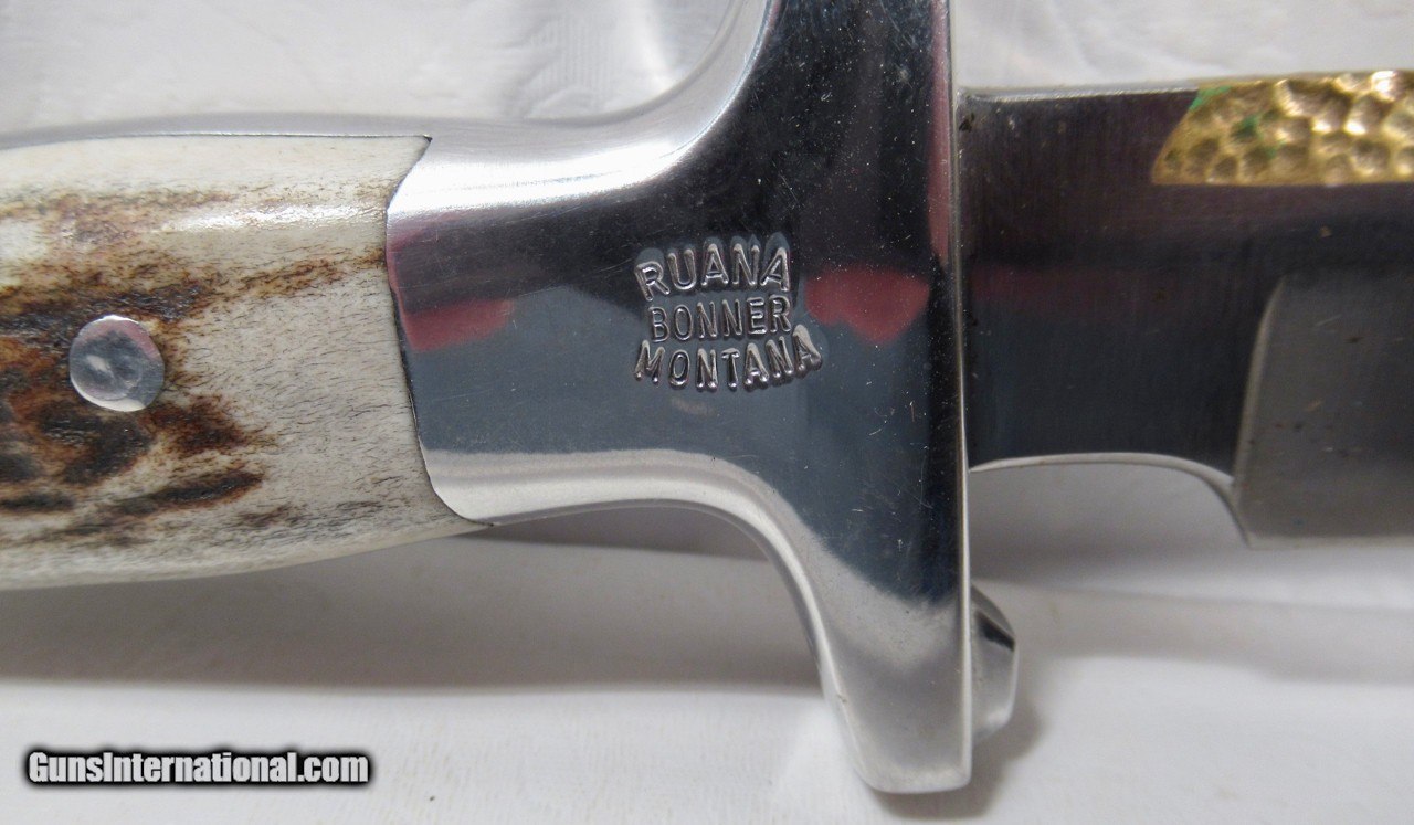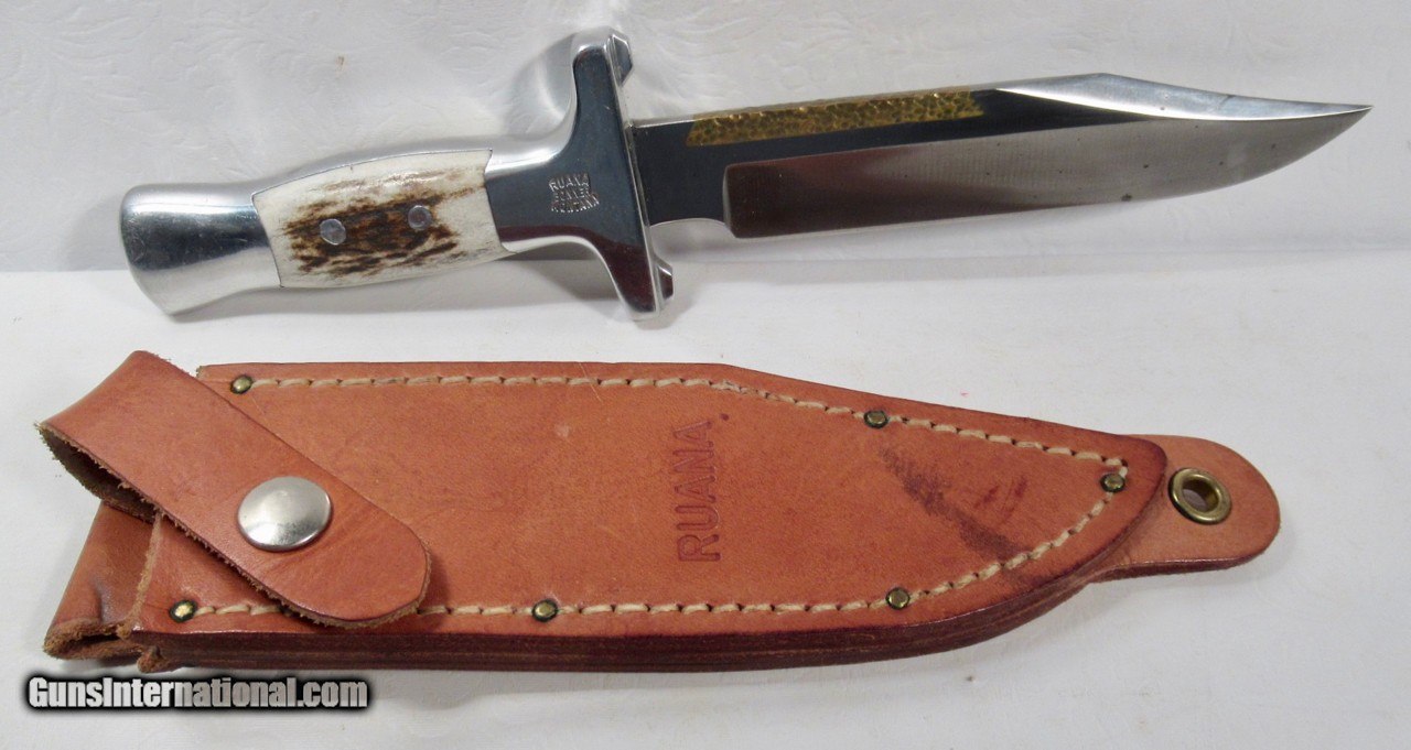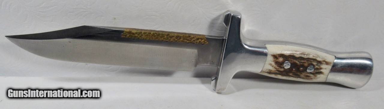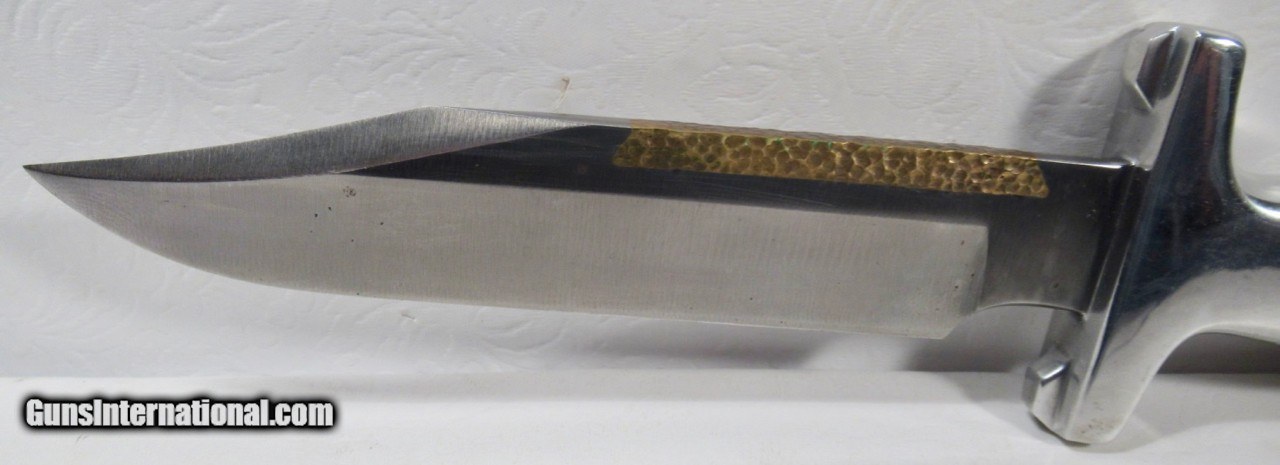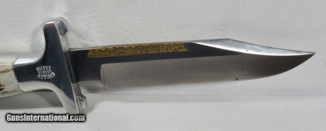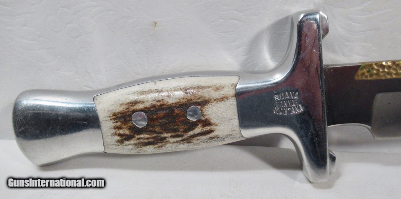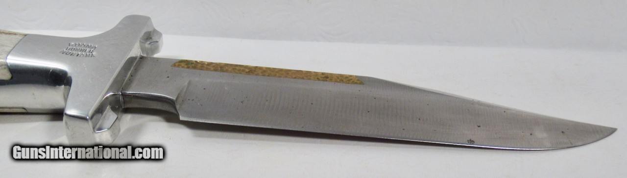 Description: Clip Point Bowie by Ruana or Bonner Montana; 6 ½” Blade; 11” LOA with Sheath; Never Sharpened; These were popular during Vietnam Era, but I don’t know when this one was made; PERSONAL PROPERTY of Harold Wieser; Price: $675 + $30 S&H; Price includes insured shipping; return policy: three days inspection from the date the item is received; full refund of shipping both ways ONLY IF THE ITEM IS MISREPRESENTED. SOLD |