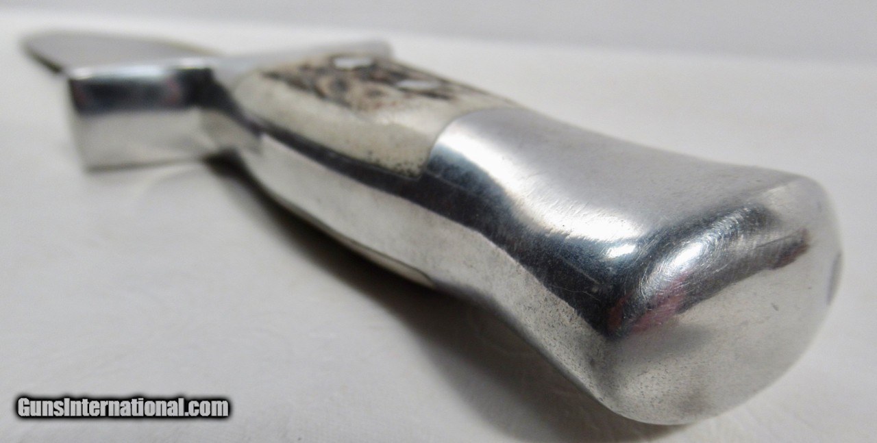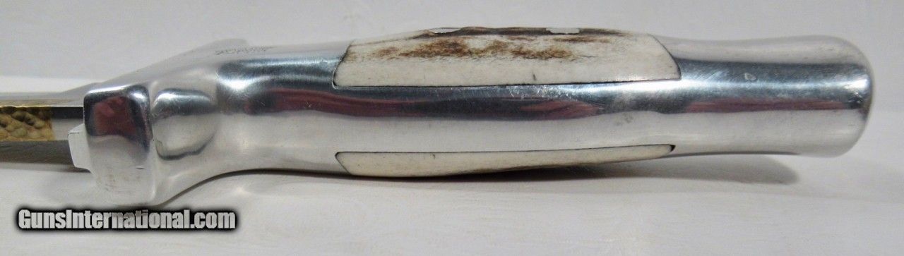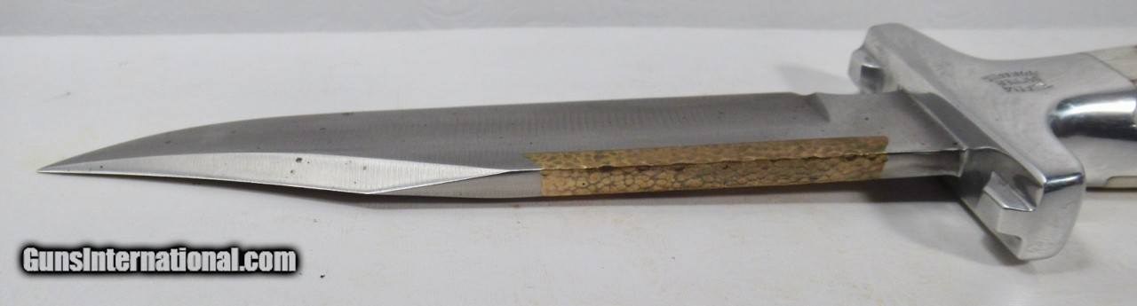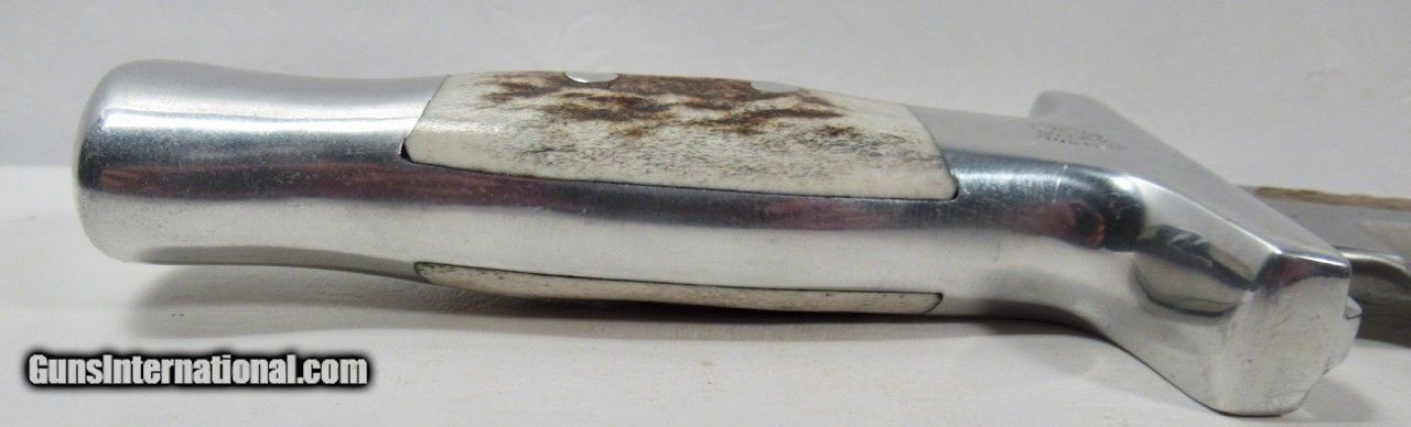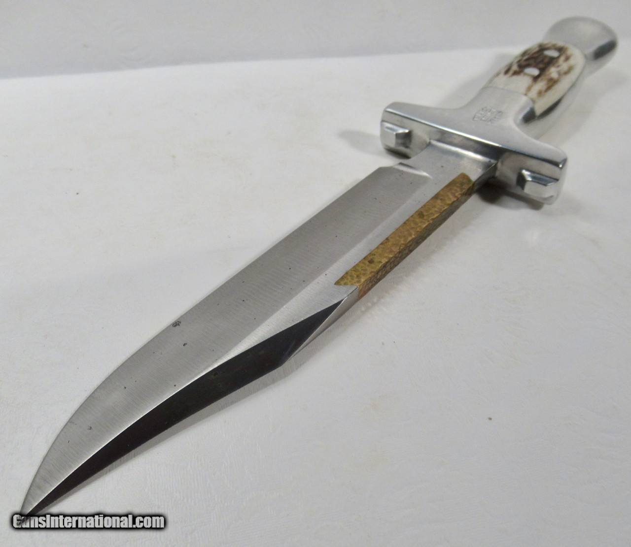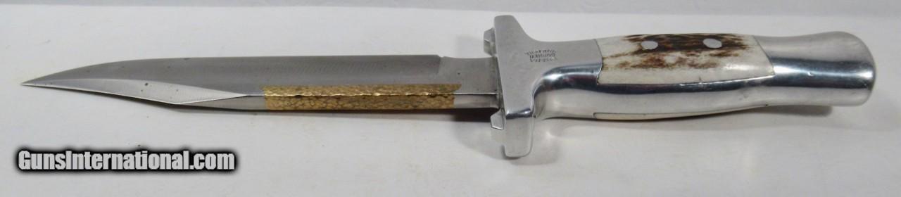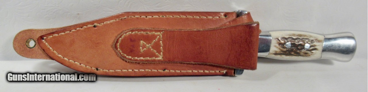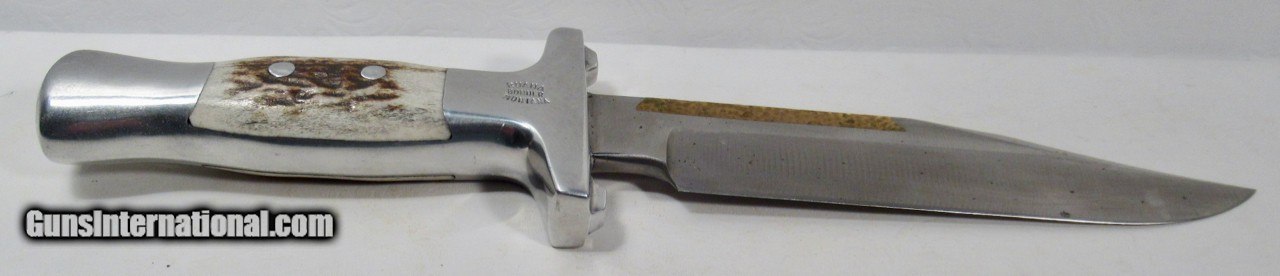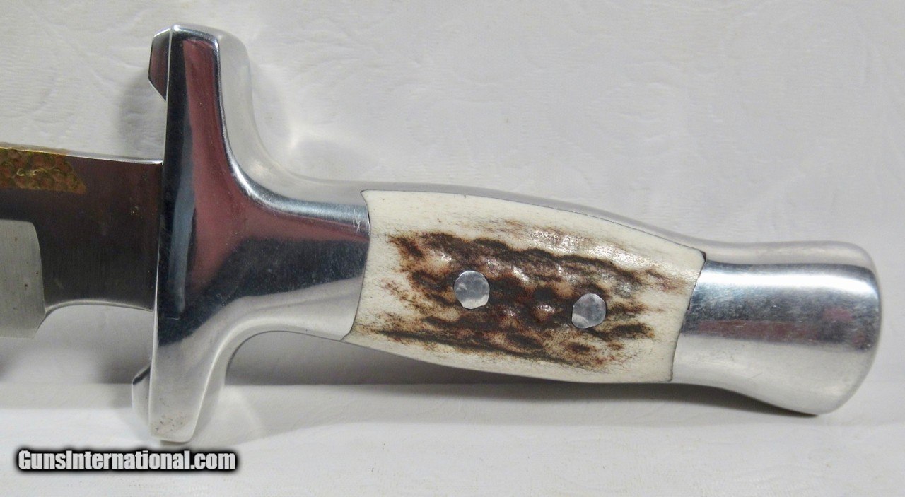 Description: Clip Point Bowie by Ruana or Bonner Montana; 6 ½” Blade; 11” LOA with Sheath; Never Sharpened; These were popular during Vietnam Era, but I don’t know when this one was made; PERSONAL PROPERTY of Harold Wieser; Price: $675 + $30 S&H; Price includes insured shipping; return policy: three days inspection from the date the item is received; full refund of shipping both ways ONLY IF THE ITEM IS MISREPRESENTED. SOLD |