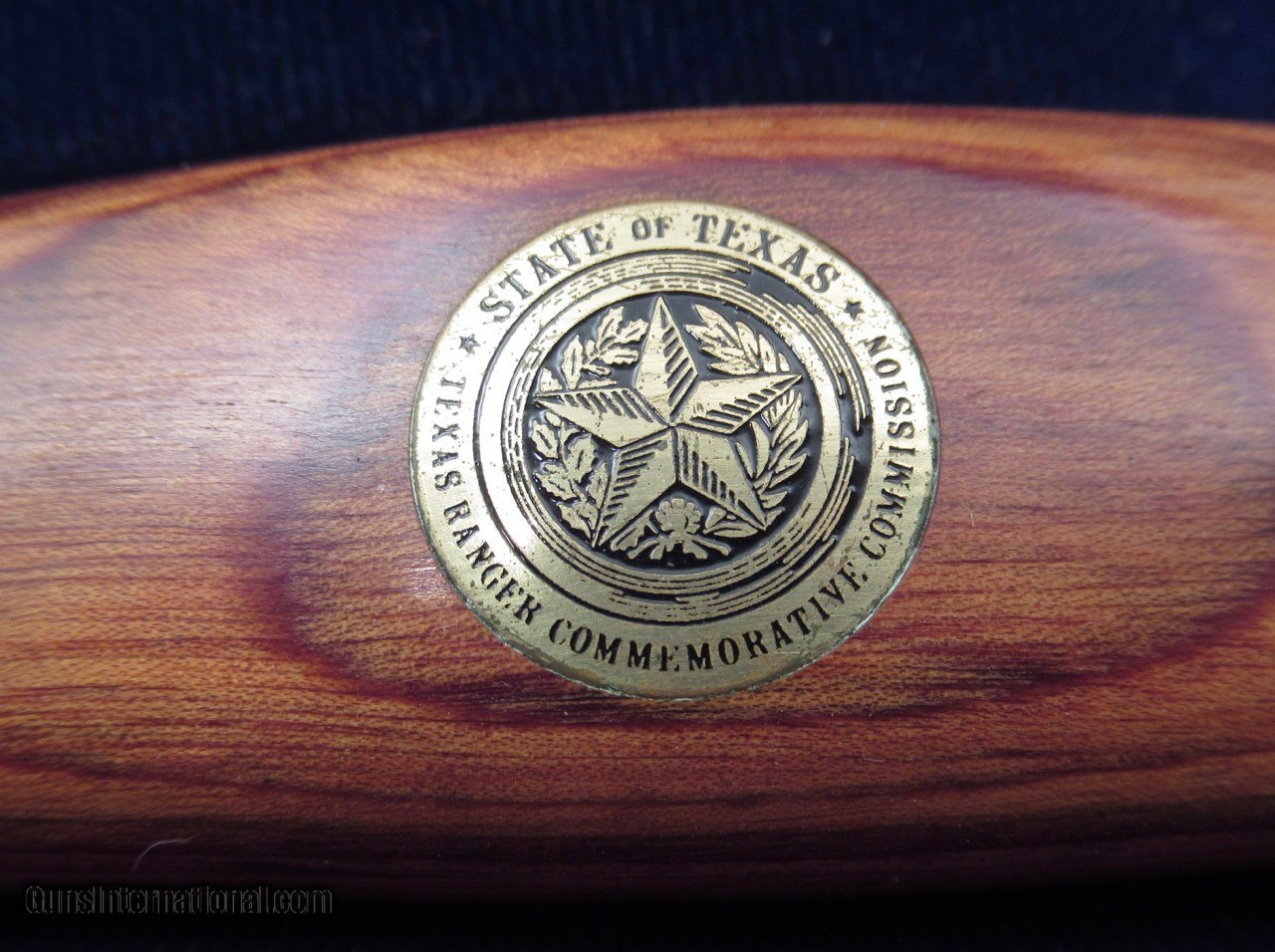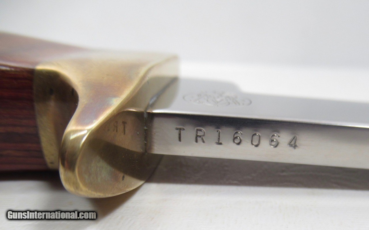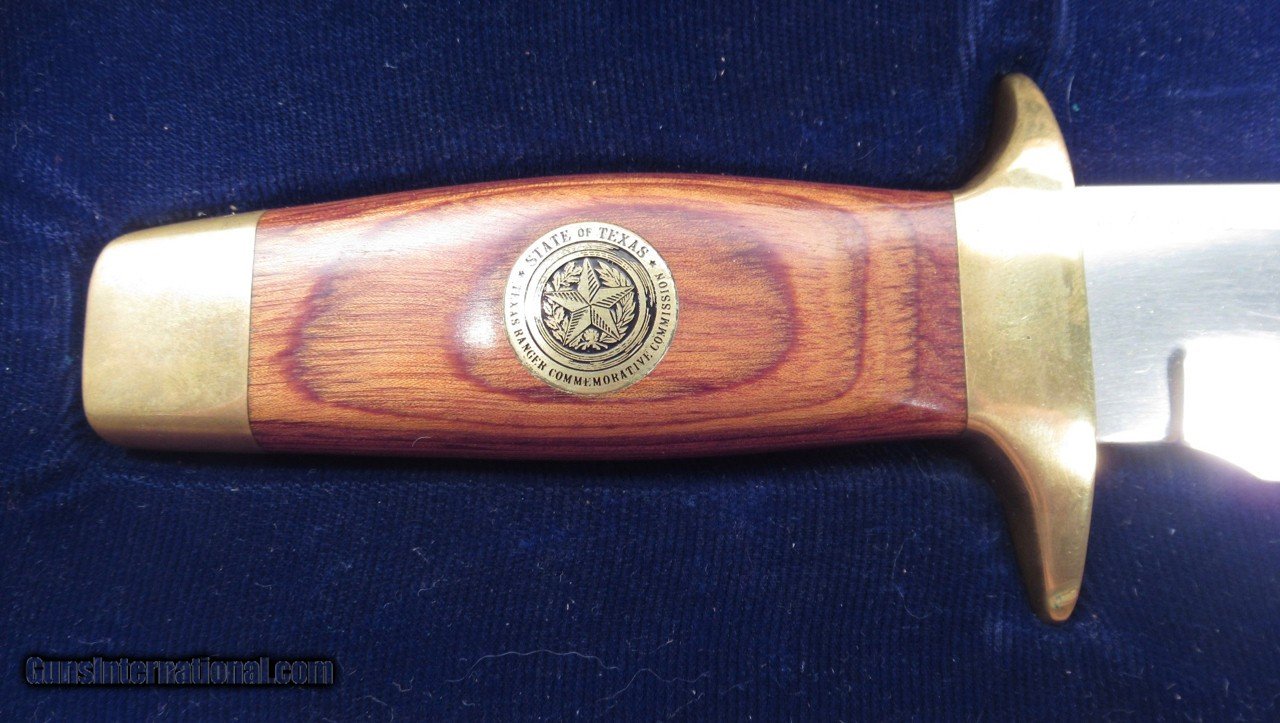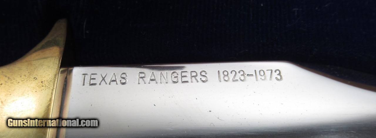 Description: Texas Ranger 1873/1973 Bowie Knife; Made by Smith & Wesson; Serial No. TR16064; 5-7/8” Clip Point Blade; 10-3/8” L.O.A.; Original Smith & Wesson Display Case & Sheath; Knife and Sheath in Perfect Condition; Some wear on Display Box; See All Photos for Condition; No Texts; Call (254)541-5765 or Email Only (collectingtexashotmail); PERSONAL PROPERTY of Harold Wieser; Price: $375 + $45 S&H Via USPS PRIORITY MAIL; Payment Address: Harold Wieser - 1466 U.S. Hwy 77 - Rosebud, TX 76570; SEND PAYMENTS VIA USPS PRIORITY MAIL; SOLD |