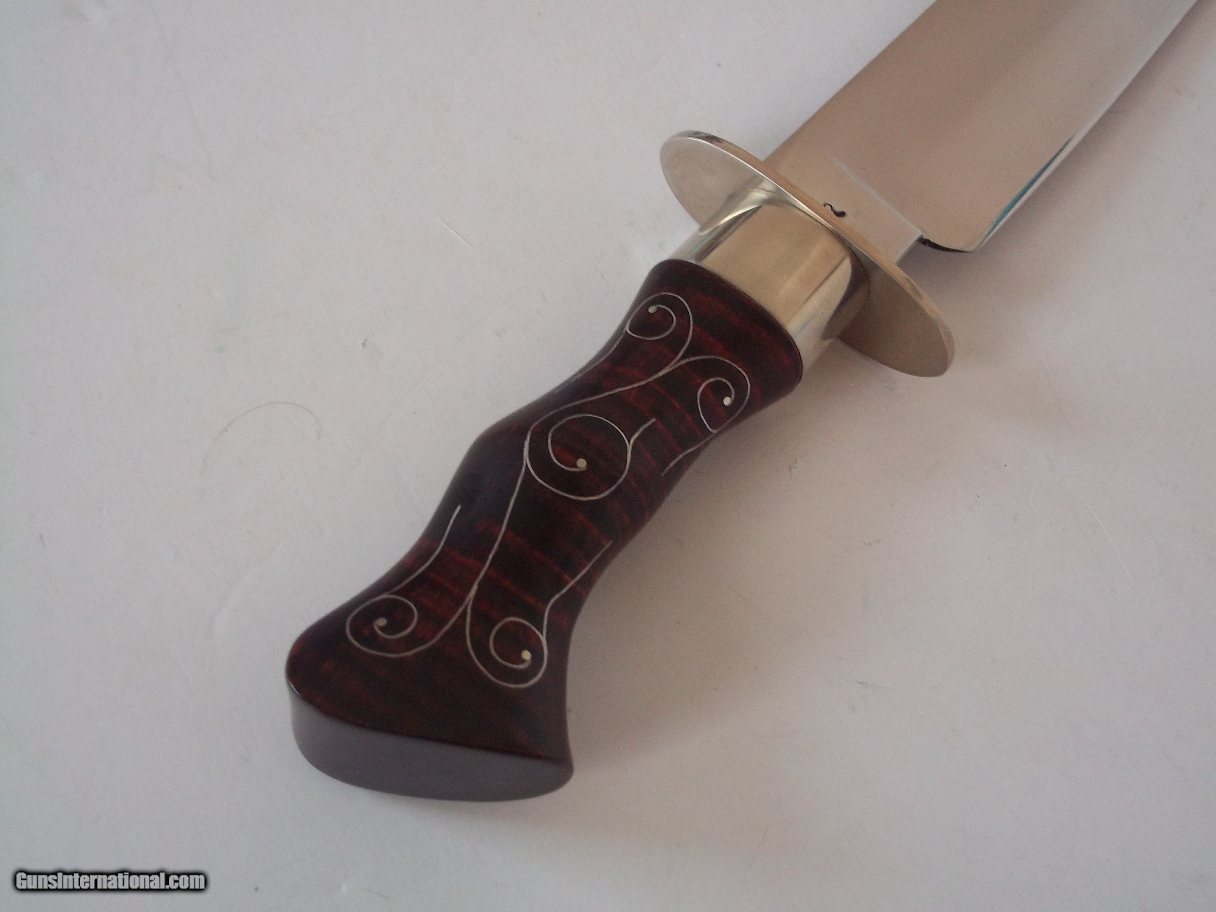 William R. "Bill" Hurt Bowie Curly Maple Handle German Silver Guard Wood-lined Scabbard Covered with African Kudu Skin Knife # 168/251