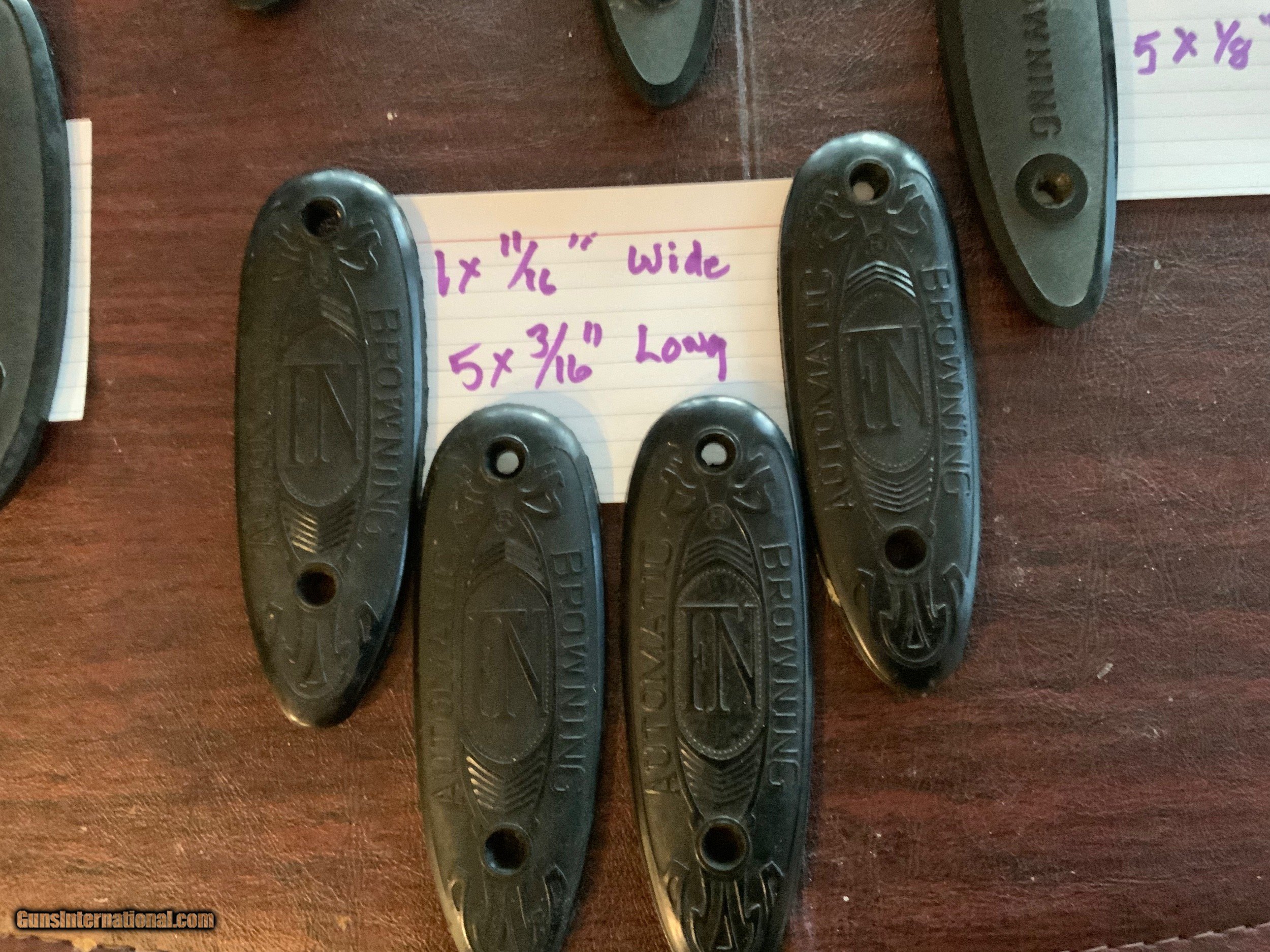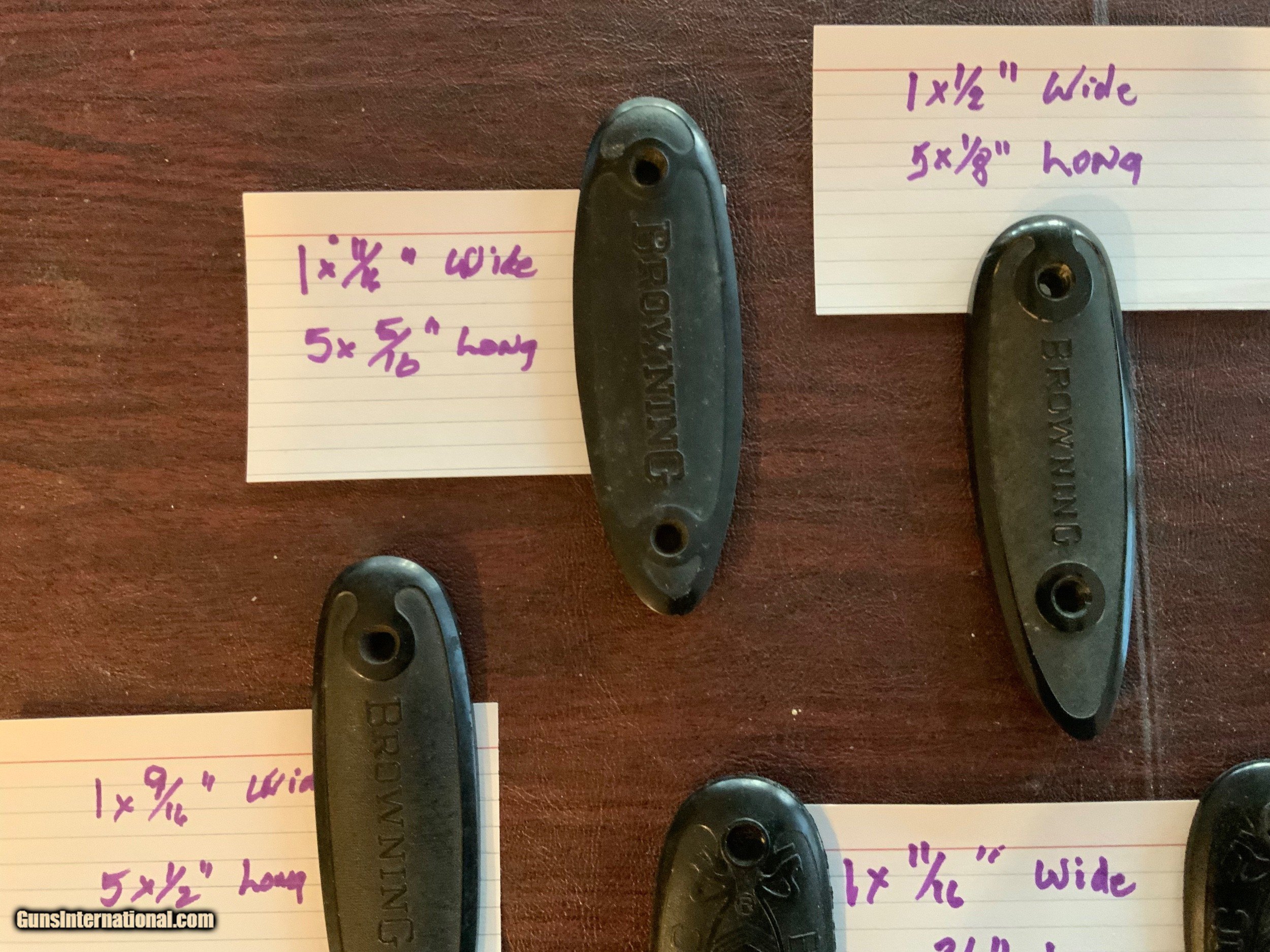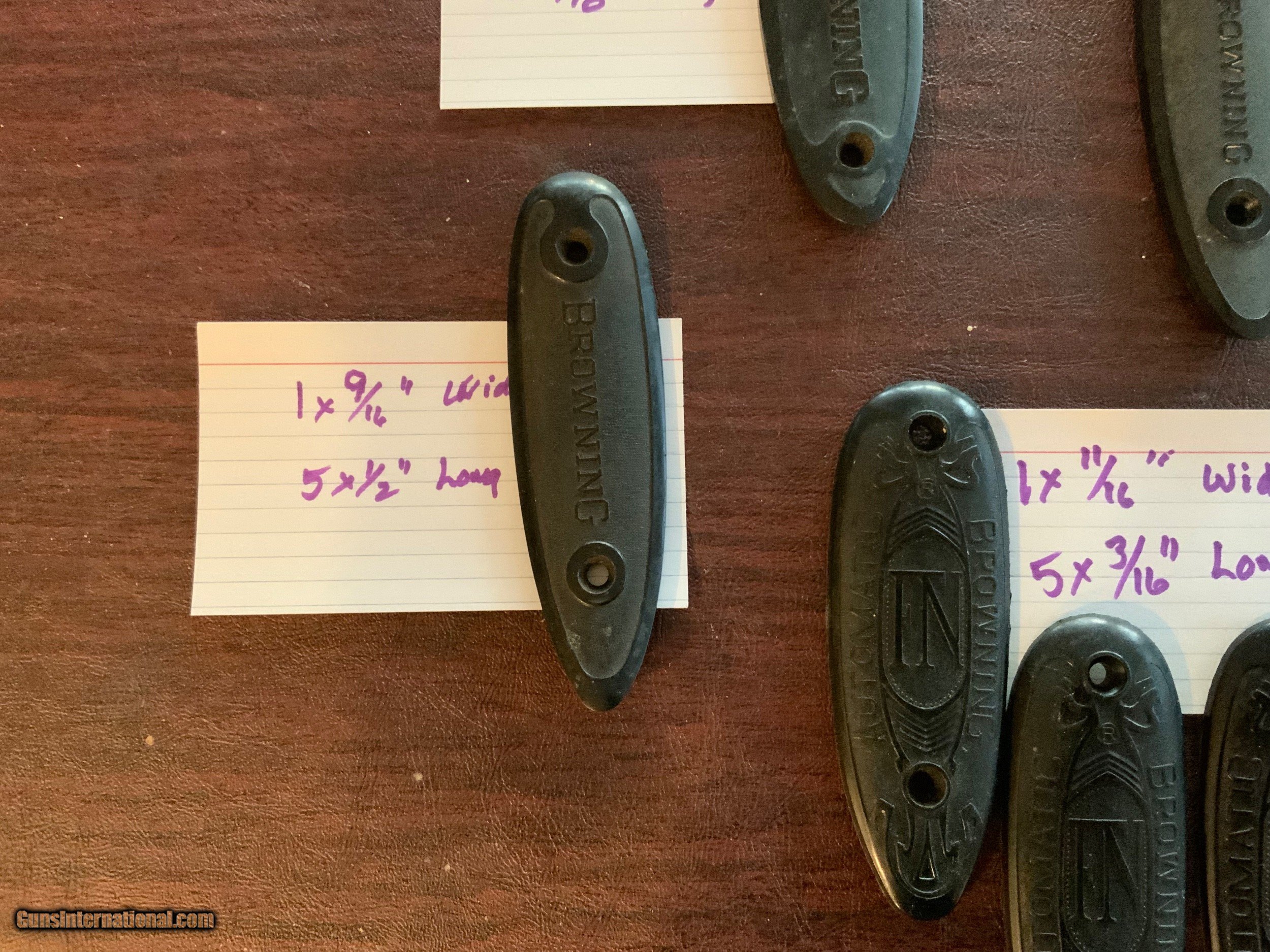 Description: SALE PENDING Browsing Collectors and Gunsmiths Browning A-5 and Superposed buttplates. Some may also fit Browing Rifles. There are nine (9) and each is described with measurements done as accurate as I can. Priced for a quick sale at $100.00 plus $10.00 for shipping. 703-403-8582 SOLD Rifle Caliber: .30-06 Springfield Shotgun Gauge: 12 Gauge |