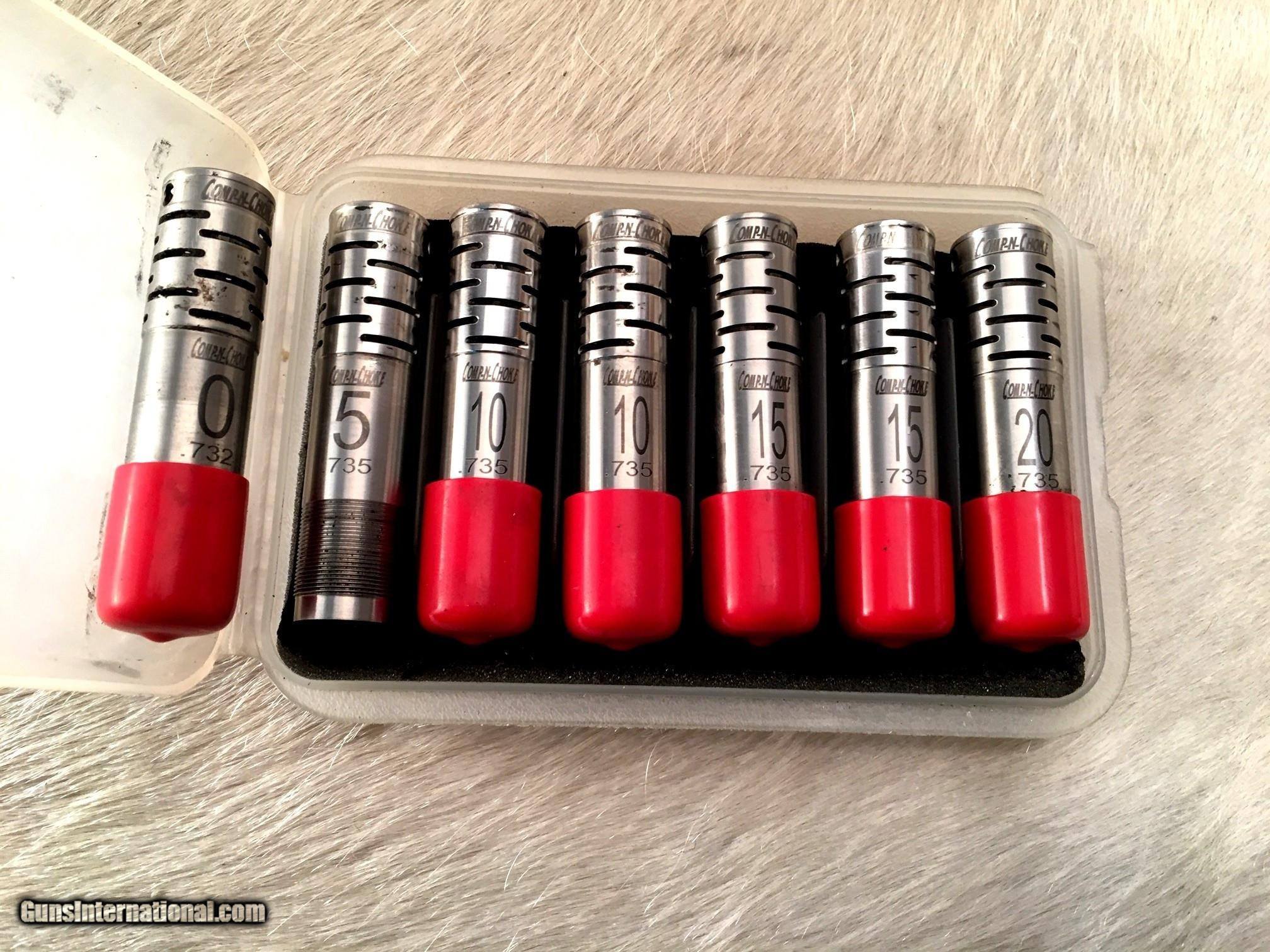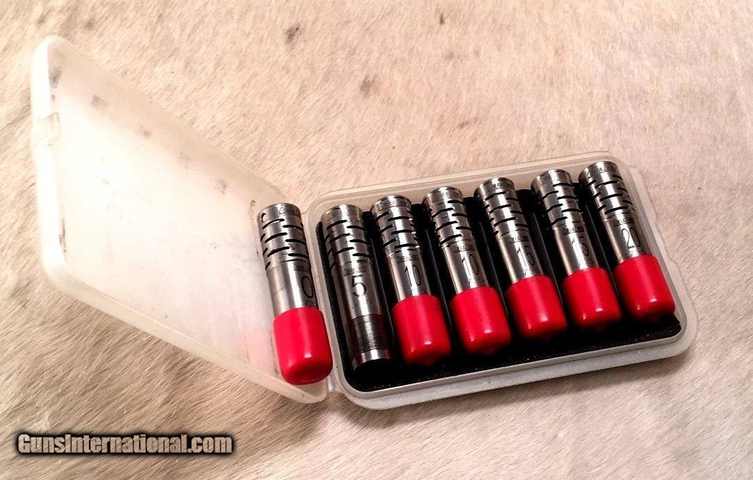 Description: FULL SET EXACTLY AS PICTURED FOR 12GA BLASER F3 OR F16 BARRELS- FROM COMP-N-CHOKE $55 EACH OR $385 + SHIP+CASE. HERE IS YOUR CHANCE TO GET A FULL SET OF THE VERY BEST CHOKES AT A HUGE SAVINGS-PRICE ++INCLUDES SHIPPING++ PAYMENT BY PAYPAL CHECK OR MONEY ORDER PLEASE I AM AN AUTHORIZED BLASER MASTER DEALER Description Extended choke with slot-ported design for recoil reduction. Conical/parallel internal configuration. Easy to install and remove with your fingers. No special wrench or tool required. Fits 12g shotgun barrels with Blaser style threads. Specifications