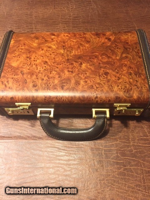 Description: Pristine cleaning case for top tier Beretta Shotgun. Cleaning impliments never used. parts as follows: 3 piece African Mesquite cleaning rod 3 Custiom screw drivers same wood as cleaning rods Oil well and cloth 3 cleaning attatchments for rod 2 snap caps SOLD |