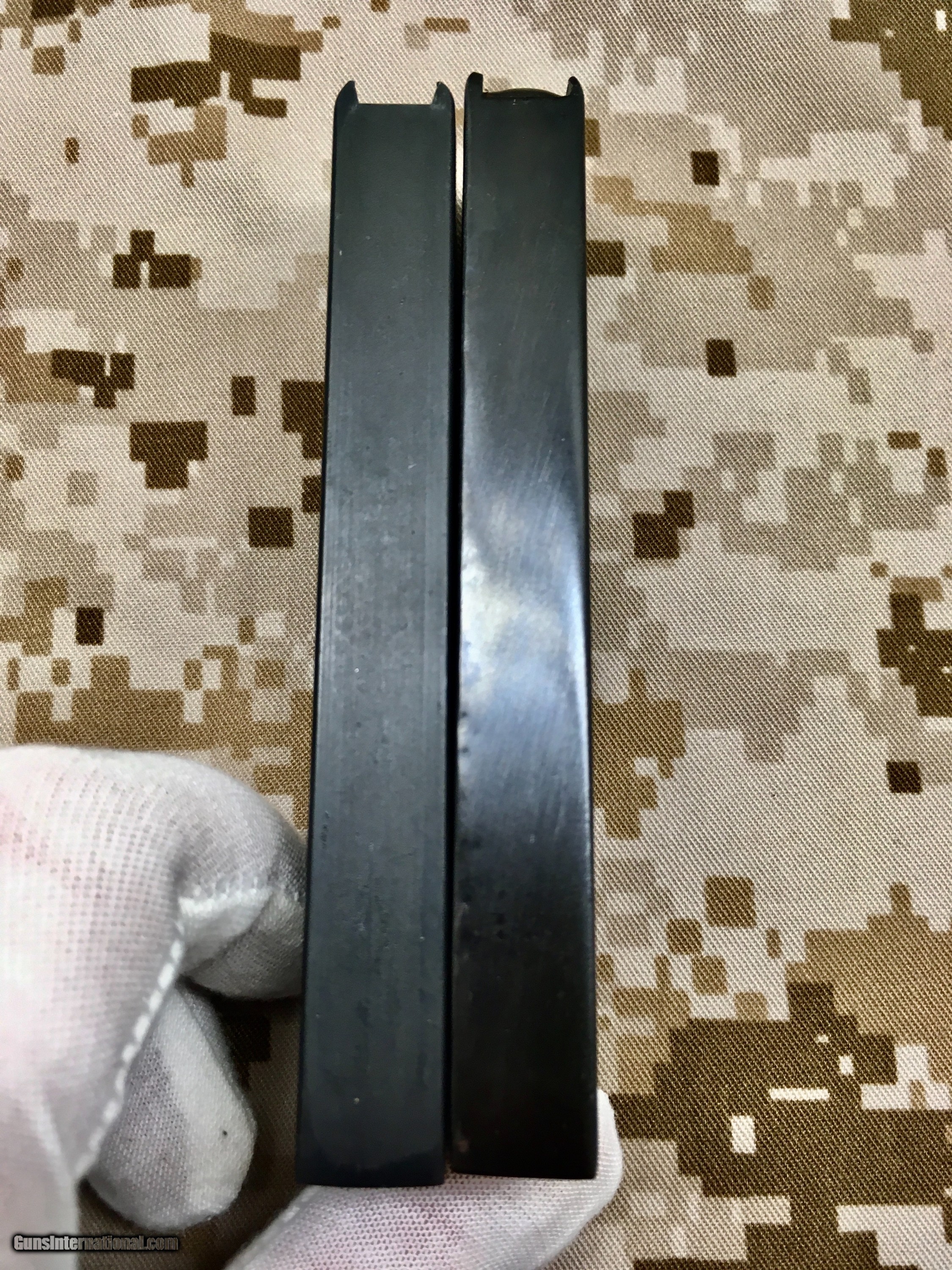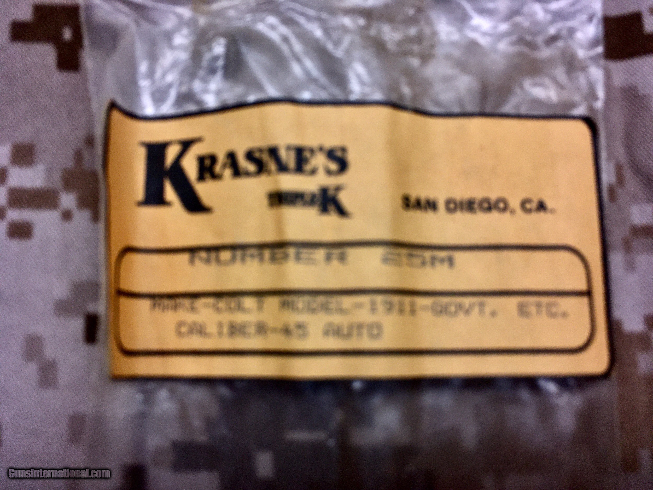 Description: For your consideration are two “new old stock” M1911 magazines. One is a USGI magazine produced sometime in the 1980s & the other is a Krasner's Triple K from the same era. These have never been used or even inserted into a M1911 & the condition is outstanding. Please do not hesitate to contact with questions or requests for additional pictures. Payment by PayPal gift is preferred bit I will also accept a personal check or USPS money order. Shipping is $7 for USPS First Class or $12 for USPS Small Priority Mail flat rate box. Thanks for looking. SOLD |
