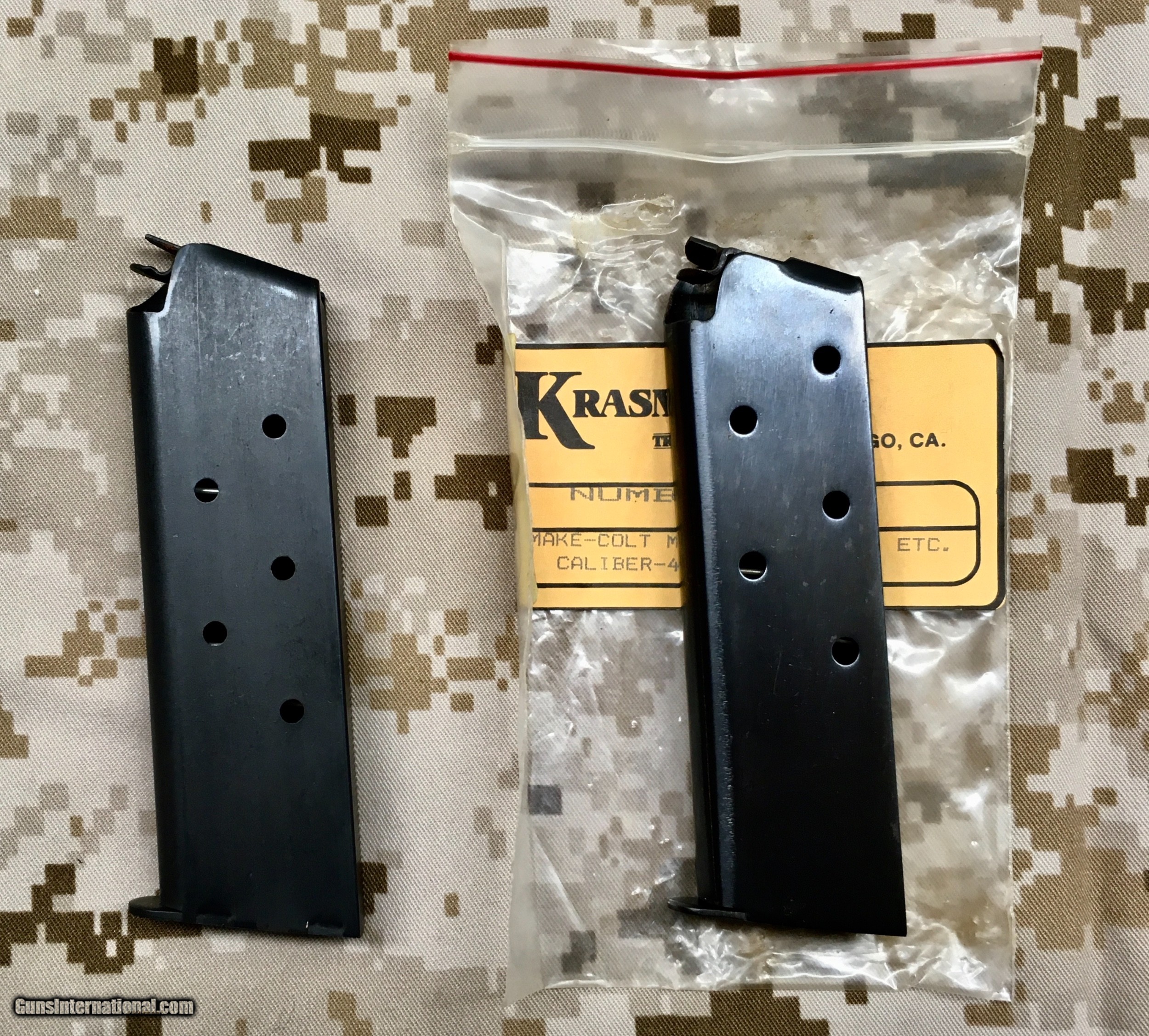Colt M1911 Magazines - 1 x USGI - 1 x Krasner's Triple K - New Old Stock - Excellent Condition