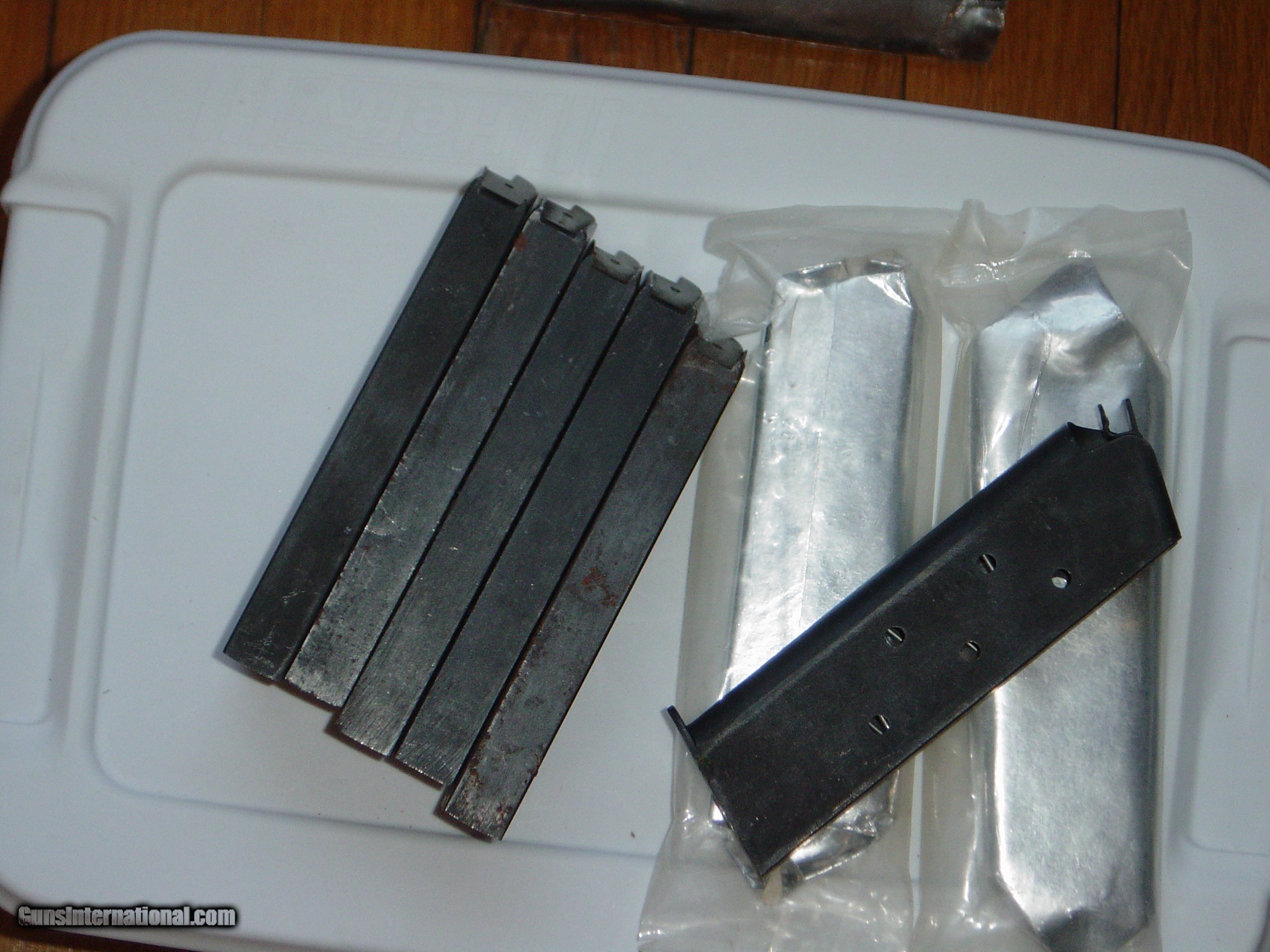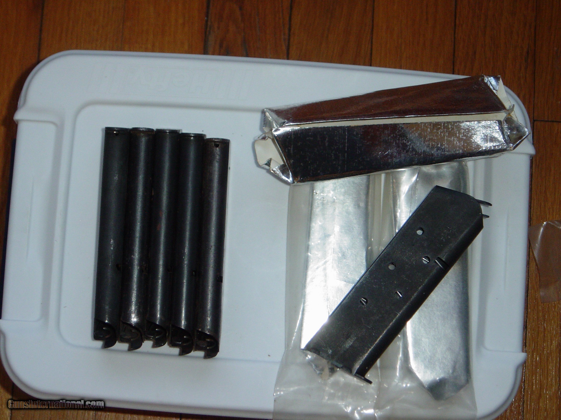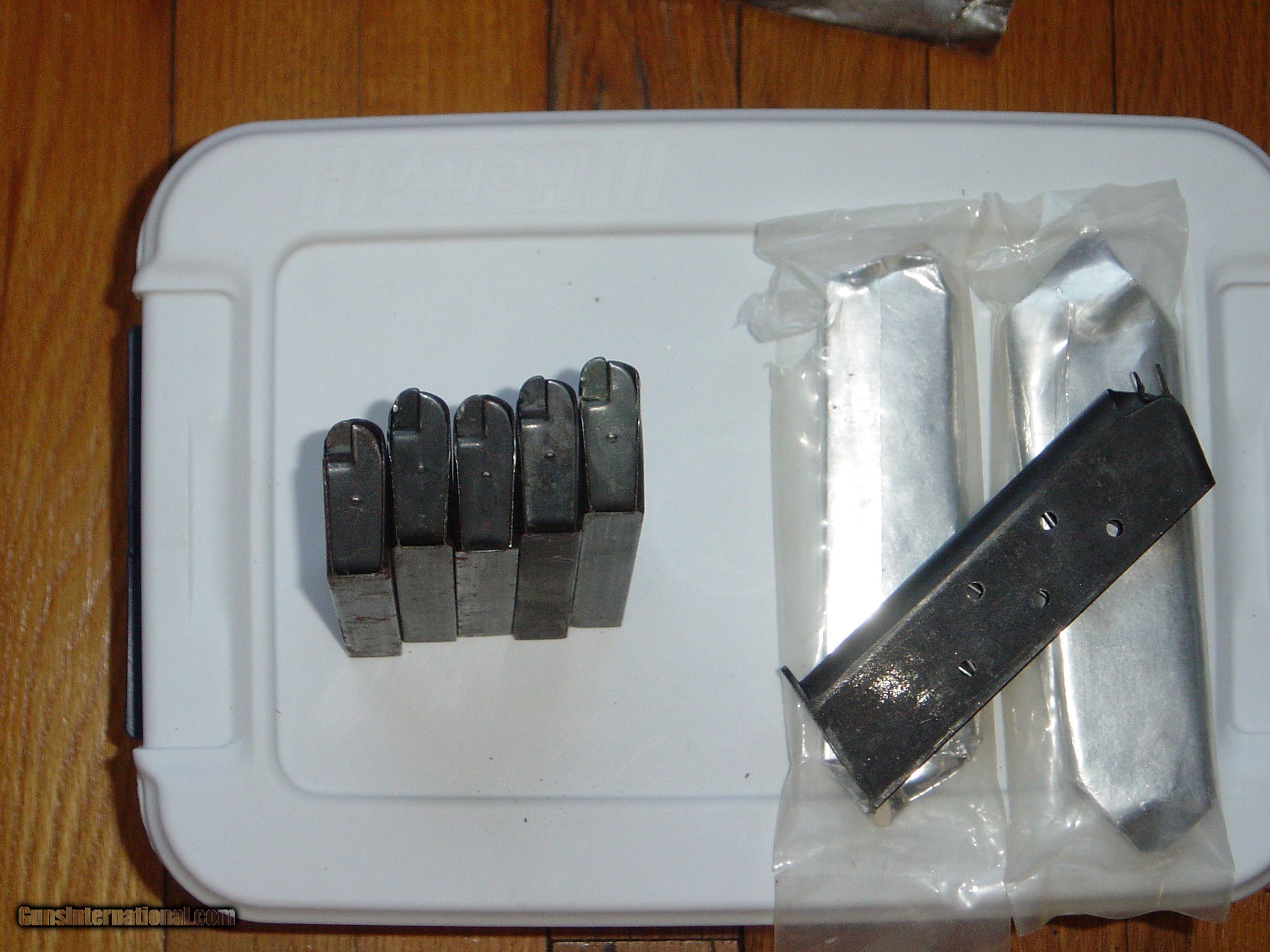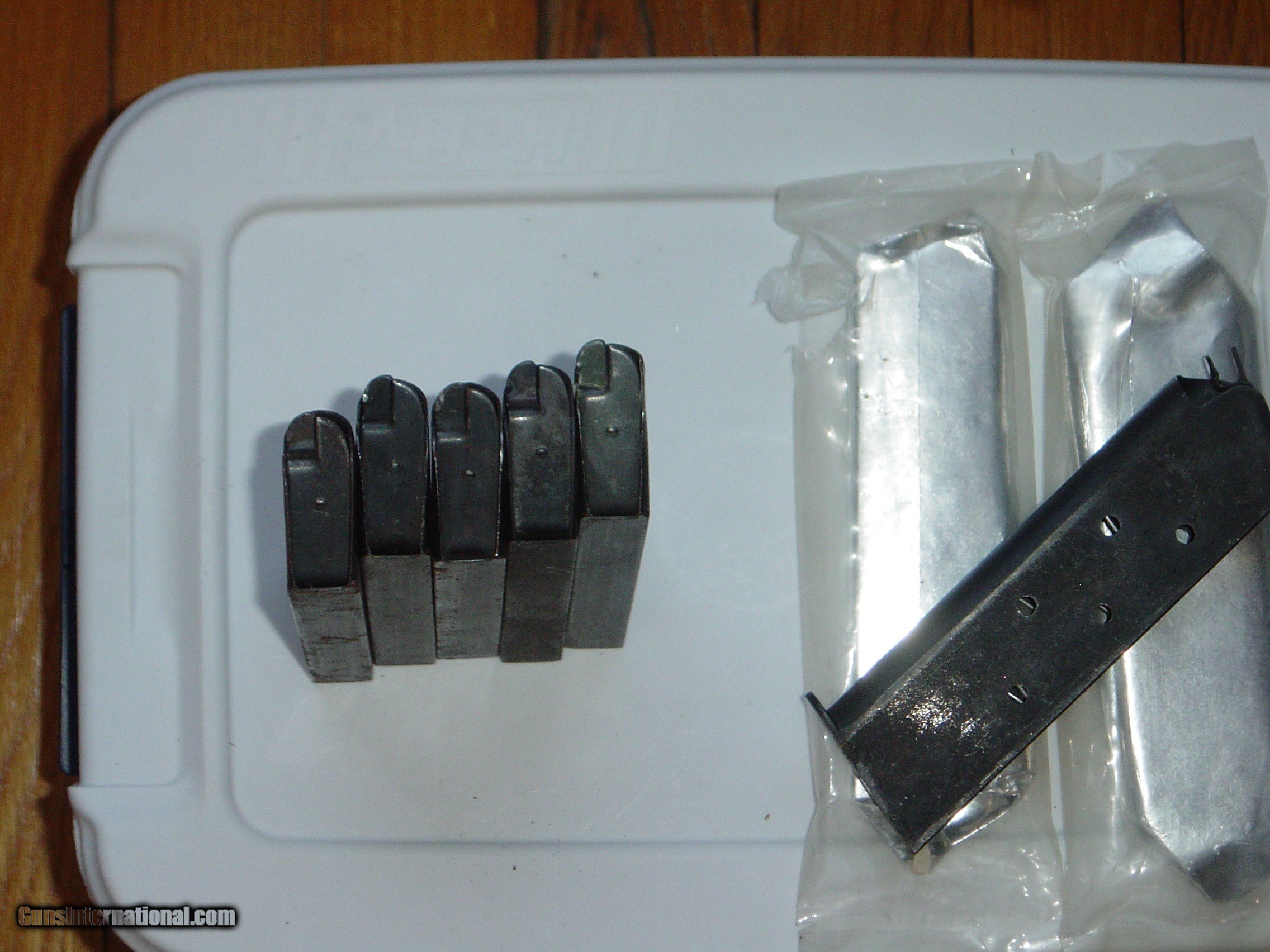 Description: This sale if for M1911/M1911A1 Magazines in New and Used condition. They are priced as follows: New in the Wrapper Mags are: $45.00 each Clean Used Magazines: $30.00 each ALL OF THESE ARE USGI M1911A1 Magazines “NOT REPRODUCTION” with part numbers stamped on the base. One of the new mags was taking out of the plastic sleeve to make pictures of condition. SOLD Handgun Caliber: .45 ACP (.45 Auto) |