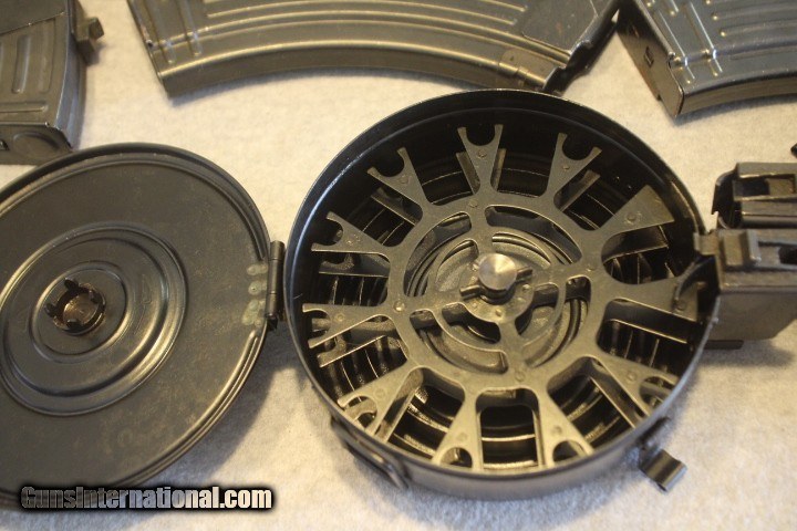 Description: Lot consists of (2) 75 round drums both in excellent shape, fit and feed. (4) 30 round an (2) hunting mags 5 rounds. All are Blue steel and have been used gently, never taken out in the rain and stored correctly. Blue is good throughout and springs are strong. I will view offers on this. GET THESE WHILE YOU CAN BEFORE THEY PASS HR5717 SOLD Rifle Caliber: 7.62x39mm |