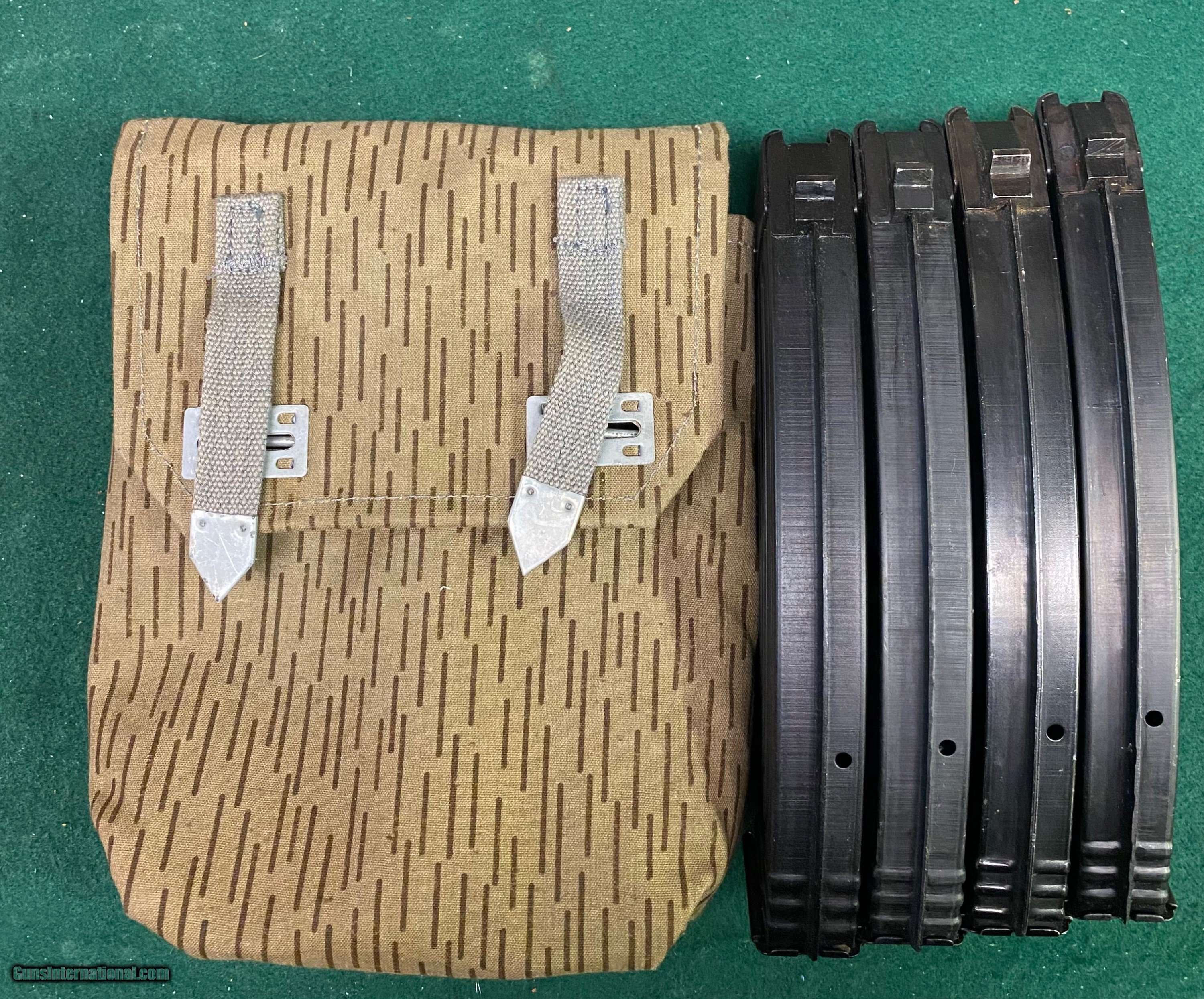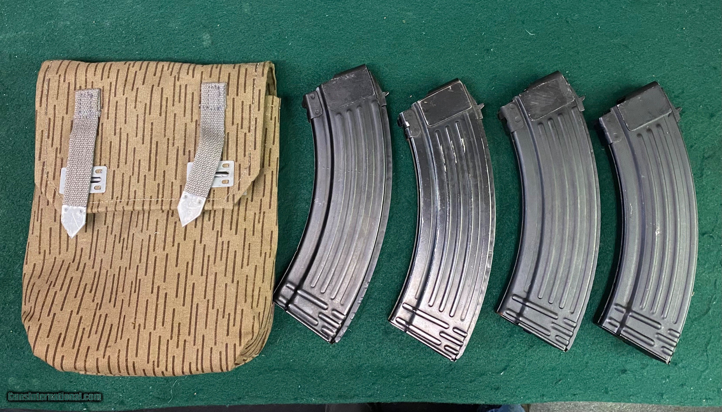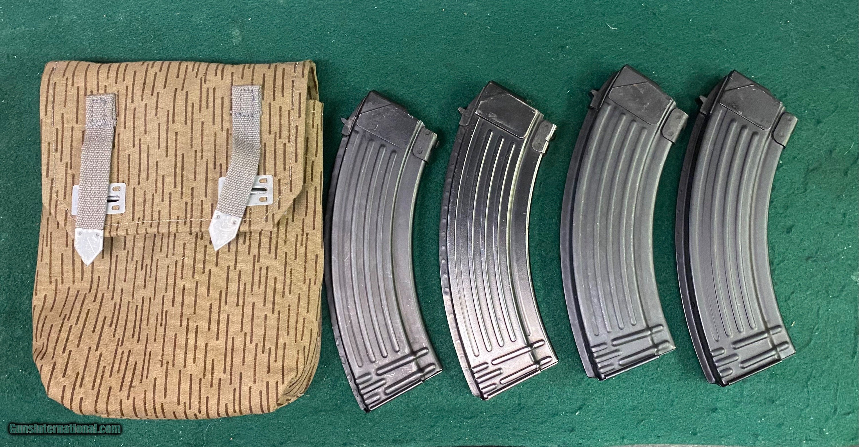 Description: Here on consignment from a senior gentleman who has sold off his AK collection. Four 30 round AK-47 magazines and a carry bag with belt loops on the back. One of the magazines has numbers electro stenciled on it. These appear to be the old surplus East German mags and pouch. These have the raised spine on the back of the mags & are in very good condition. Please see pictures for more details $80 plus $20 for shipping via USPS medium size priority box. We accept major credit cards with a 4% fee. Personal checks are also welcome (no fee added) however, we do not ship the item until your check clears our bank. Our business hours are Tuesday through Saturday, 9 AM to 5 PM. Closed on Sundays and Mondays as well as some federal holidays. We are a brick and mortar store in business at the same location for more than two decades. If you're ever in the Waynesboro, PA. area, stop on by and browse our extensive selection of vintage and modern firearms plus accessories at George Herold's Gun Shoppe. We look forward to seeing you! SOLD Rifle Caliber: 7.62x39mm |