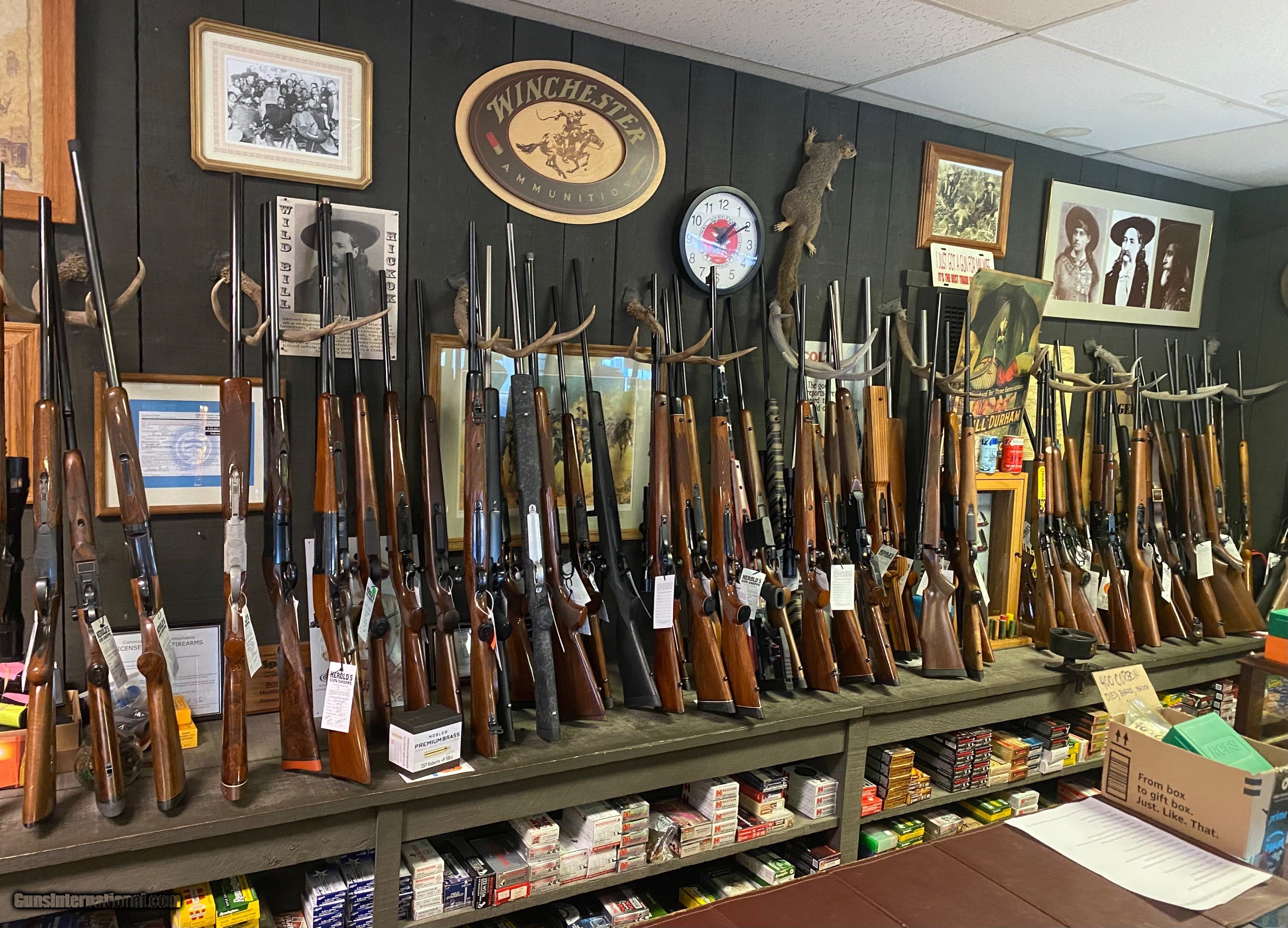 About Us: We are an “Old School” gun store with a vintage Western style. We do carry various modern pistols, revolvers and long guns. However, our specialty is vintage firearms including bolt action, lever action and semi automatic rifles. For example, we usually have at least two or three M-1 Garand rifles at any given moment. Other times we may have one or two Springfield 1903 rifles. Also in stock are a few dozen lever action rifles available in different calibers & barrel lengths. Lastly, we have a wide variety of Colt Single Action Army revolvers in different calibers and barrel lengths. (NOTE: we try & remove items from Guns International ASAP if they are sold through our retail location, but there may be a slight delay in doing so)