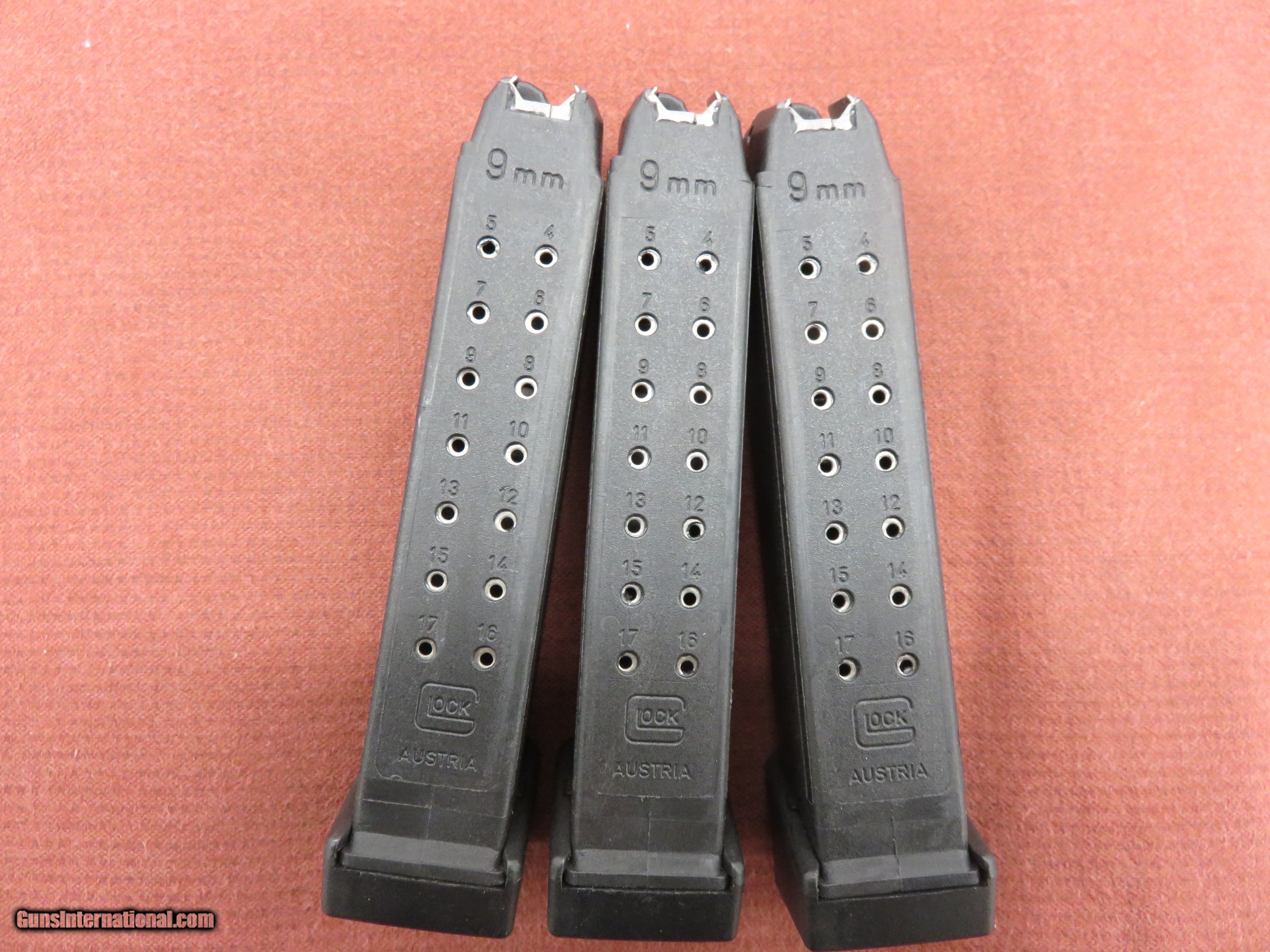 Description: 3 Glock 17 Gen 4, 17 round magazines, 9mm, extended grip, used but like new, NOT NY compliant. SOLD |