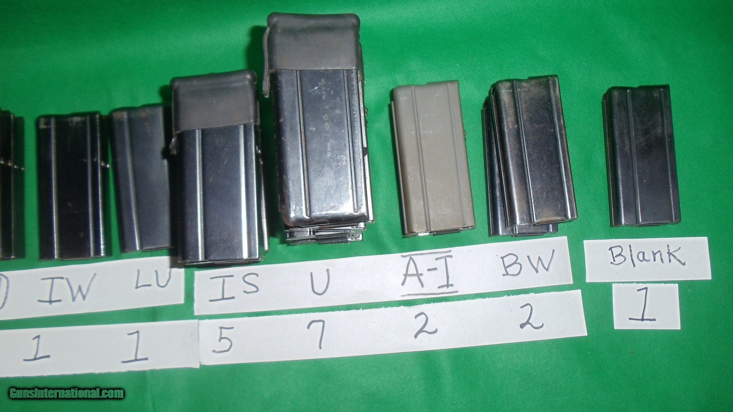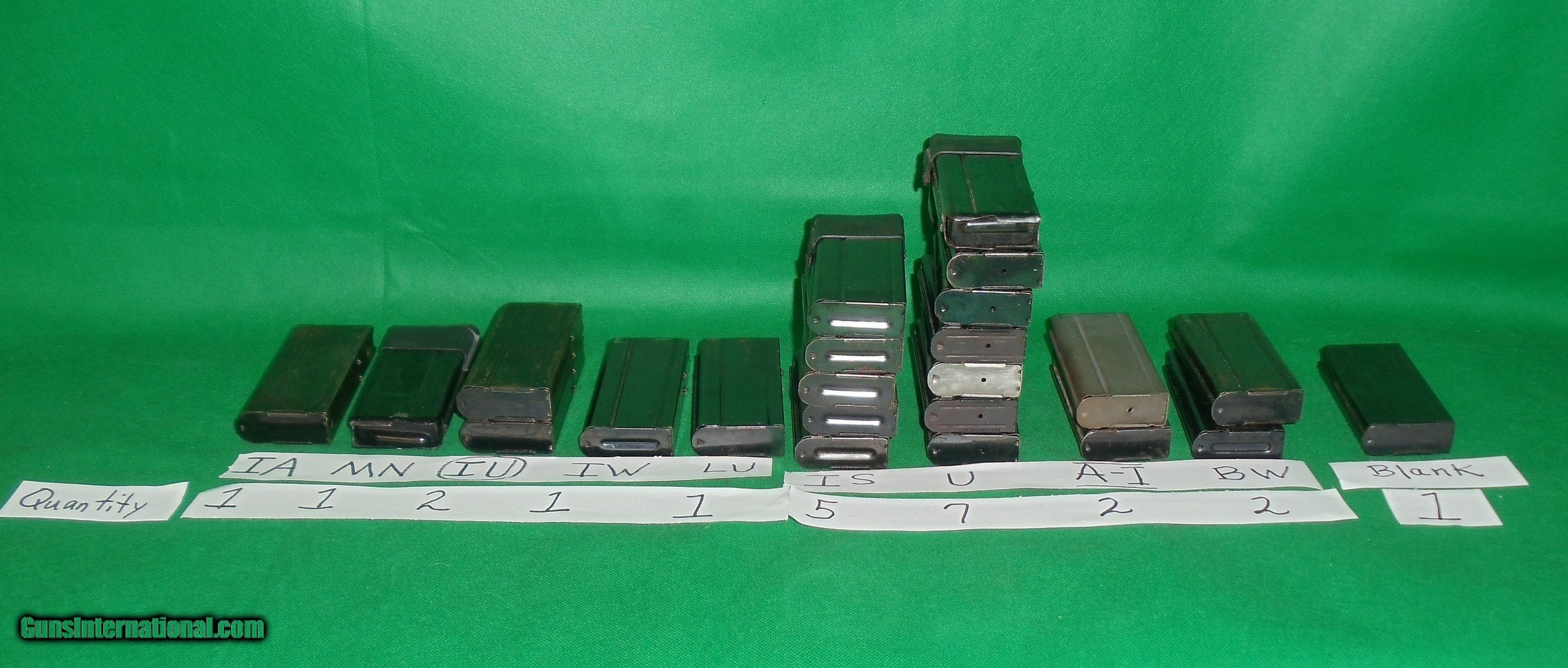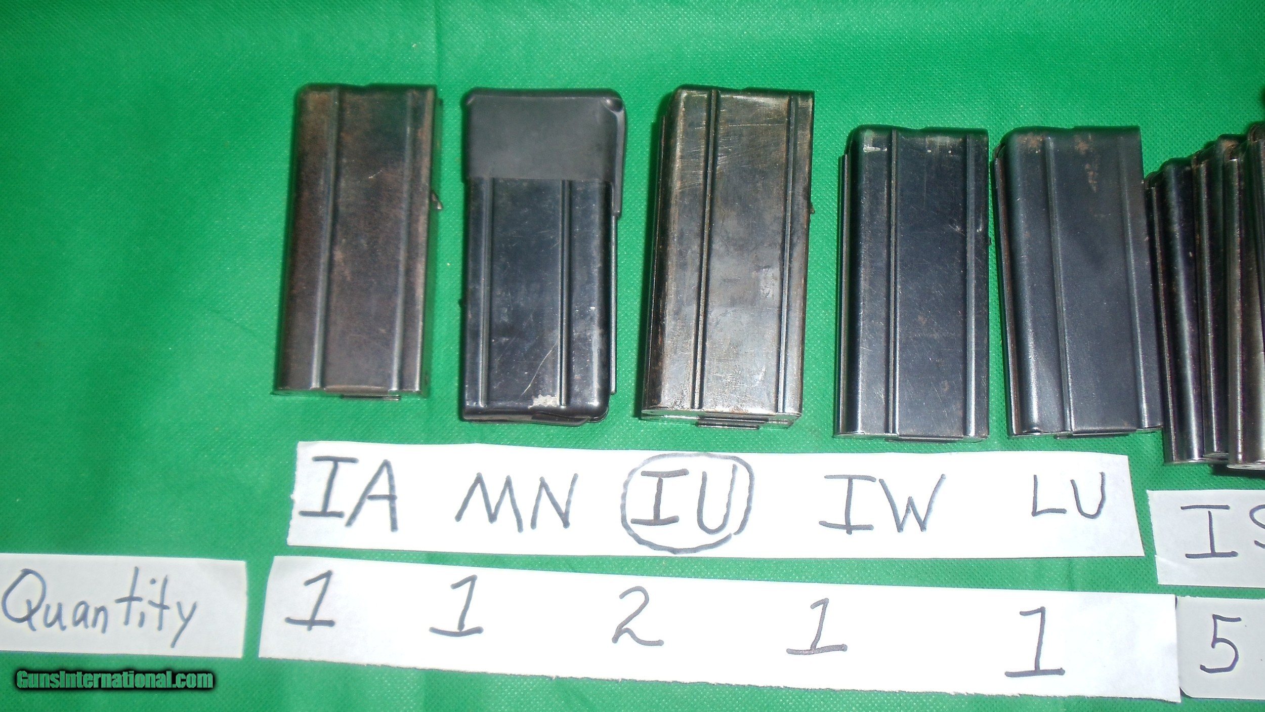 Description: See pictures for code listing. As near as I can tell they are all usable. Some may have a small spot or 2 of rust. They have been in storage awhile & need the dust cleaned off them. 4 come with dust covers. $12 shipping. Only sold in states where legal to own 15 rd magazines SOLD |