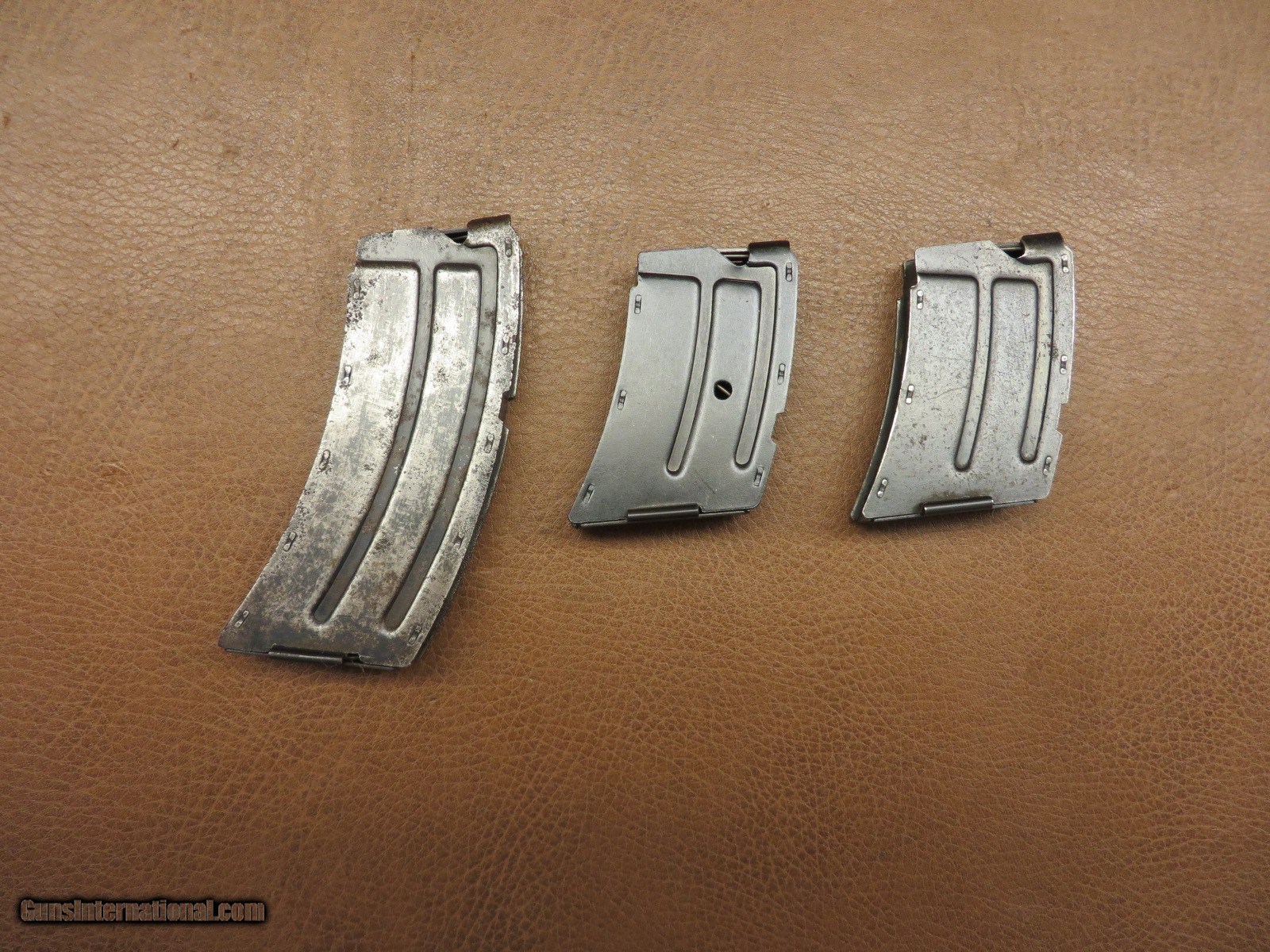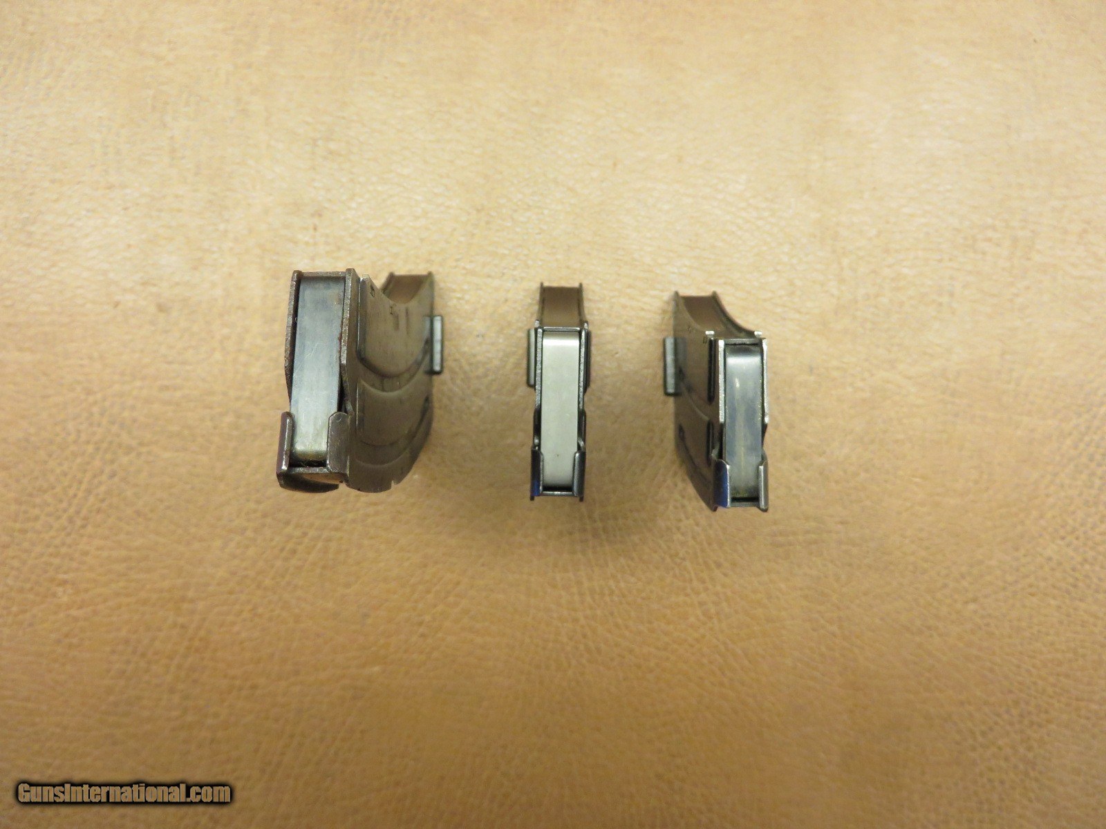 Description: Lot of 3 mags for $89.00. Factory five round in 90%+ condition. Aftermarket 5 round that is new. Factory ten round about 40% finish with some pitting. All metal. SOLD |