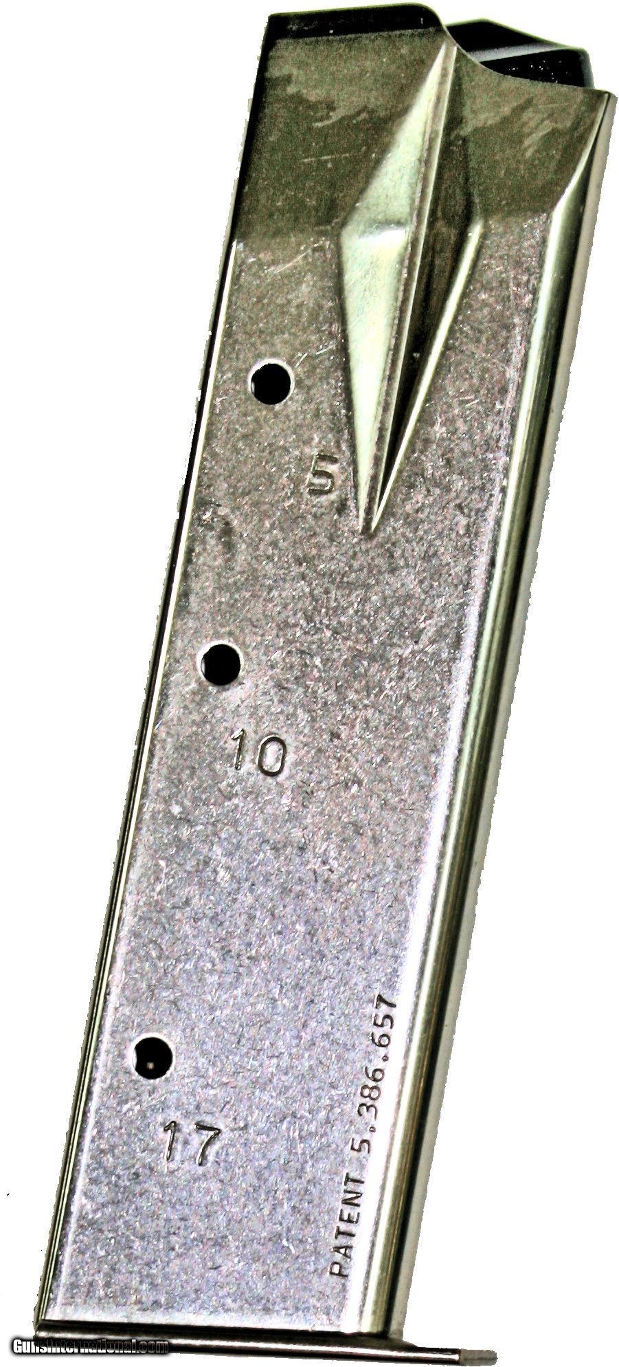 Description: RUGER MAGAZINES BY MEC-GAR: P85/89/93/94/95/PC9 Mec-Gar Magazine Closeout Sale! Factory New in Box Magazines Priced at Distributor Cost. Many States Have Banned High Cap Mags. More Legislation May Be Coming. High Cap Mags Defined Differently By State (Usually 10 Rounds or More) Are Banned in the Following: California, Colorado, Connecticut (Must use FFL), District of Columbia (DC), Hawaii, Maryland, Massachusetts, New Jersey & New York. Get Them While You Can, Cheap! Mec-Gar is One of the Best Mags Made. They Are OEM to Ruger, Sig & Others. Only 6 of These Left. 9mm, Increased 17 Round High Capacity in a Flush Fit Design Features US Patent# 5,386,657 Which Provides Two Additional Rounds Without Increasing Magazine Dimensions Carbon Steel Tube Heat-Treated For Strength Higher Tensile Music Wire Spring Polymer Follower Removable Steel Buttplate NICKEL Shipping in U.S.: $7.00. No International Sales. Please email for questions or payment options. Paypal Cannot Be Used For Magazine Purchases. SOLD |