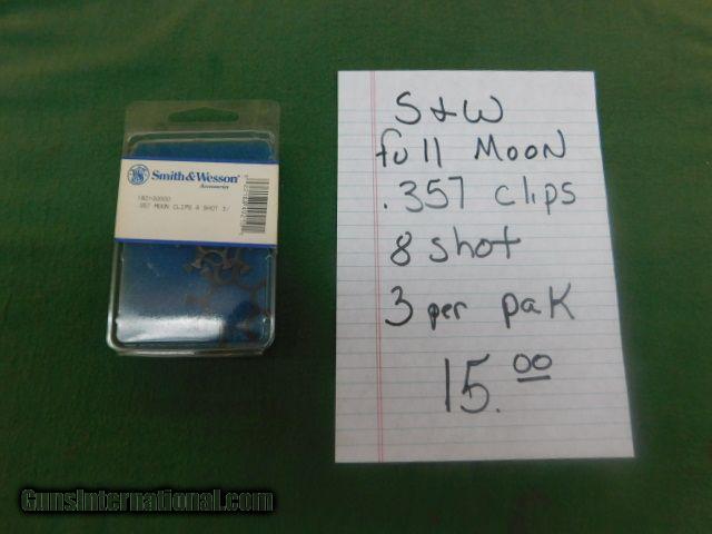 Description: Sealed factory packaged S&W 8 round full moon clips in 357. Three clips per package SOLD |