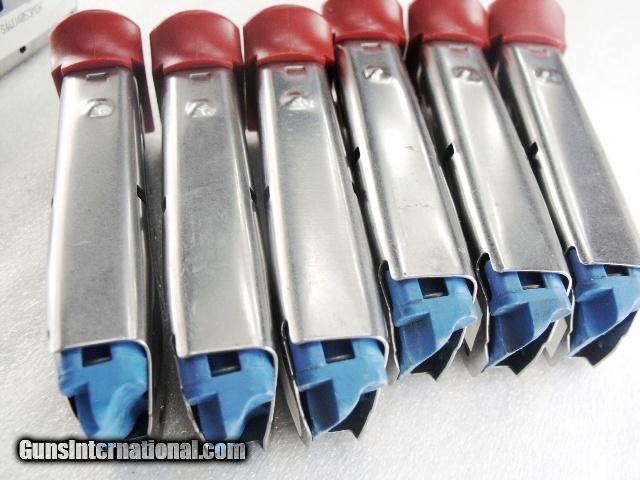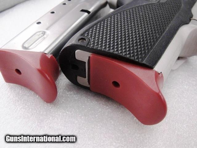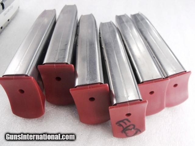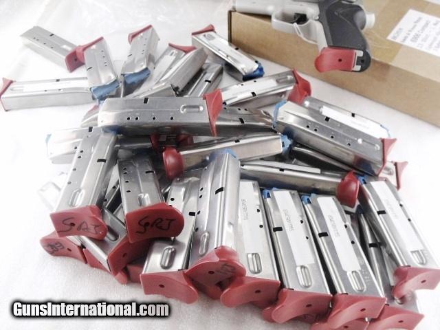 Description: No sales outside the US. NO NYC. This listing is for ONE magazine; winning buyer, however, may take any number of extras we have on hand at the same per-mag price and no additional shipping charges. Photo shows representatives of a specialty Smith & Wesson magazine for a specialty, briefly produced pistol, the 4013 TSW Compacts. These .40 caliber pistols had the same size grip frame as the highly popular 6900 series pistols. These magazines are labeled with part number S&WU4053MGR, indicating their trade-in status to Smith & Wesson. Manufacturer is Accu-Guide, Smith & Wesson’s primary subcontractor for metal frame semi-automatics. Construction is stainless steel body, steel spring, blue polymer cartridge follower, and red polymer finger rest type floor plate. The reason these magazines have red floorplates is that some larger departments request that for the benefit of their range and training officers. For any shoppers who might be concerned about the aesthetics of a red floorplate, we have included photos of one on a California Department of Corrections 6906 Grip Frame. As the photos show, it looks every bit as good as red toenails on a beautiful woman. Each magazine holds 9 rounds of .40 S&W caliber ammunition. All of them are in Very Good to Excellent Condition, excellent mechanically. Insertion and ejection scouring is minimal, same way with carbon deposits on the followers. They will fit models 4013TSW and also the 4056TSW. They WILL NOT FIT models 4043TSW, or the 4053TSW, or the standard 4013, because the 4043 is the same as the full size 4000 series, and the standard 4013 is a single-stack pistol with a 4513 size frame. These are .790 wide, so the pistol’s magazine well, or grip frame interior, should accommodate that. Since these magazines are 9 round capacity, so they are legal in all 50 states. Please understand that we nor anyone else guarantees any magazine, new or used, to lock the slide back on the last shot all the time, and that is not a legitimate reason for a return. Replacement pricing, if a person can even find these, is $50 apiece or more. We're offering these, however, the Ones in the photo or their identical mates, each for only $ 29.00. Not for sale to destinations within New York City. Any magazine deliveries into New York City require written permission of the Police Commissioner, so we cannot ship magazines into New York City, per NYC Code 10-131.10. Grips, Magazines, slings, holsters, scopes, mounts, parts & most any small light items, entire accessory orders only $10.00 total shipping no matter how many a person buys. $10.00 for an entire order, Not $10.00 per item or anything of the sort. $20 Flat Fee on magazine orders to Alaska, Hawaii, or Puerto Rico, and gun parts to PR civilians must ship to an FFL. Magazines and any small light non-gun items ride free with ammo orders. We accept checks with no more than 7 days hold. GA Pay, MC, Visa, Discover phone- or fax-in 7 3 1 9 8 9 4 7 2 3 orders, USPS Money Order items shipped ASAP please put your full information, venue number, and what the item is on any messages. Internet phone hours 8:00 – 5:00 CST Mon – Fri. Robertson Trading Post 117 Front Street PO Box 365 Henderson, Tennessee 38340. We buy, sell, and trade. Always have, since 1952. SOLD |