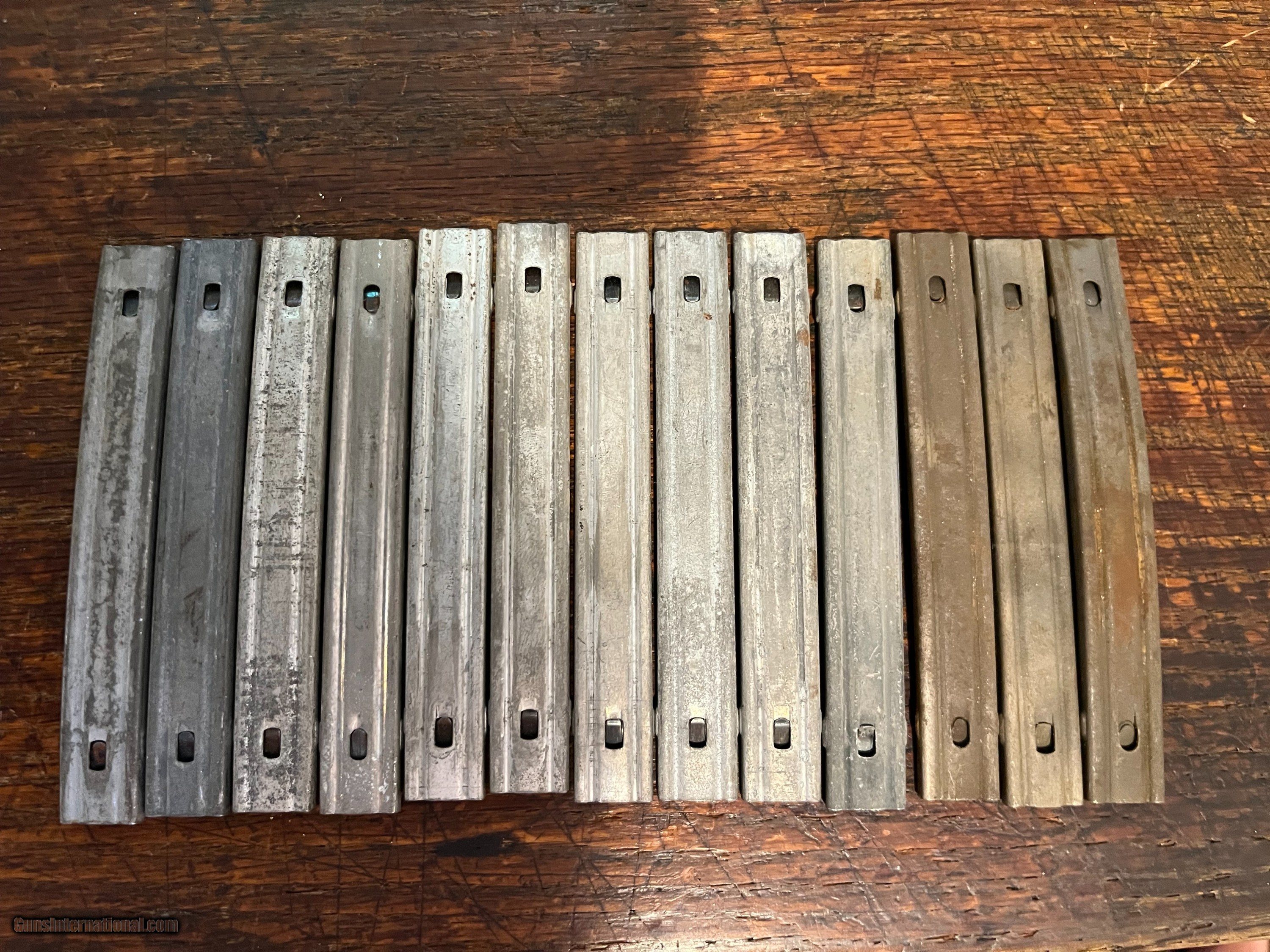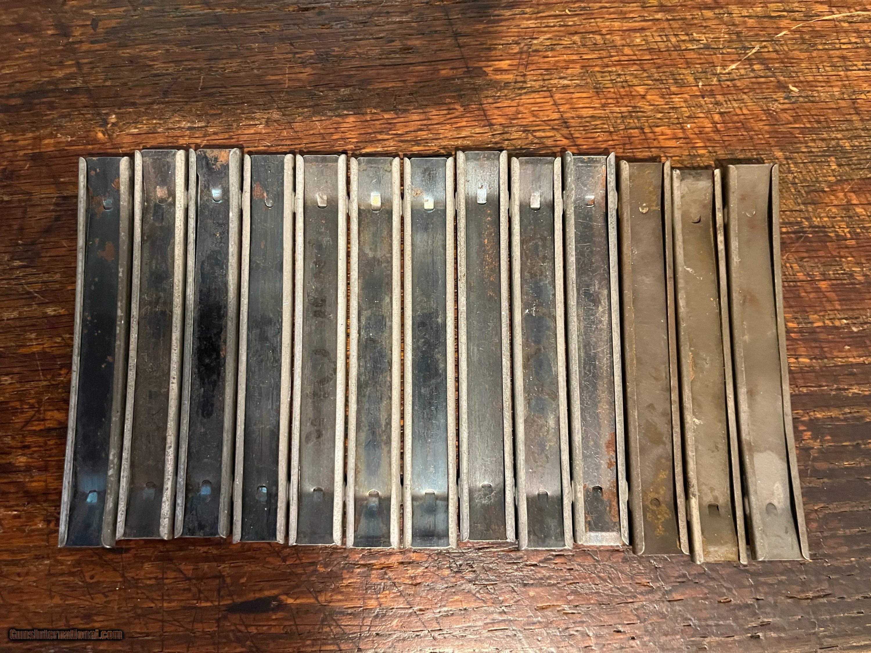 Description: Broomhandle10 round steel stripper clips. 13 pieces. Springs are good. Offer considered SOLD |