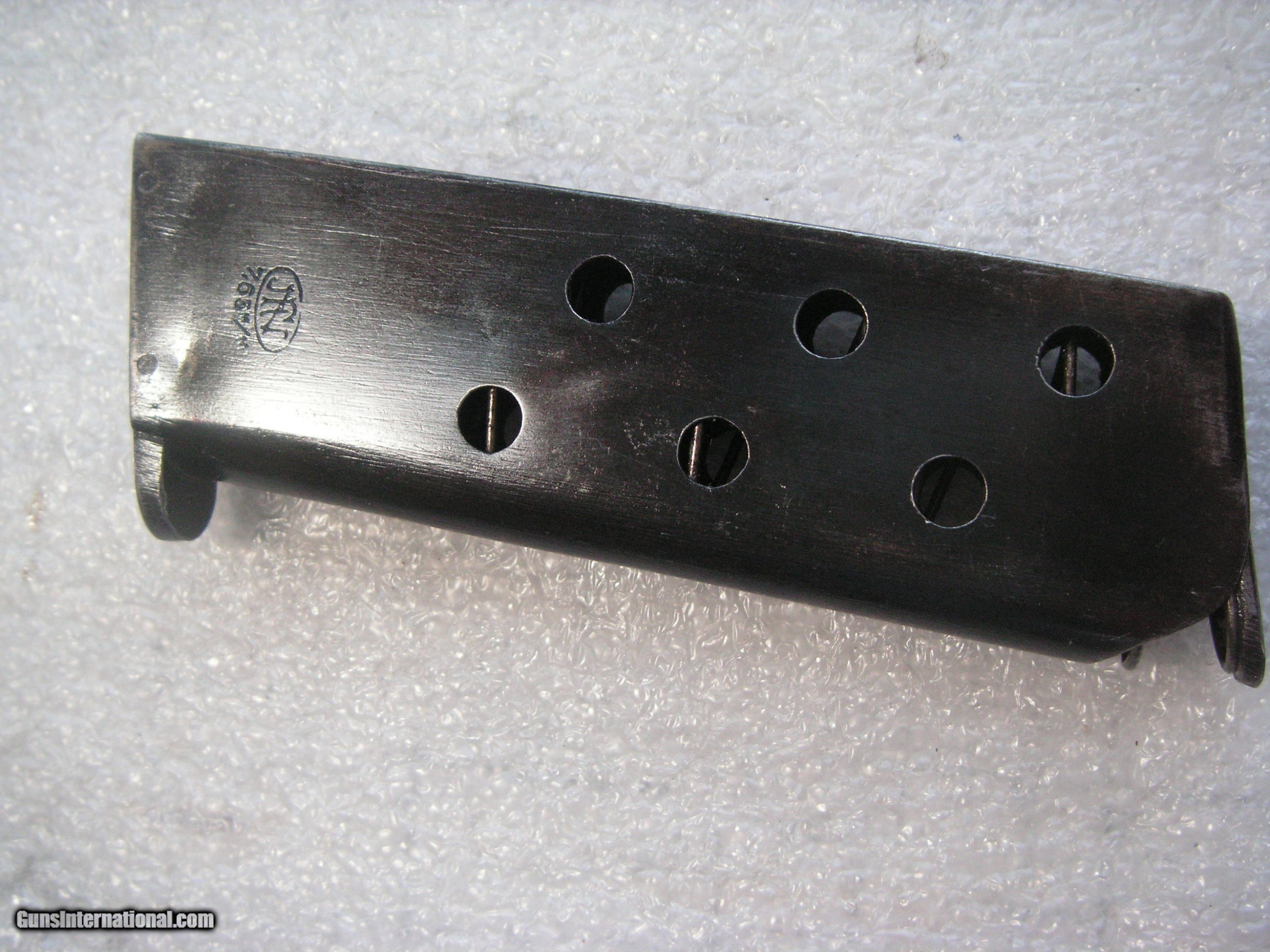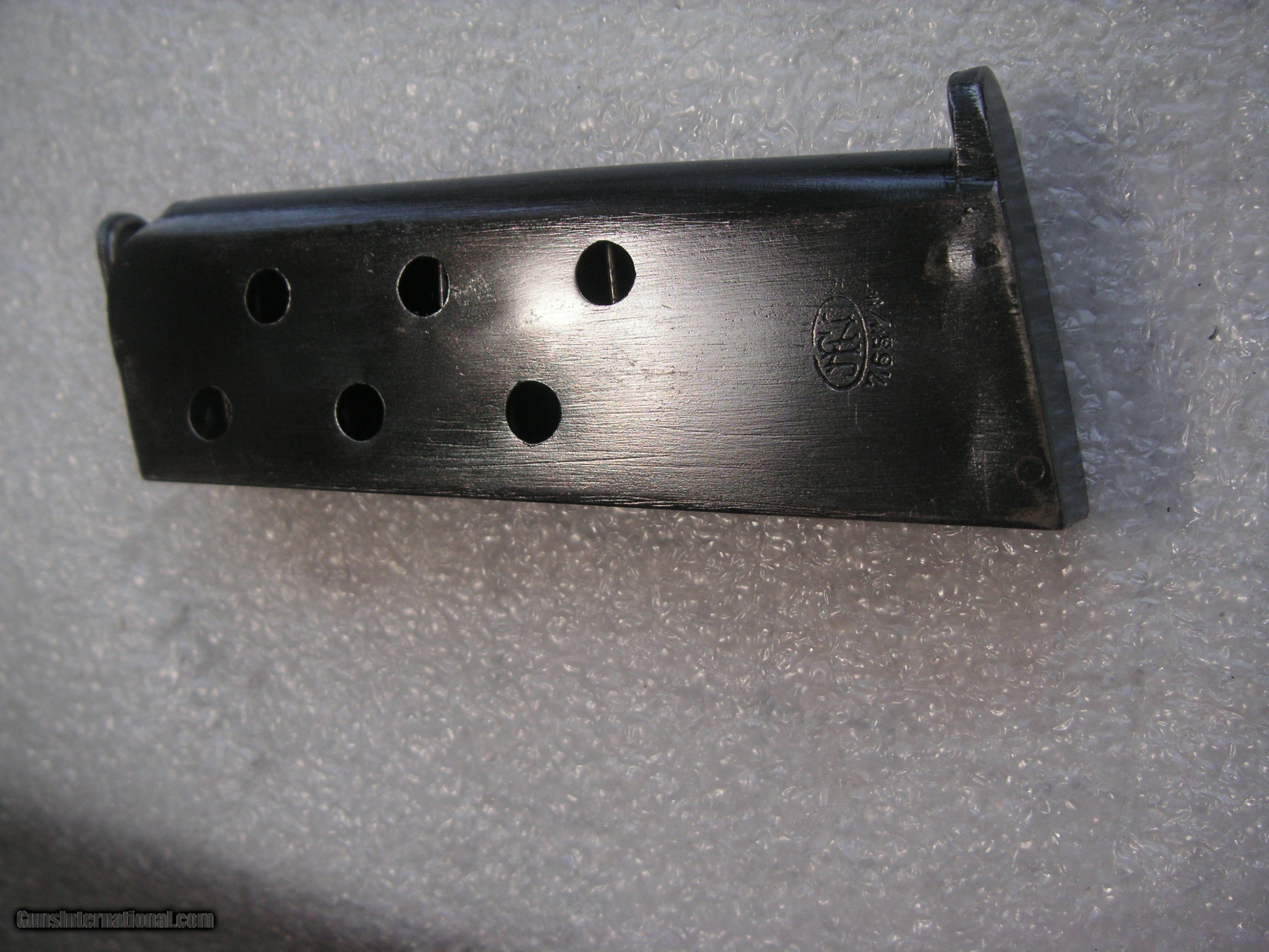 Description: SEE THE PICTURES OF THIS FN (FABRIQUE NATIONALE) MODEL 1910 CALIBER 7.65 mm (32 ACP) FACTORY ORIGINAL MAGAZINE IN EXCELENT ORIGINAL CONDITION. PRICE $49.99 PLUS $10 SHIPPING/INSURANCE SOLD Handgun Caliber: .32 ACP (7.65x17mm Browning SR) |