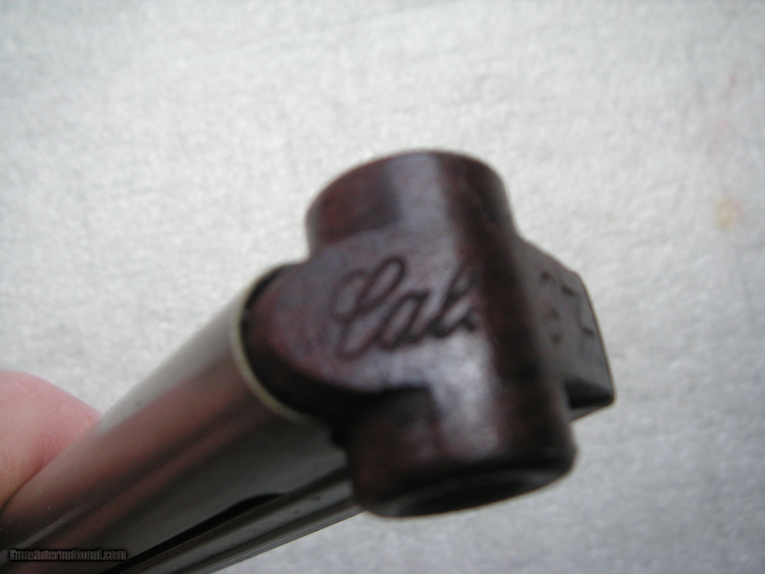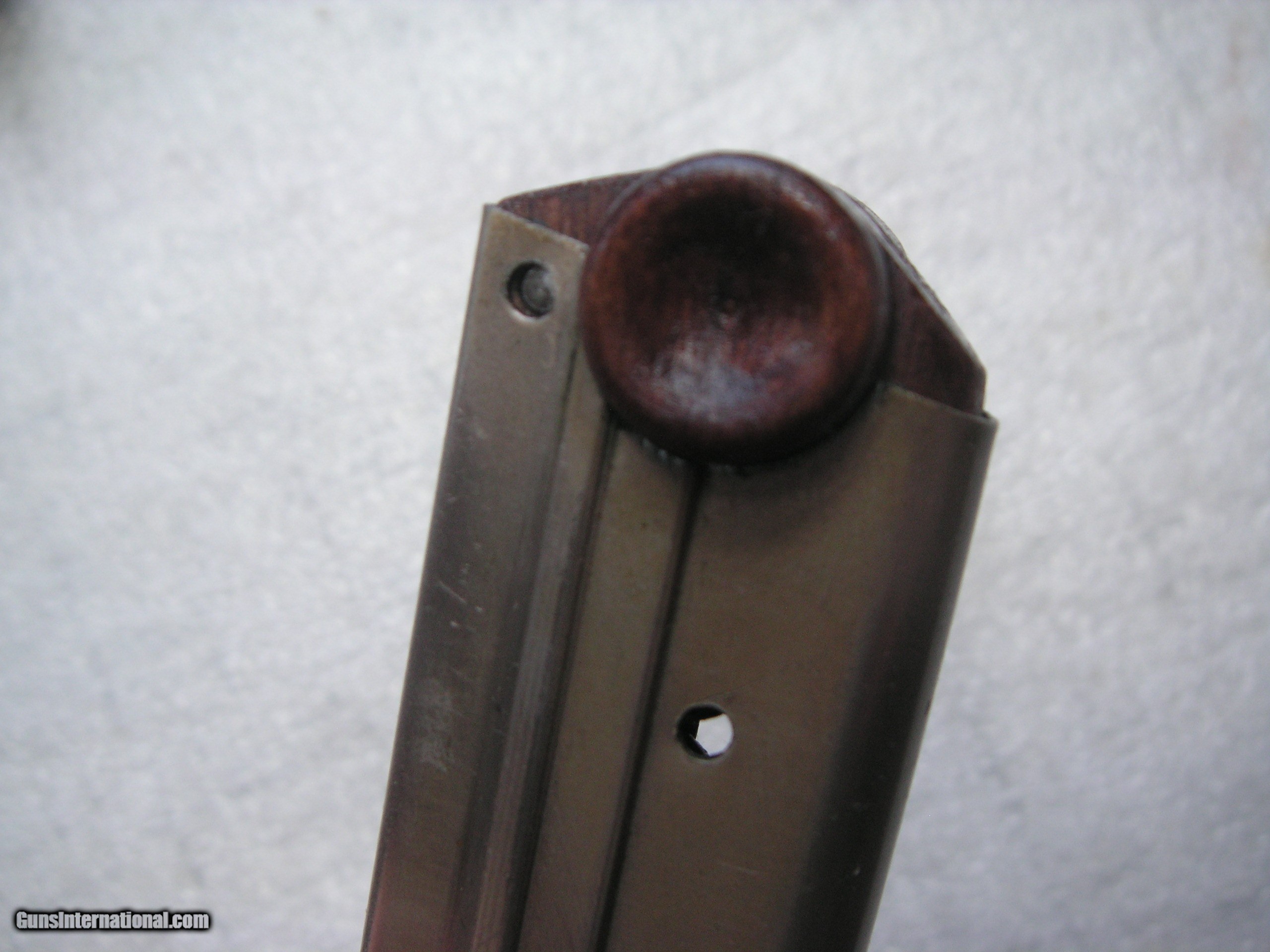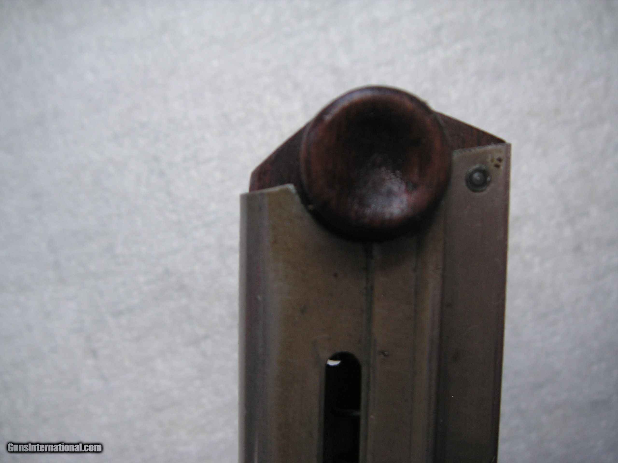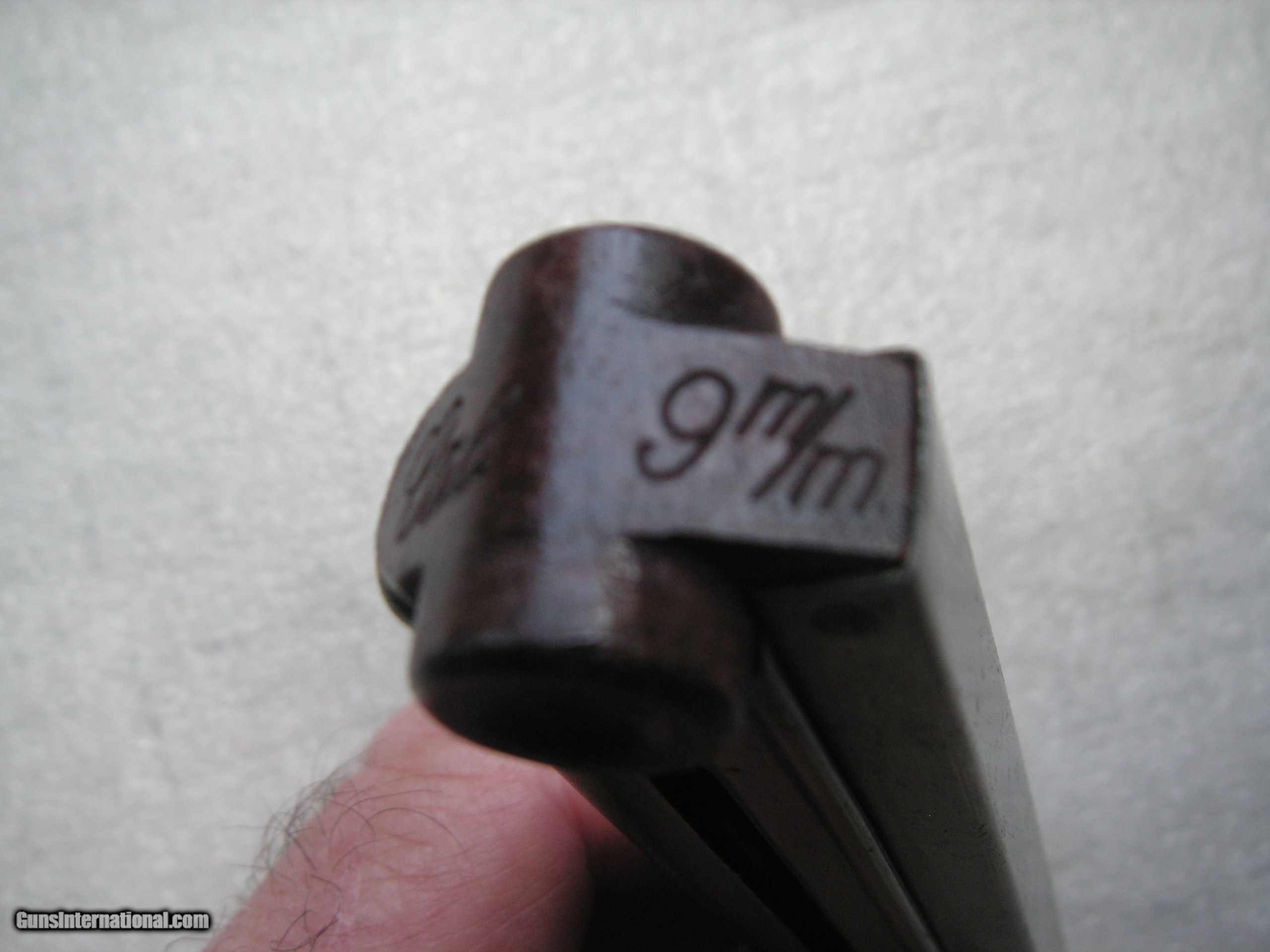 Description: SEE THE PICTURES OF LUGER MODEL 1902 "FAT BARREL" CALIBER 9mm STAMPED ON THE BOTTOM RARE CONDITION MAGAZINE. THE ORIGIAL LUGER PRODUCTION STARTED IN 1900 IN CALIBER 7.65mm Para,and in 1902 DWM PRODUCED THE FIRST 600 COMMERSIAL LUGERS IN CALIBER 9mm Para with 'Fat Barrel". FOR THAT REASON THEY STAMPED THE WODEN BOTTOM OF THE MAGAZINE WITH "CAL. 9 MM". THAT WAS A VERY SHORT PERIOD OF THE TIME WHEN CALIBER 9 mm LUGERS MAGAZINES WERE STAMPED THIS WAY. THEREFORE THESE STAMPED MAGAZINES ARE VERY RARE ESPESSIALY IN THIS CONDITION. MOST OF THE TIMES THESE 1902 LUGER PISTOLS DO NOT HAVE THESE ORIGINAL MAGAZINES, AND HERE IS THE OPORTUNITY TO SUPPLY YOUR VERY RARE AND DESIRABLE HIGHLY COLLECTIBLE EXPENCIVE LUGER PISTOL WITH THE ORIGINAL MAGAZINE. PRICE IS $695 PLUS $20 SHIPPING/INSURANCE SOLD Handgun Caliber: 9x19mm Parabellum (9mm Luger, 9x19mm NATO) |