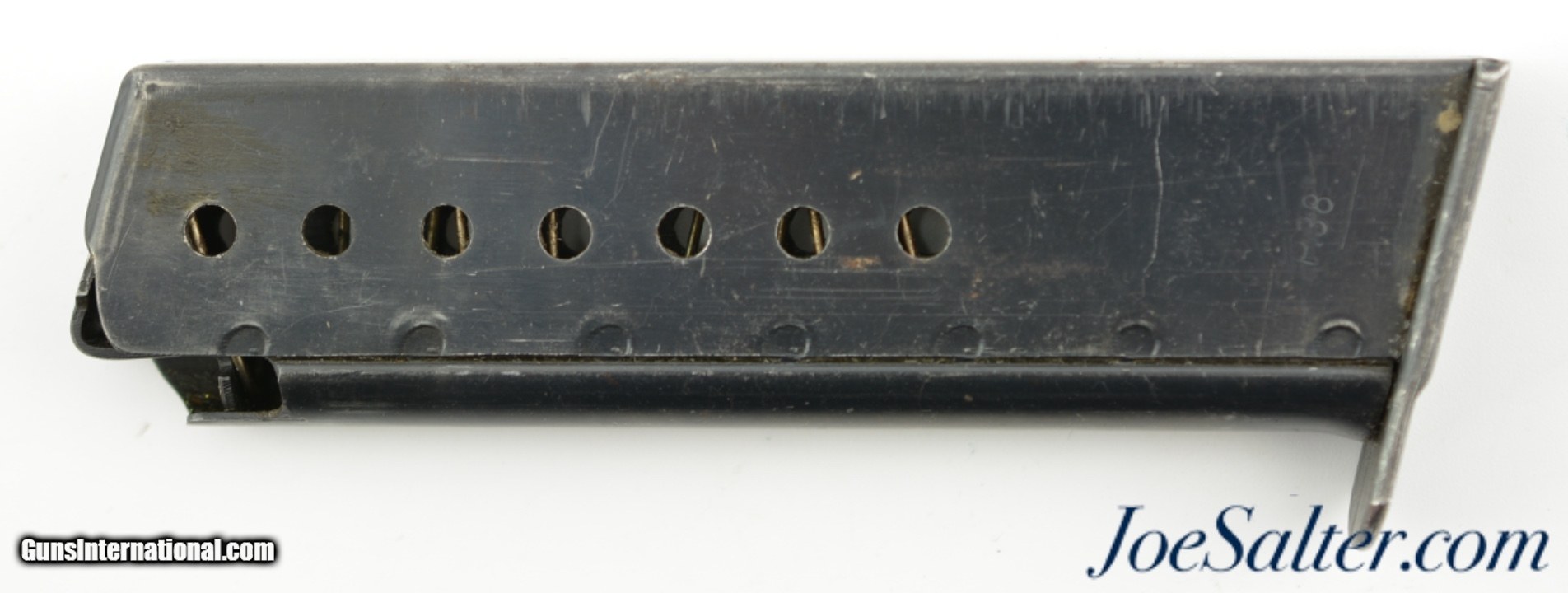 Description: This is an Original WWII German Mauser P38 Magazine with the one upside down stick Eagle over 135 proof mark in very good+ condition with some signs of normal wear. Spring and follower in very good and strong condition. These magazines were issued with Mauser pistols from byf42 till byf43 c-block (late 42-March 1943); SOLD |