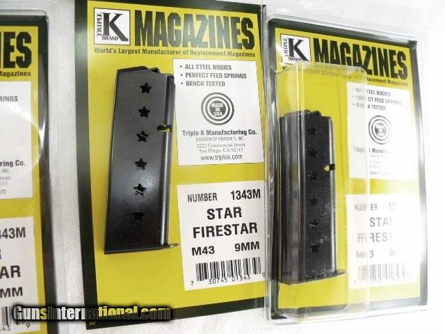 Star M43 Firestar Compact 9mm Pistol Magazine 7 Shot Blue Steel New Triple K manufacture Model 43 only NOT for Firestar Plus XM1343M