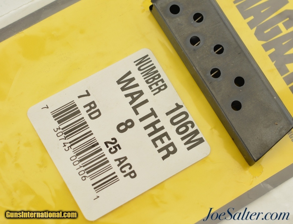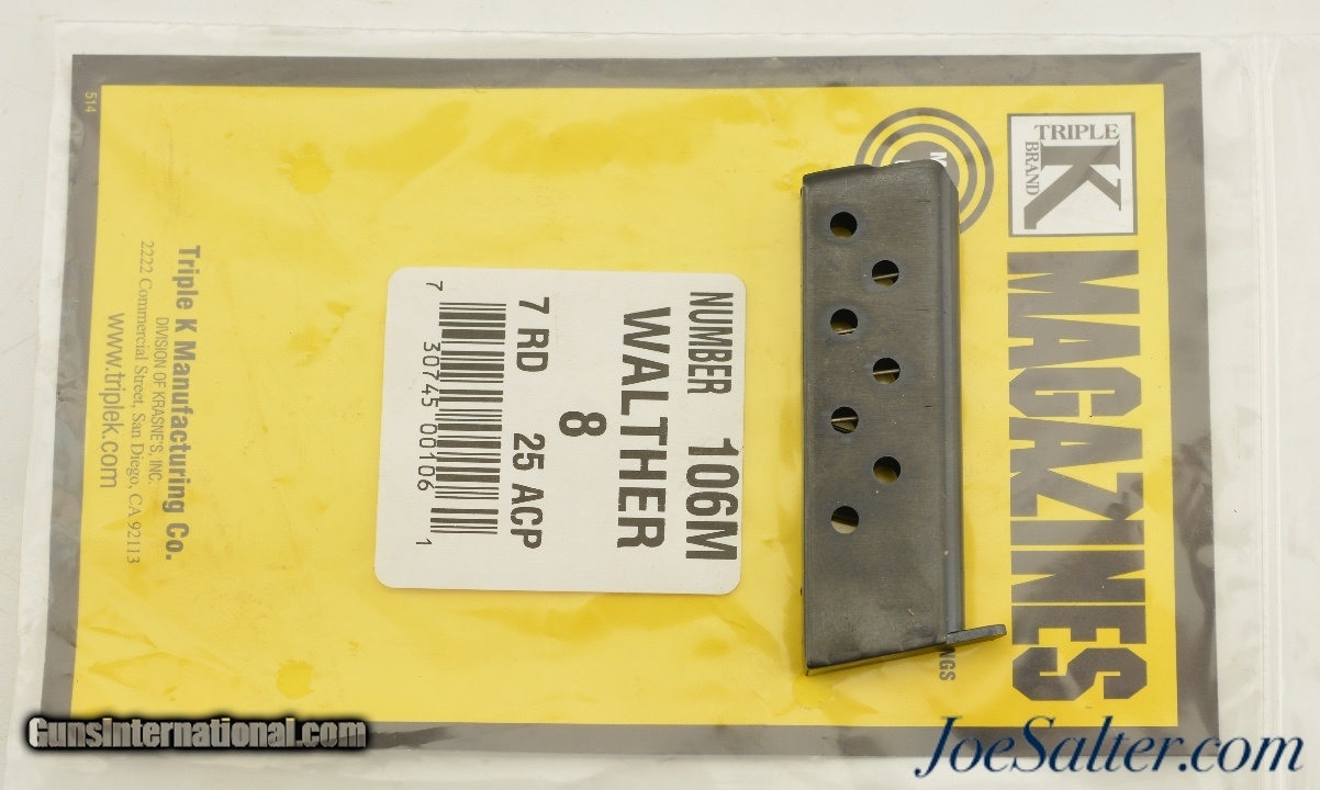 Description: This is a NOS Triple K Magazines Walther 8 7rd 25 ACP still in the original packaging. SOLD |
