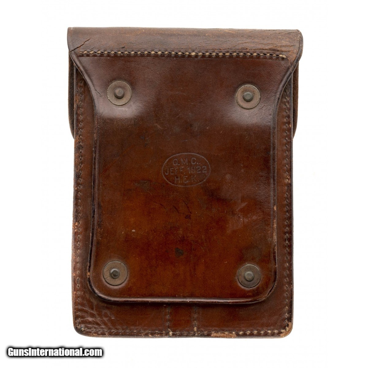 Description: " 1911 Magazine pouch marked QMC JEFF.1922 H.E.K. in excellent condition. SOLD |
