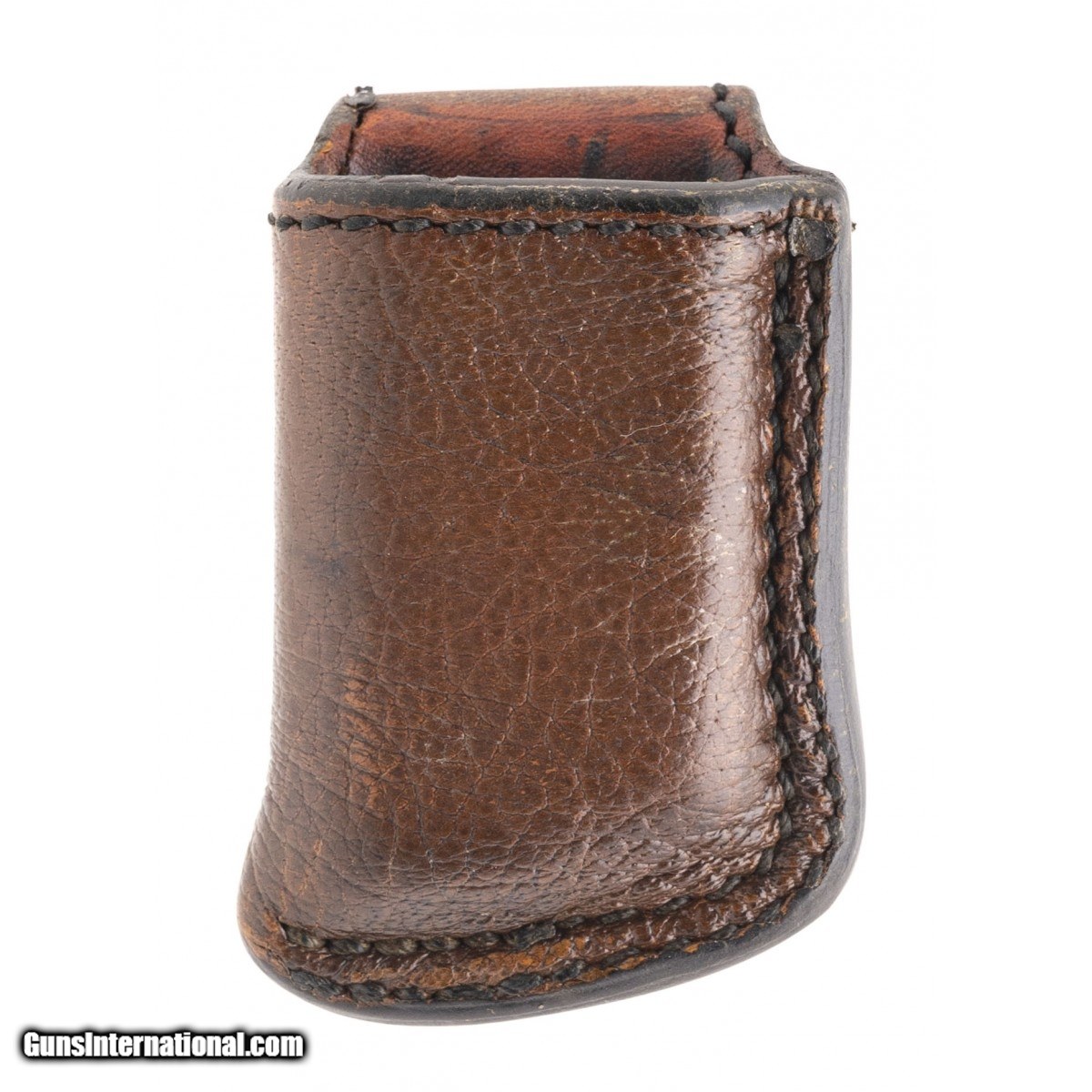 Description: " Custom made magazine pouch for 1911. Right hand, brown badger skin. New condition. SOLD |