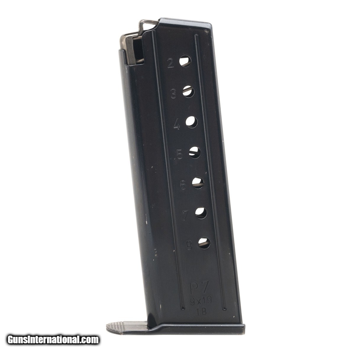 1980's vintage magazine for H&K P7 PSP 9mm. Bottom release only, not for the P7M8. Very good condition.